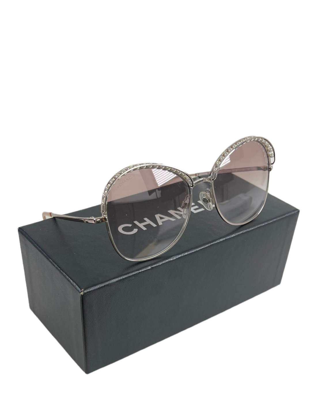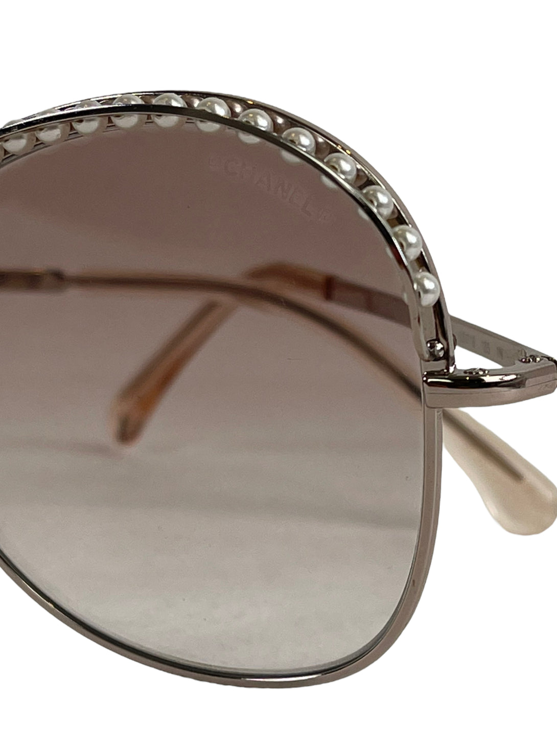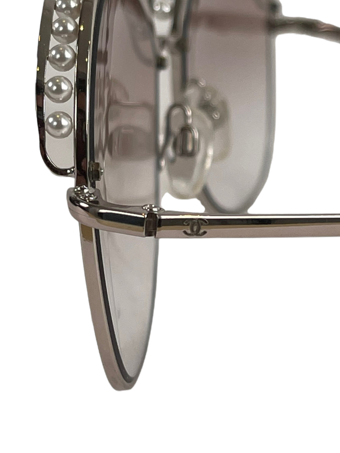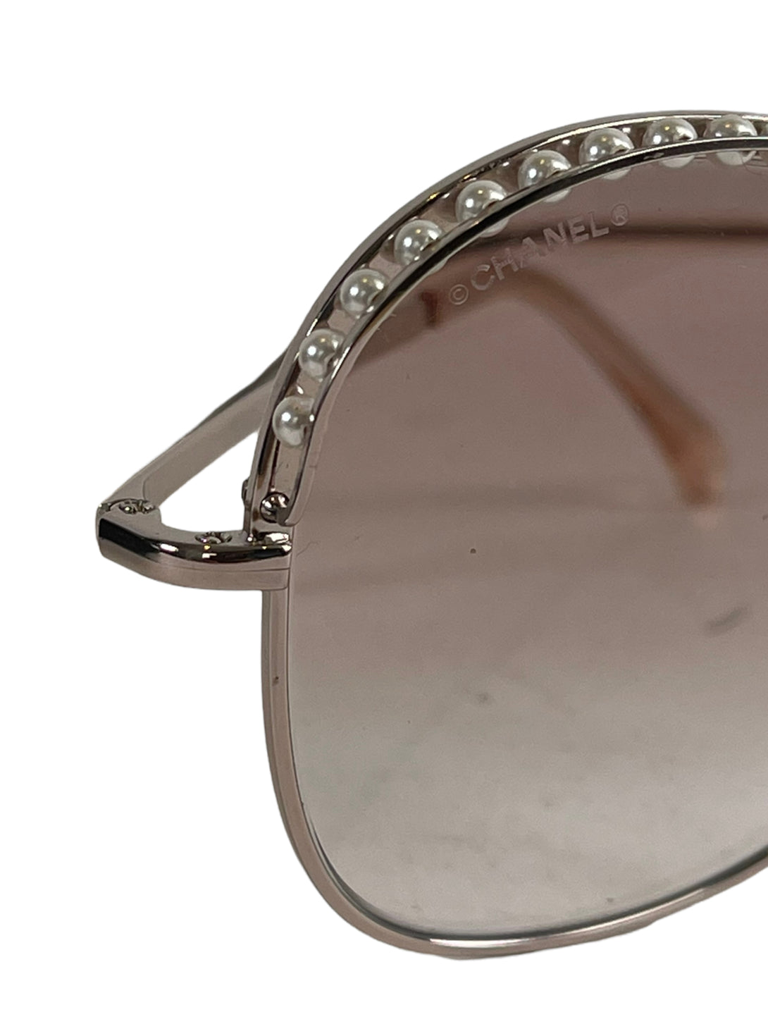 Chanel Rose Tint Silvertone Pearl Sunglasses