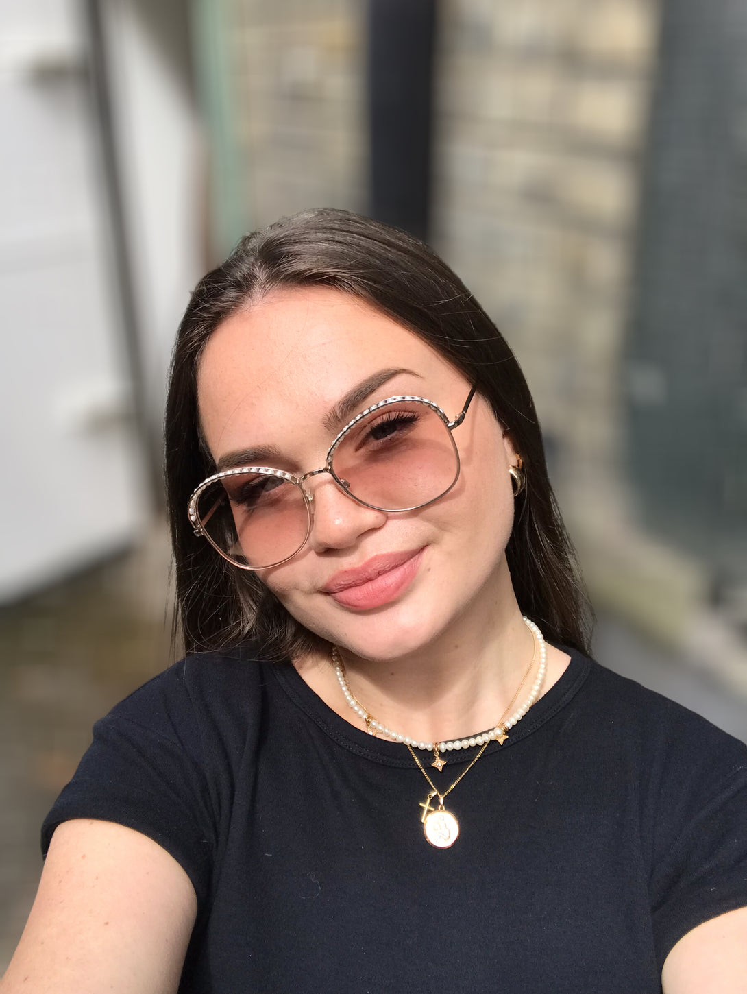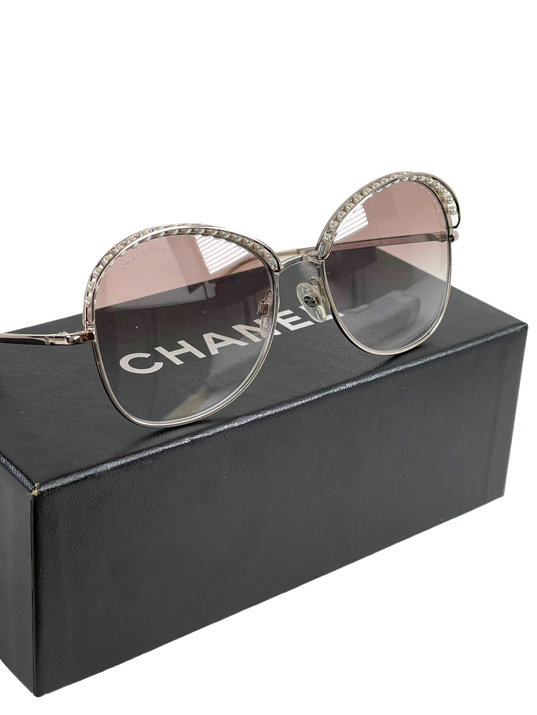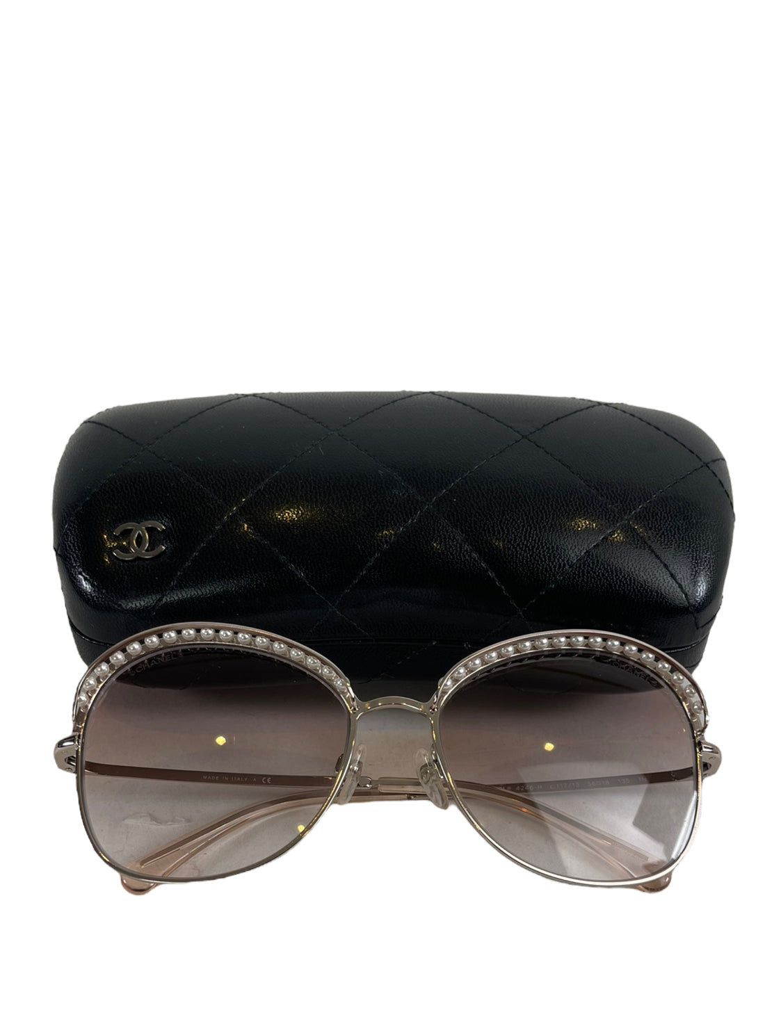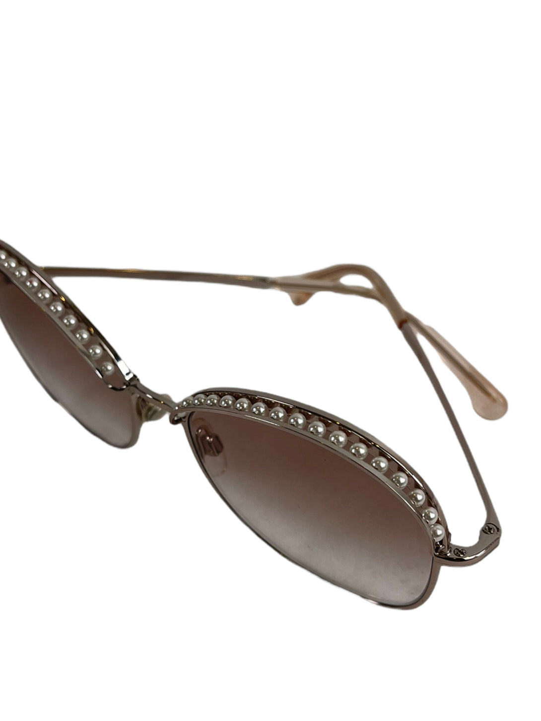 Chanel Rose Tint Silvertone Pearl Sunglasses