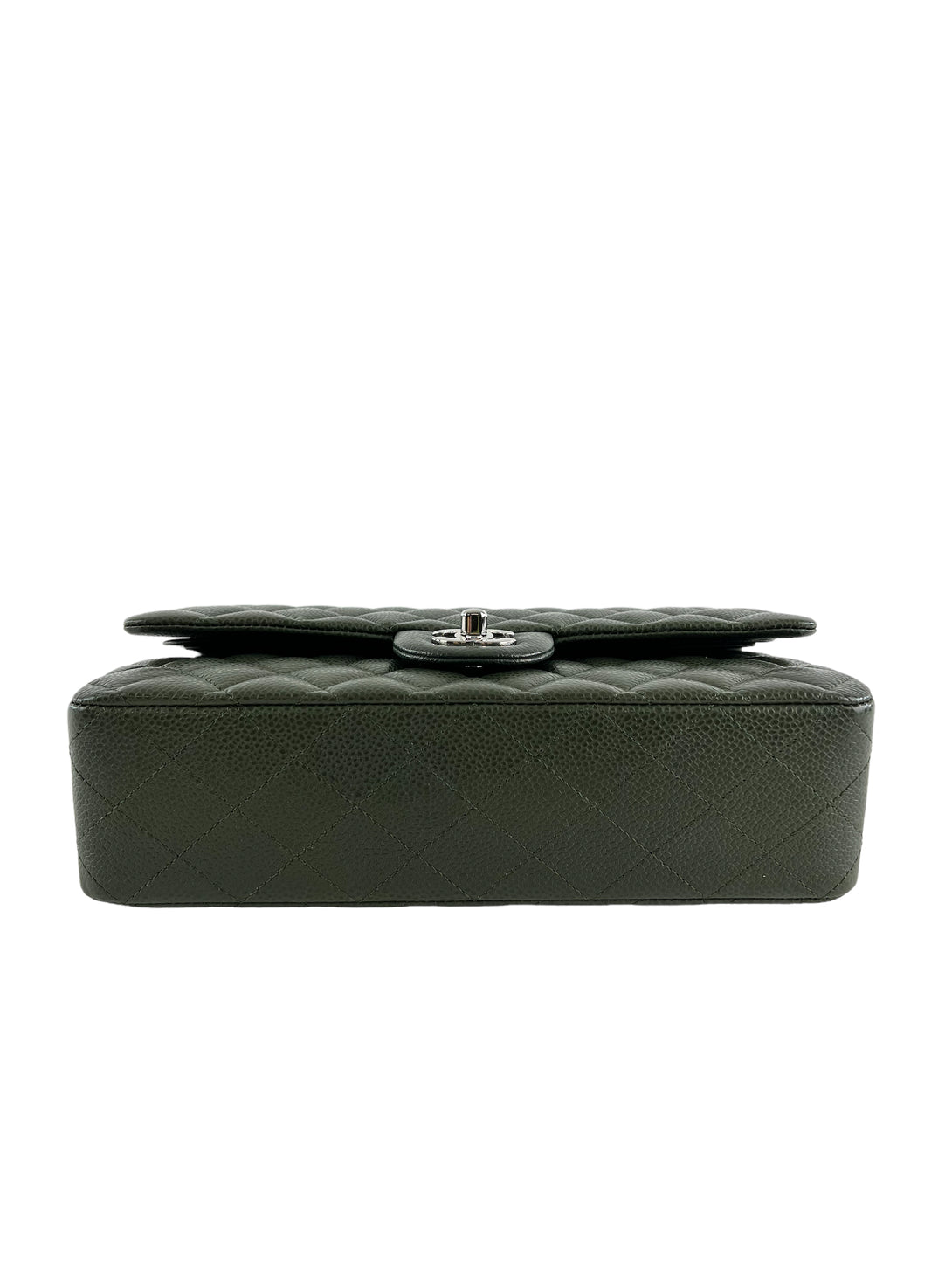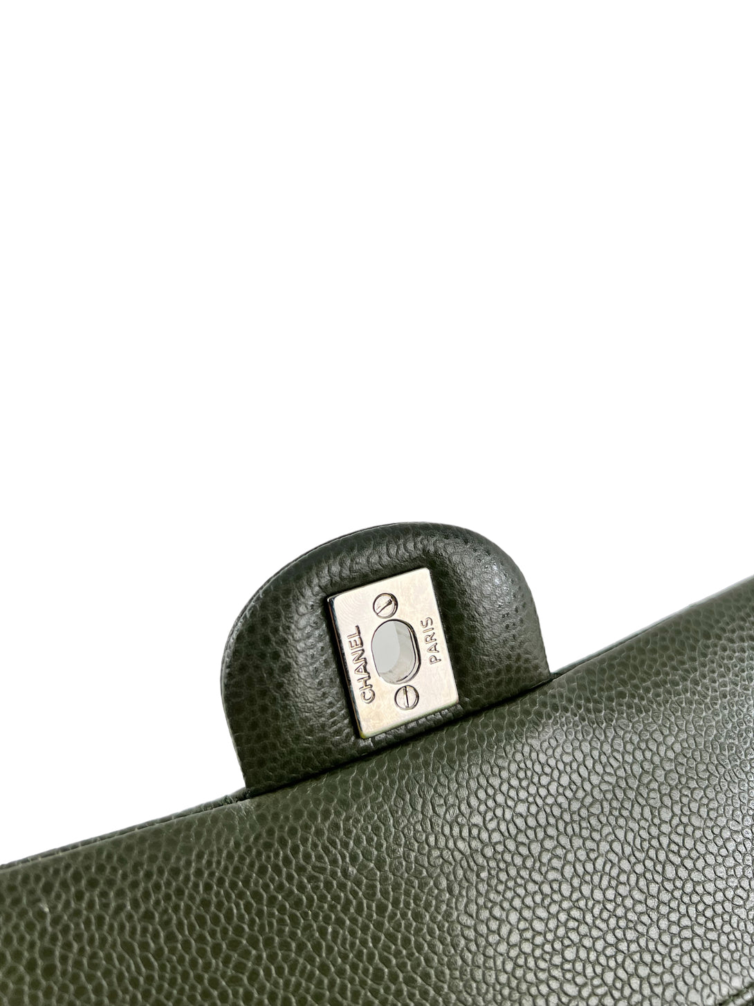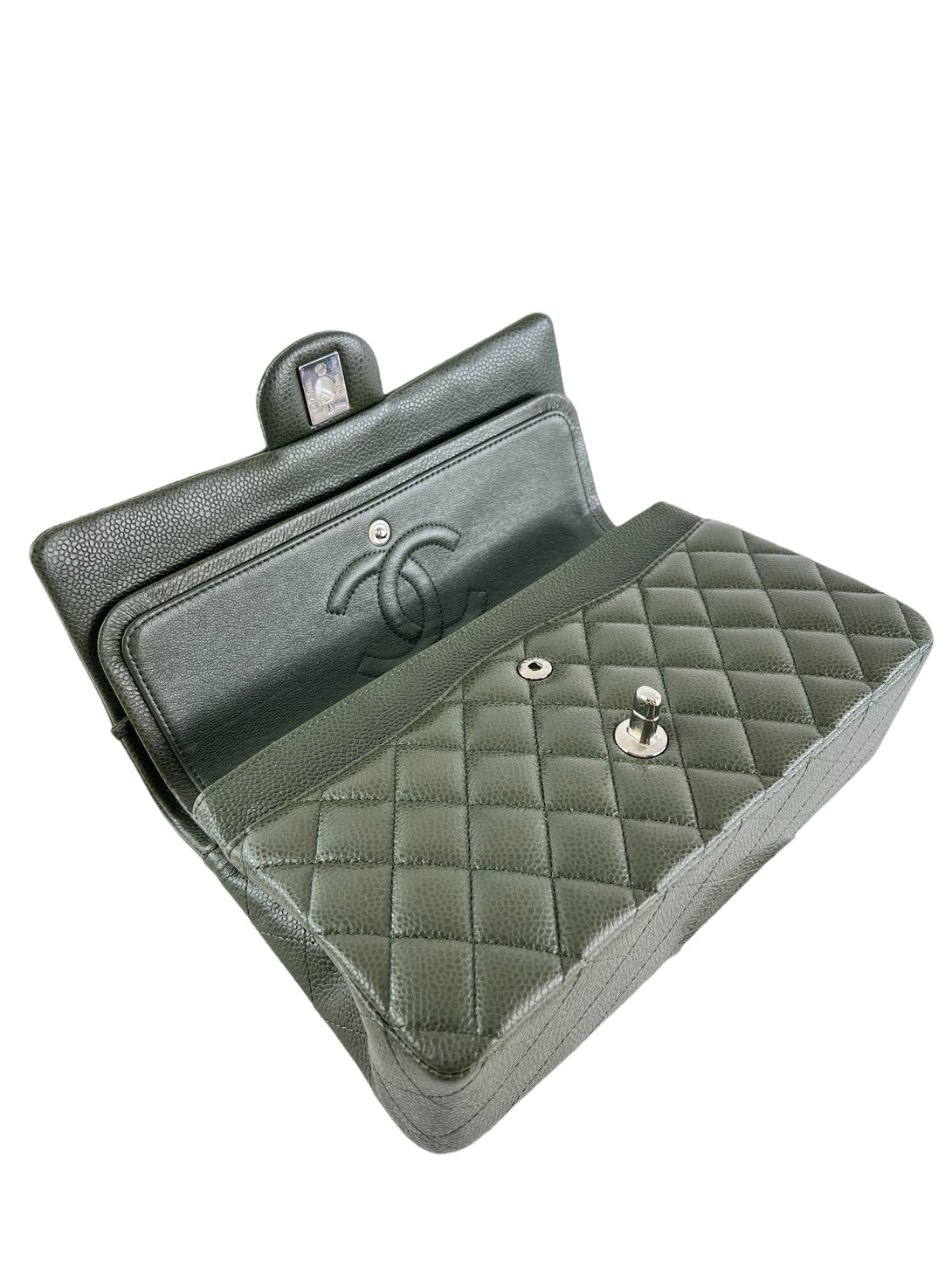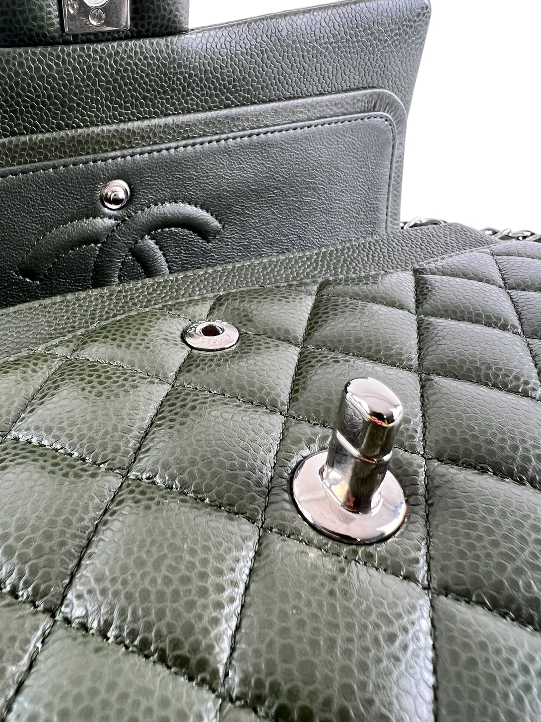 Chanel Green Caviar Leather Medium Double Flap with Silver Hardwear
