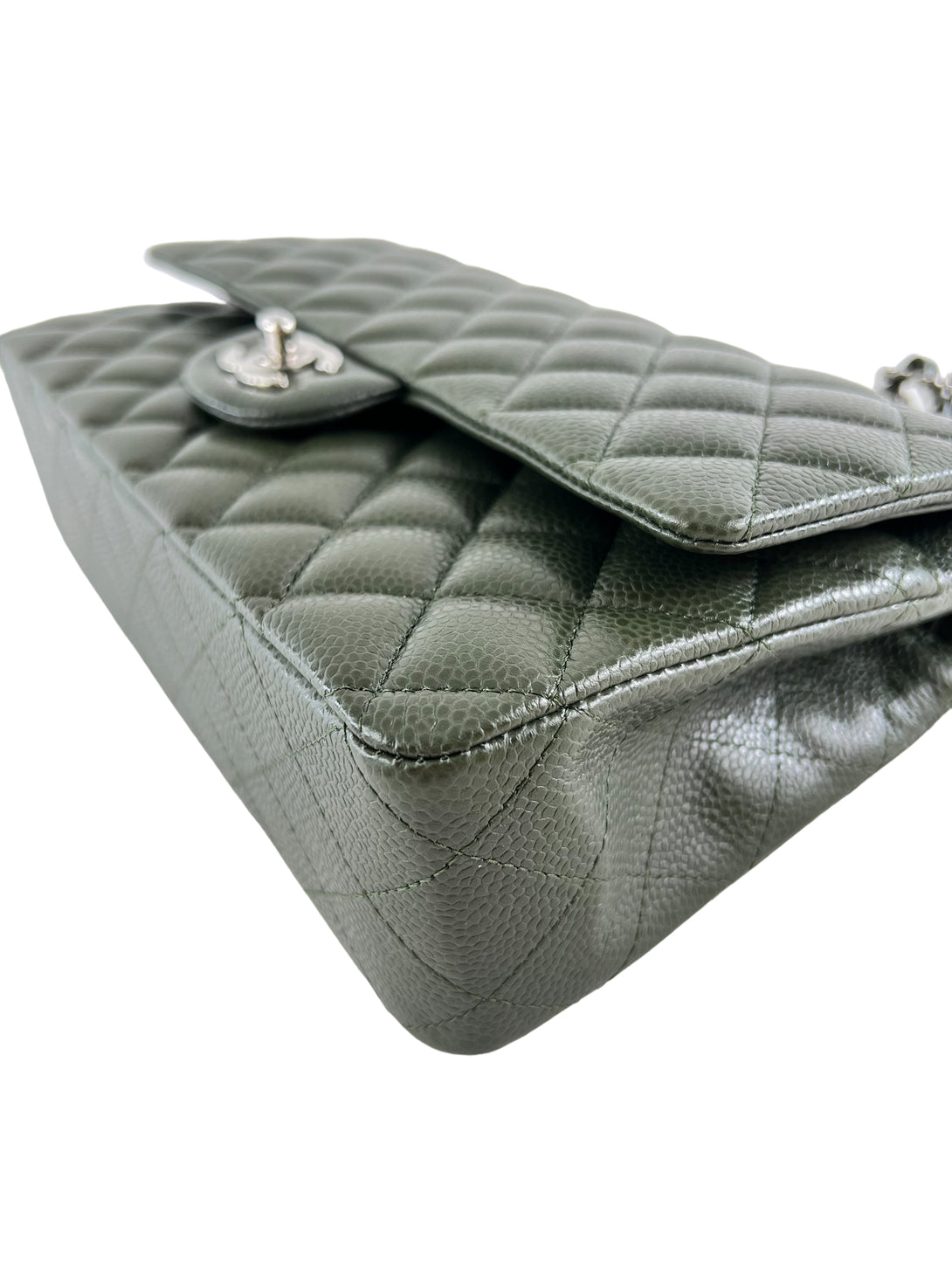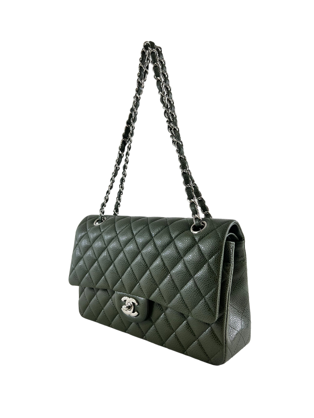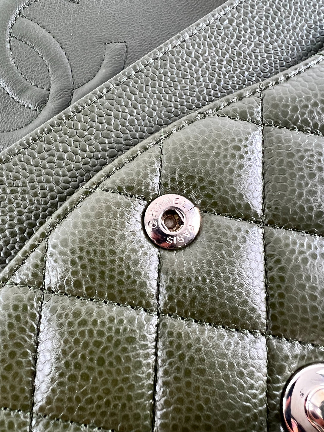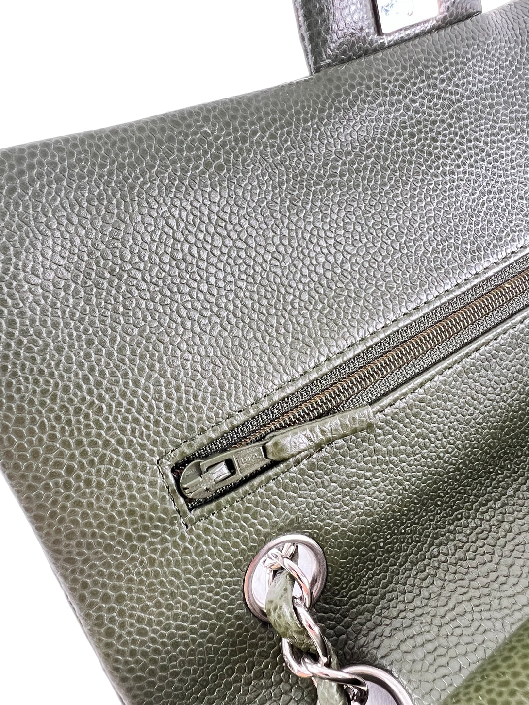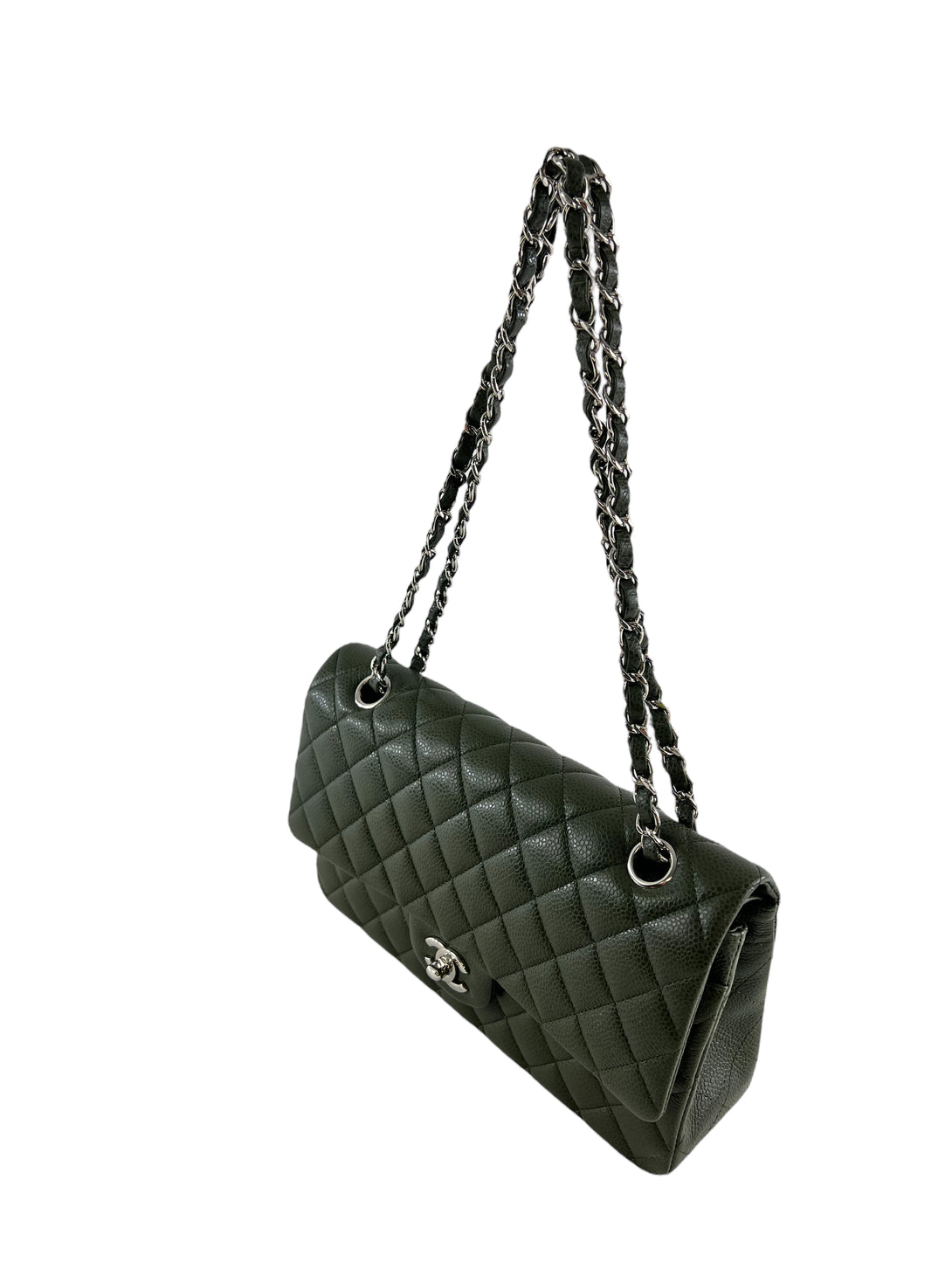 Chanel Green Caviar Leather Medium Double Flap with Silver Hardwear