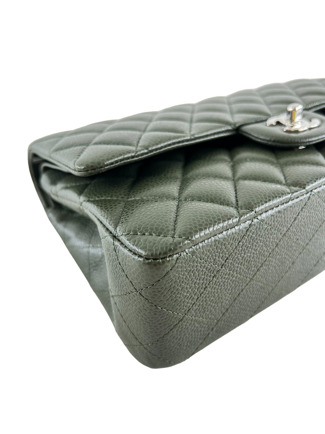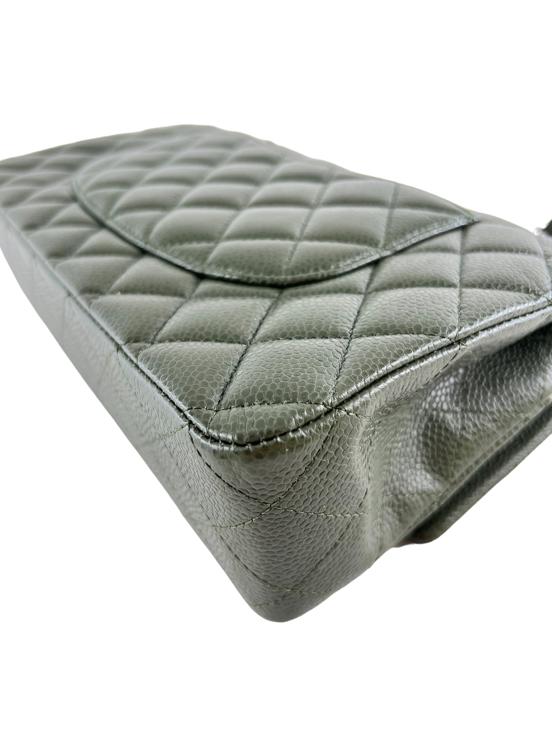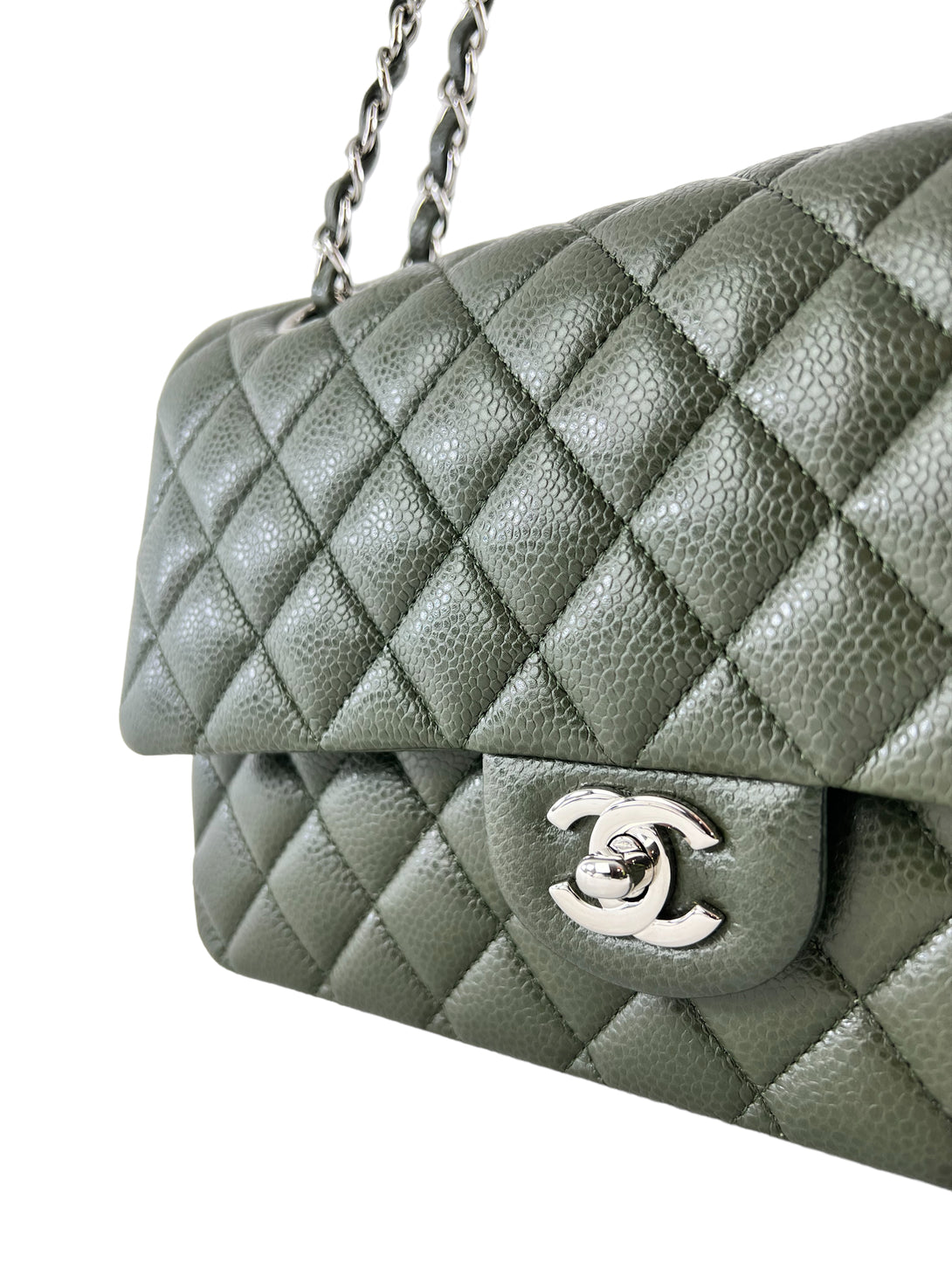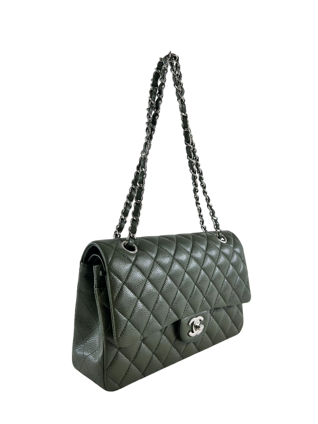 Chanel Green Caviar Leather Medium Double Flap with Silver Hardwear