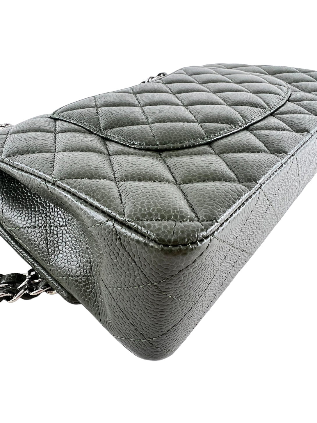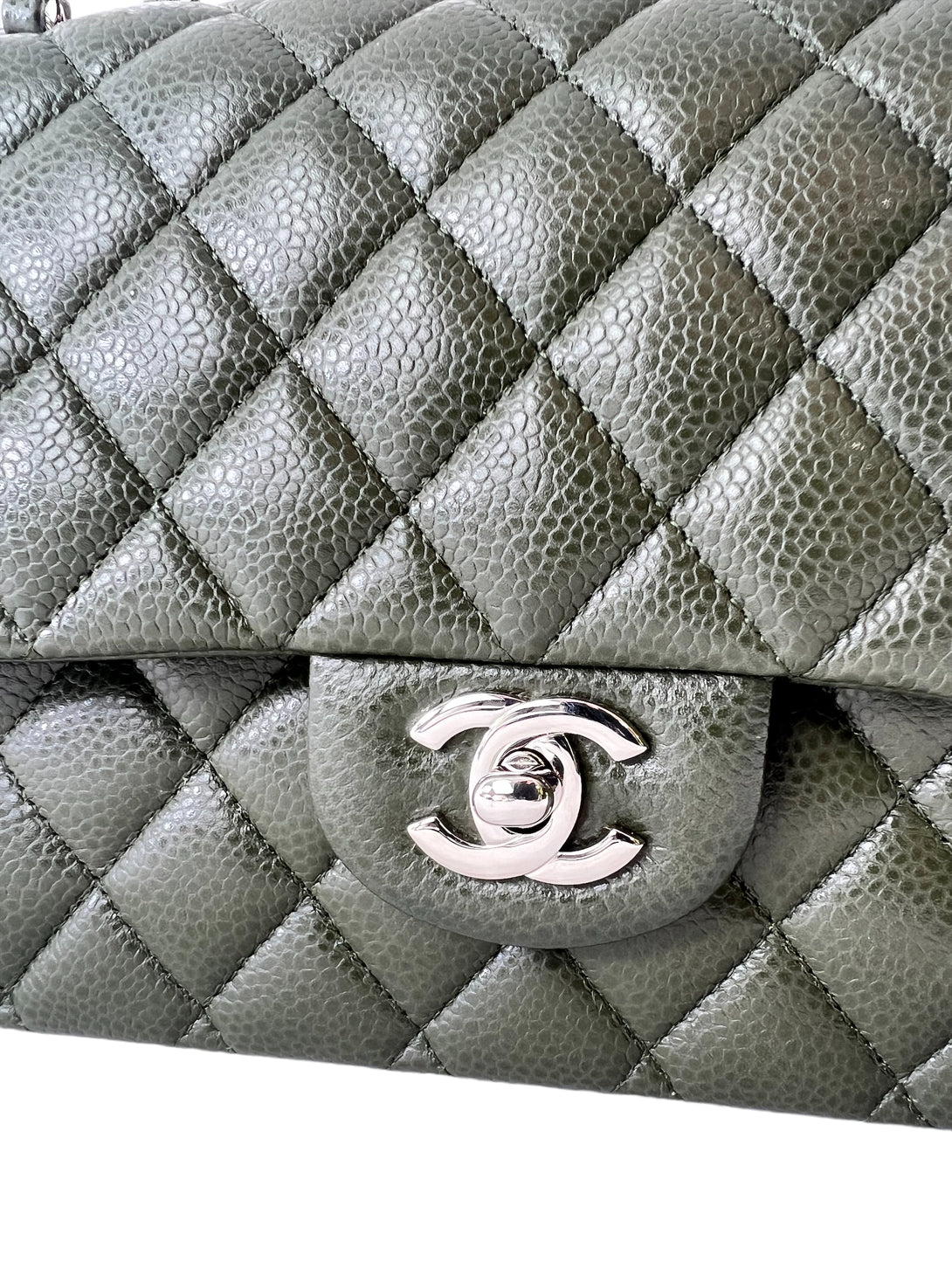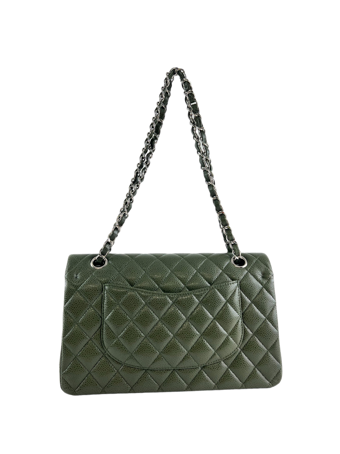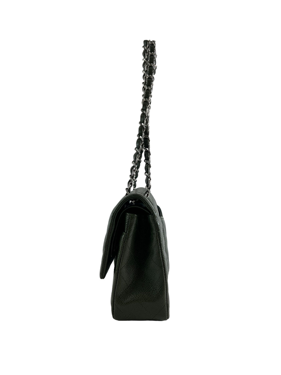 Chanel Green Caviar Leather Medium Double Flap with Silver Hardwear