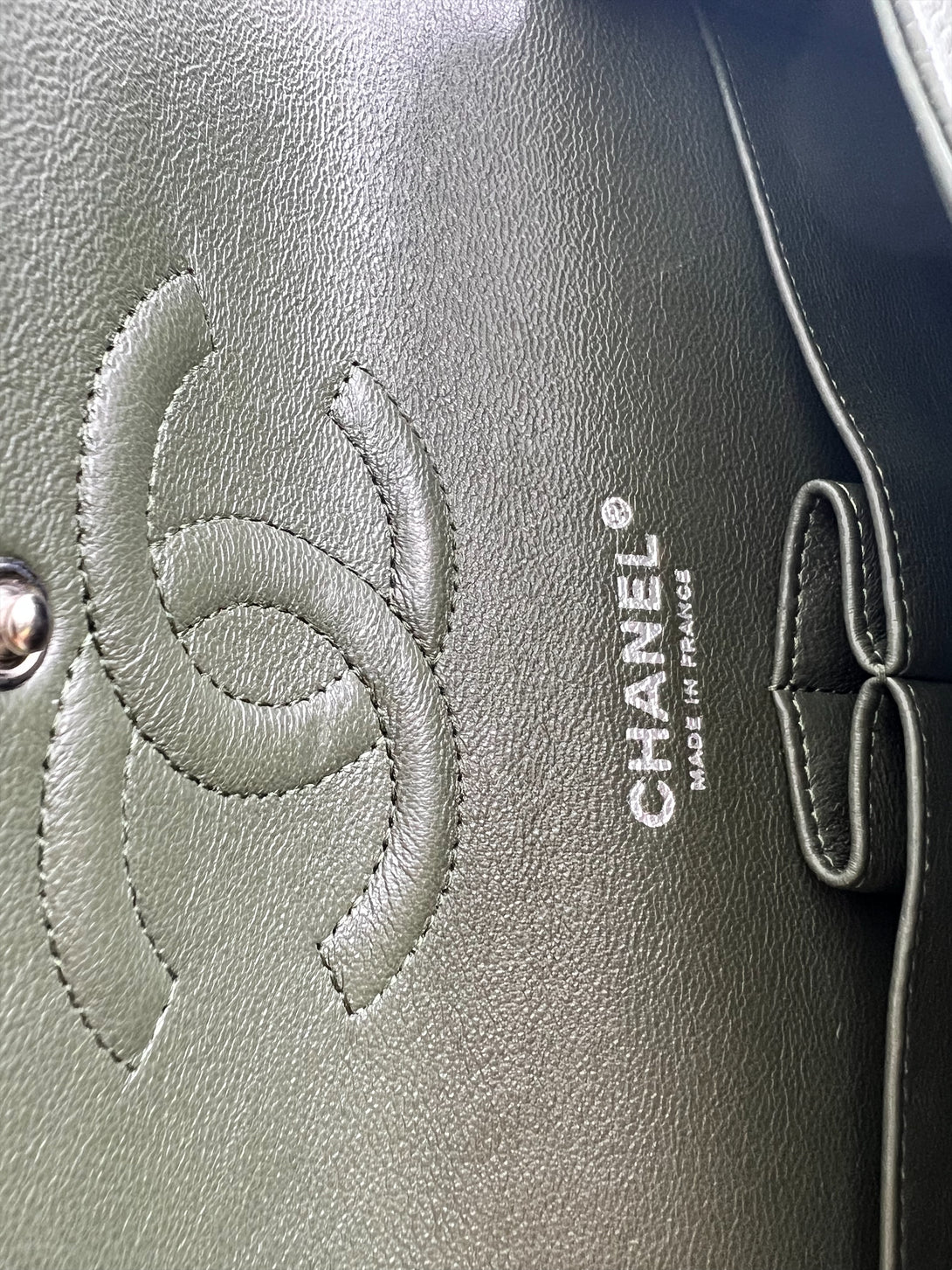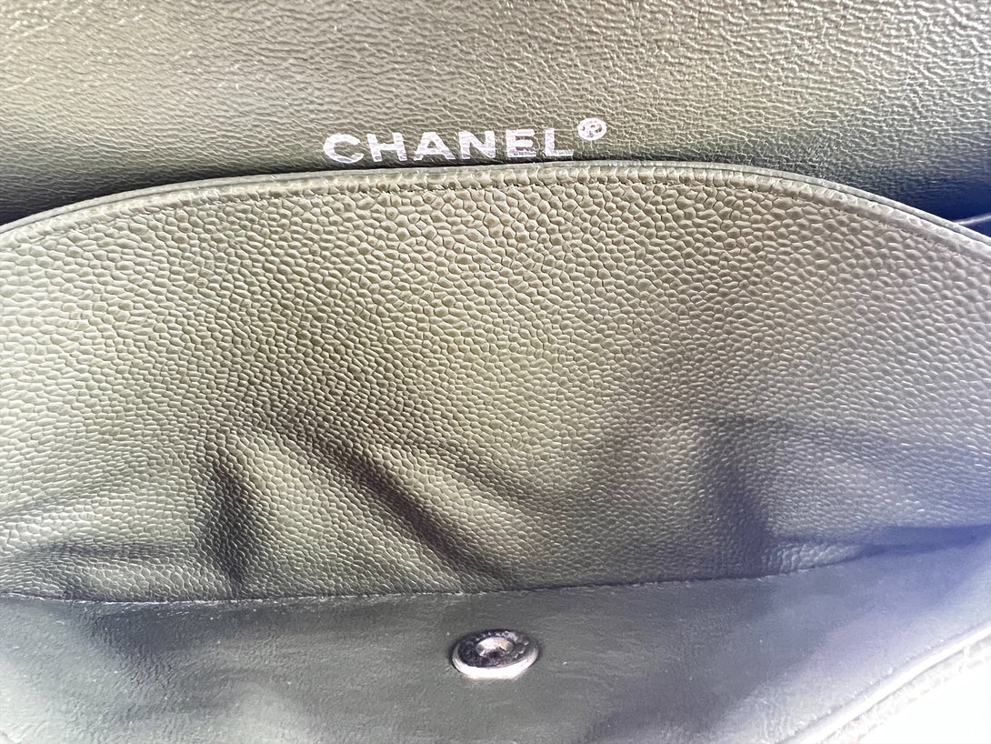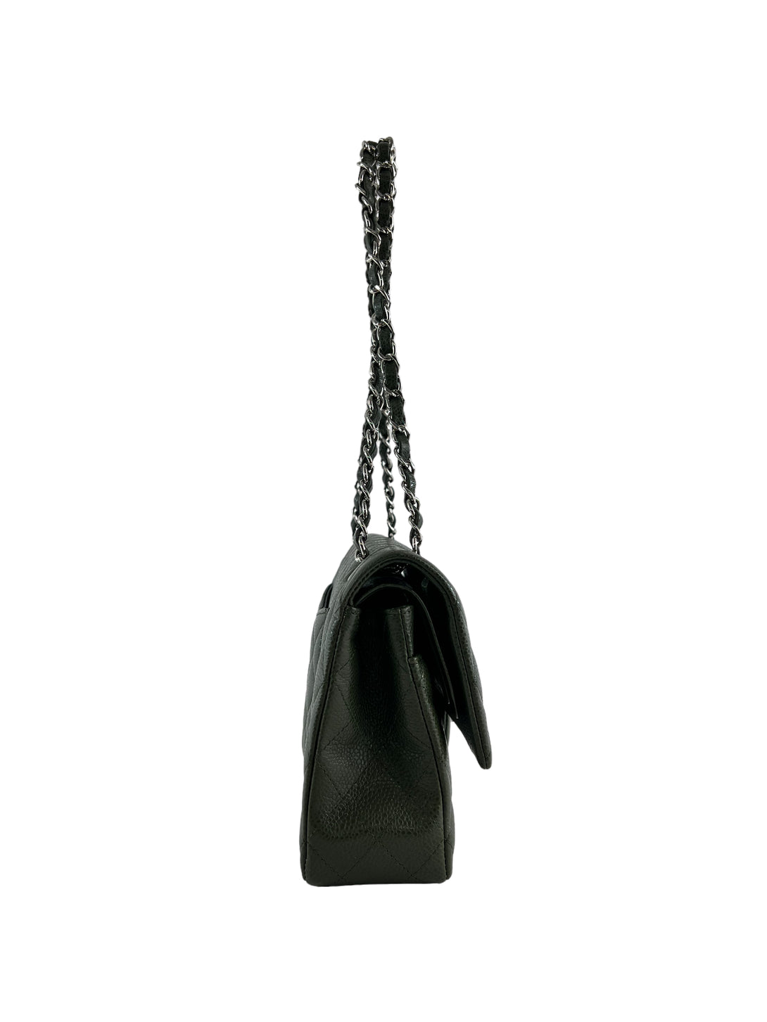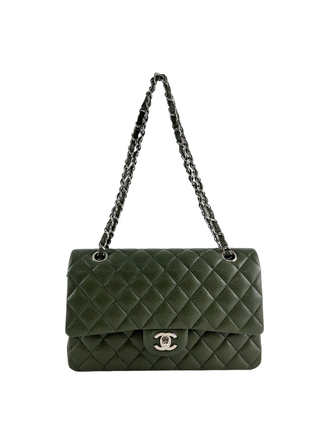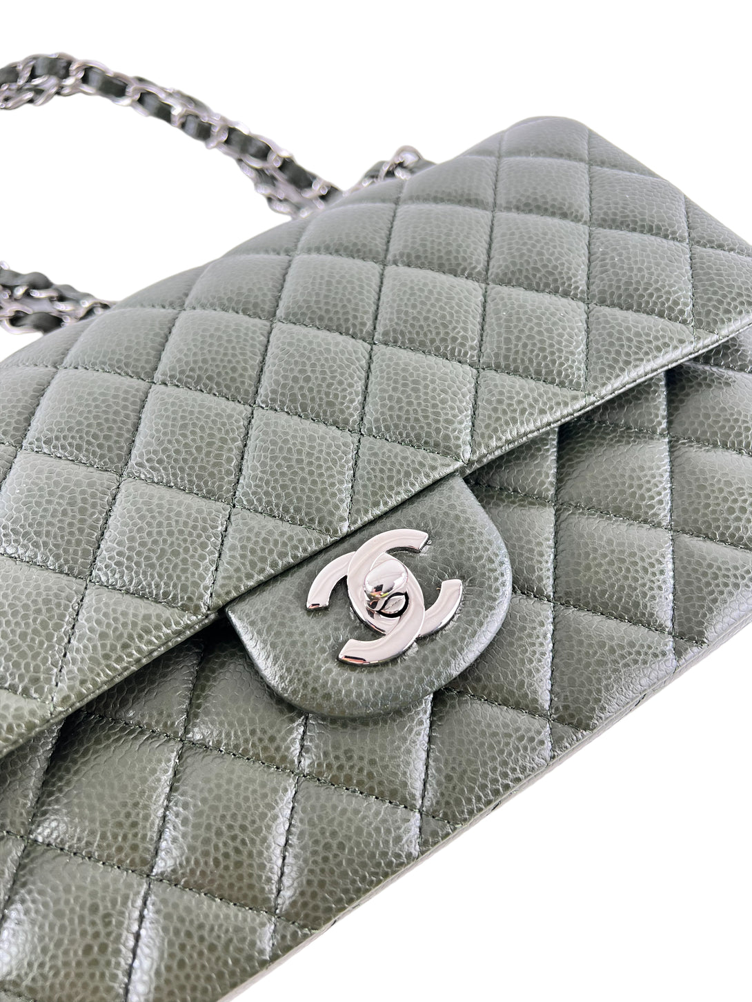 Chanel Green Caviar Leather Medium Double Flap with Silver Hardwear