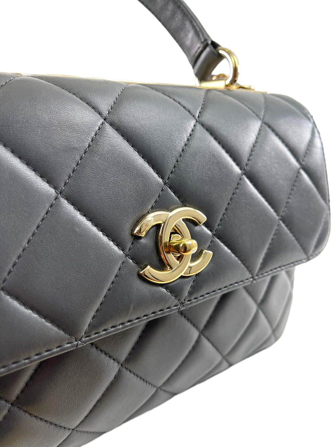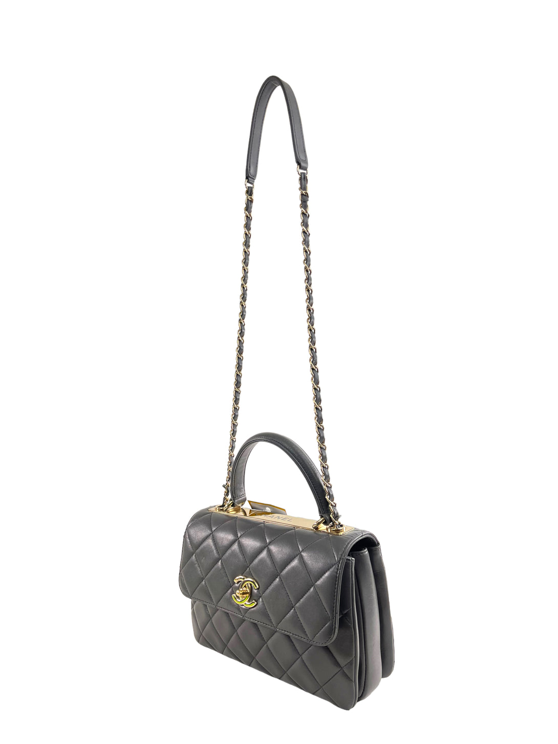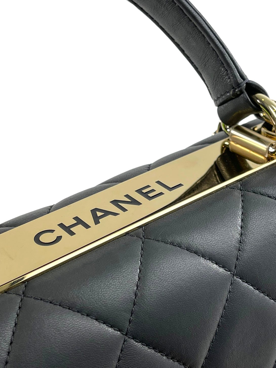 Chanel Grey Lambskin Leather Medium Trendy Top Handle Shoulder Bag