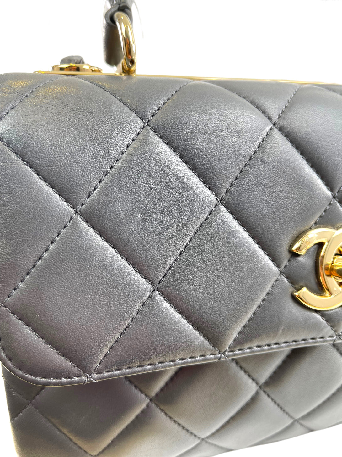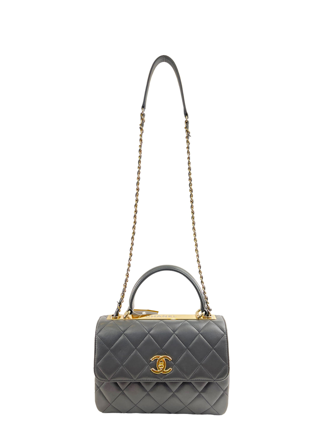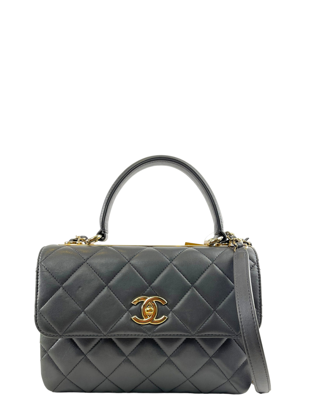 Chanel Grey Lambskin Leather Medium Trendy Top Handle Shoulder Bag