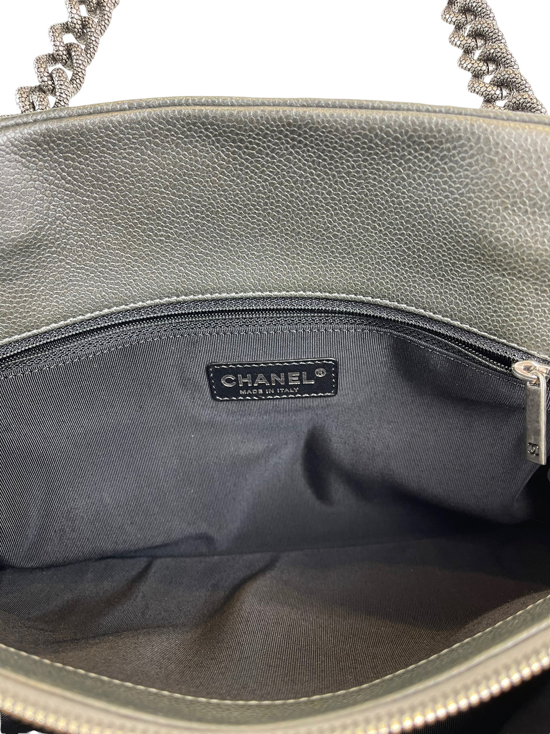 Good: Items show more prominent wear such as noticeable discoloration, stains and snags to fabric. May have worn corners and handles, tarnishing to hardware and creasing to leather. Pen or make up marks may be visible in the interior of the bag.