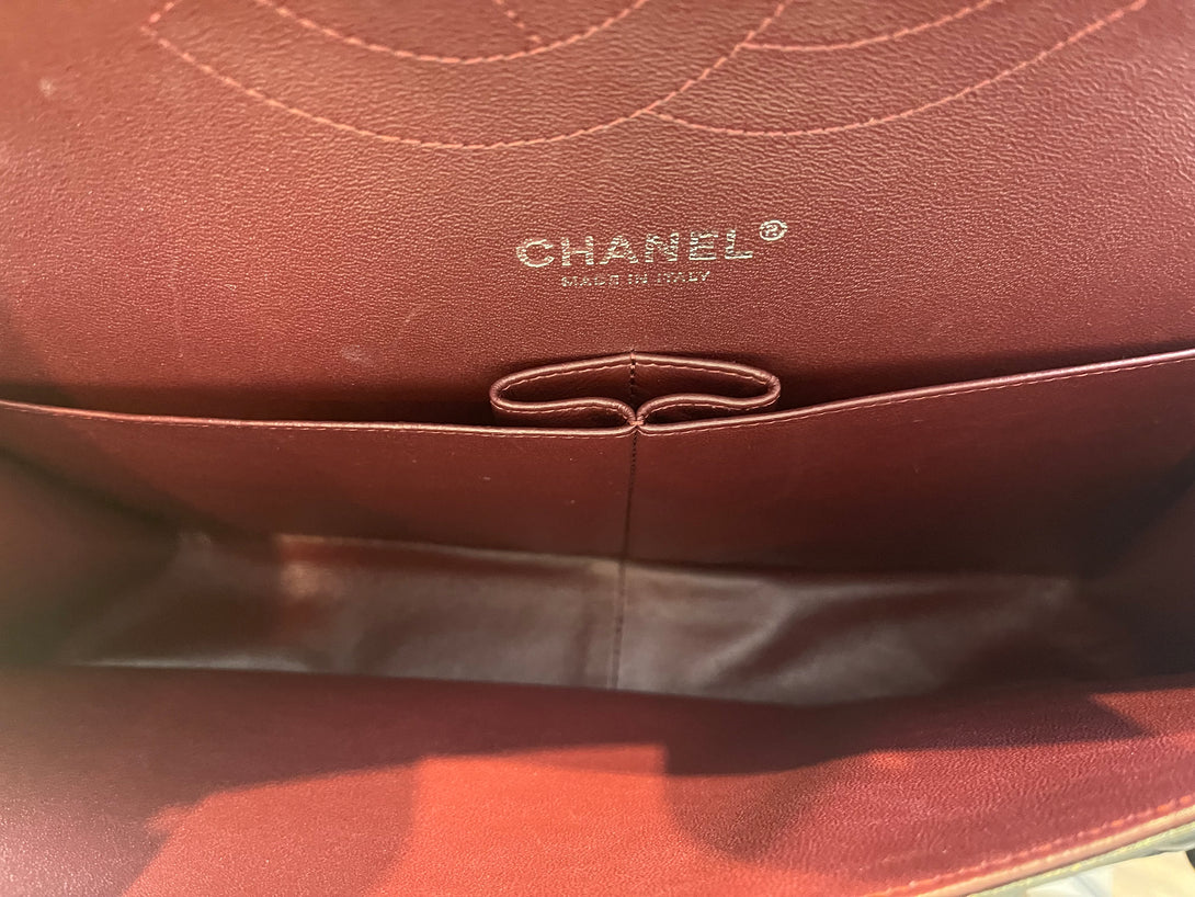 Good: Items show more prominent wear such as noticeable discoloration, stains and snags to fabric. May have worn corners and handles, tarnishing to hardware and creasing to leather. Pen or make up marks may be visible in the interior of the bag.