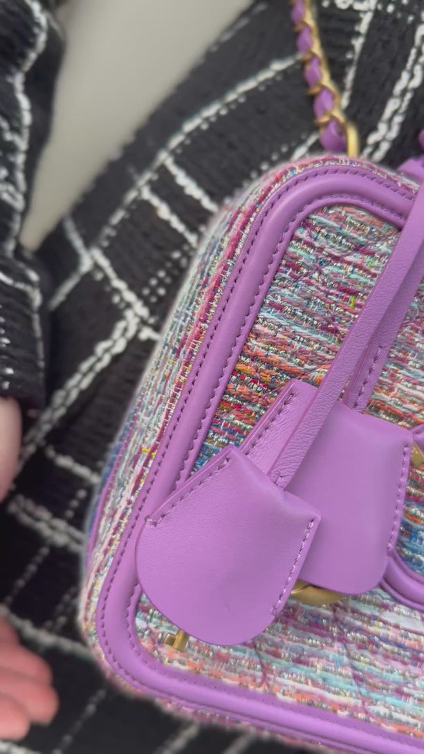 Chanel Multi Colour Tweed & Leather CC Filigree Vanity Shoulder Bag