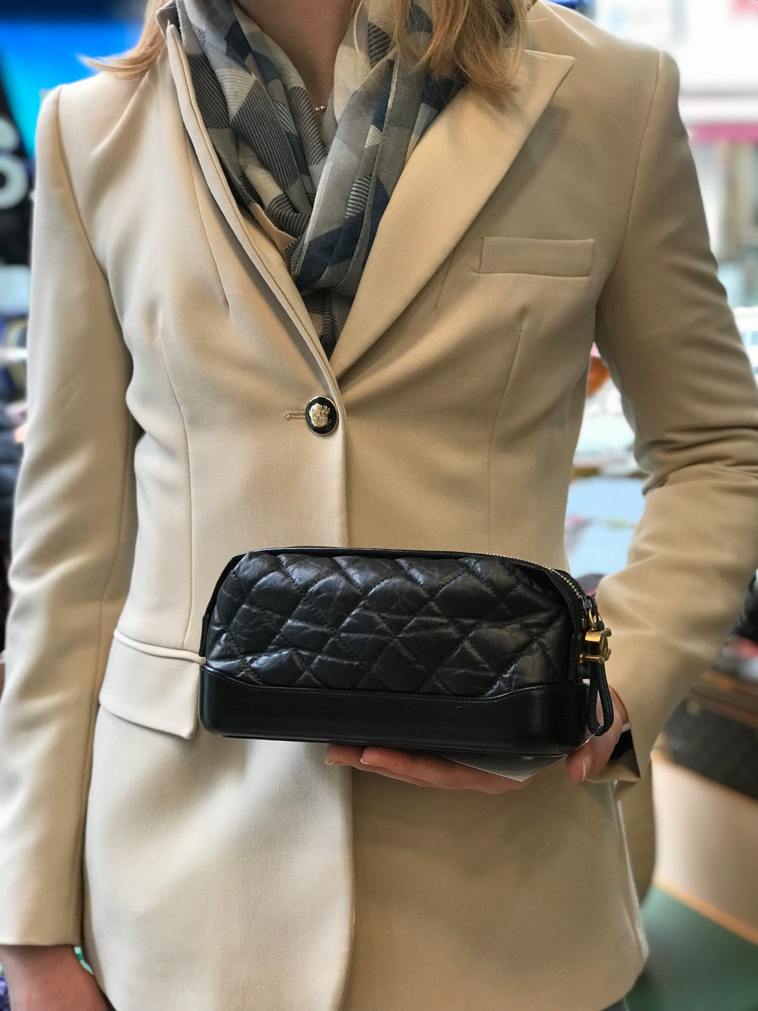 Chanel Navy Black Calf Skin Leather 'Gabrielle' Makeup pouch