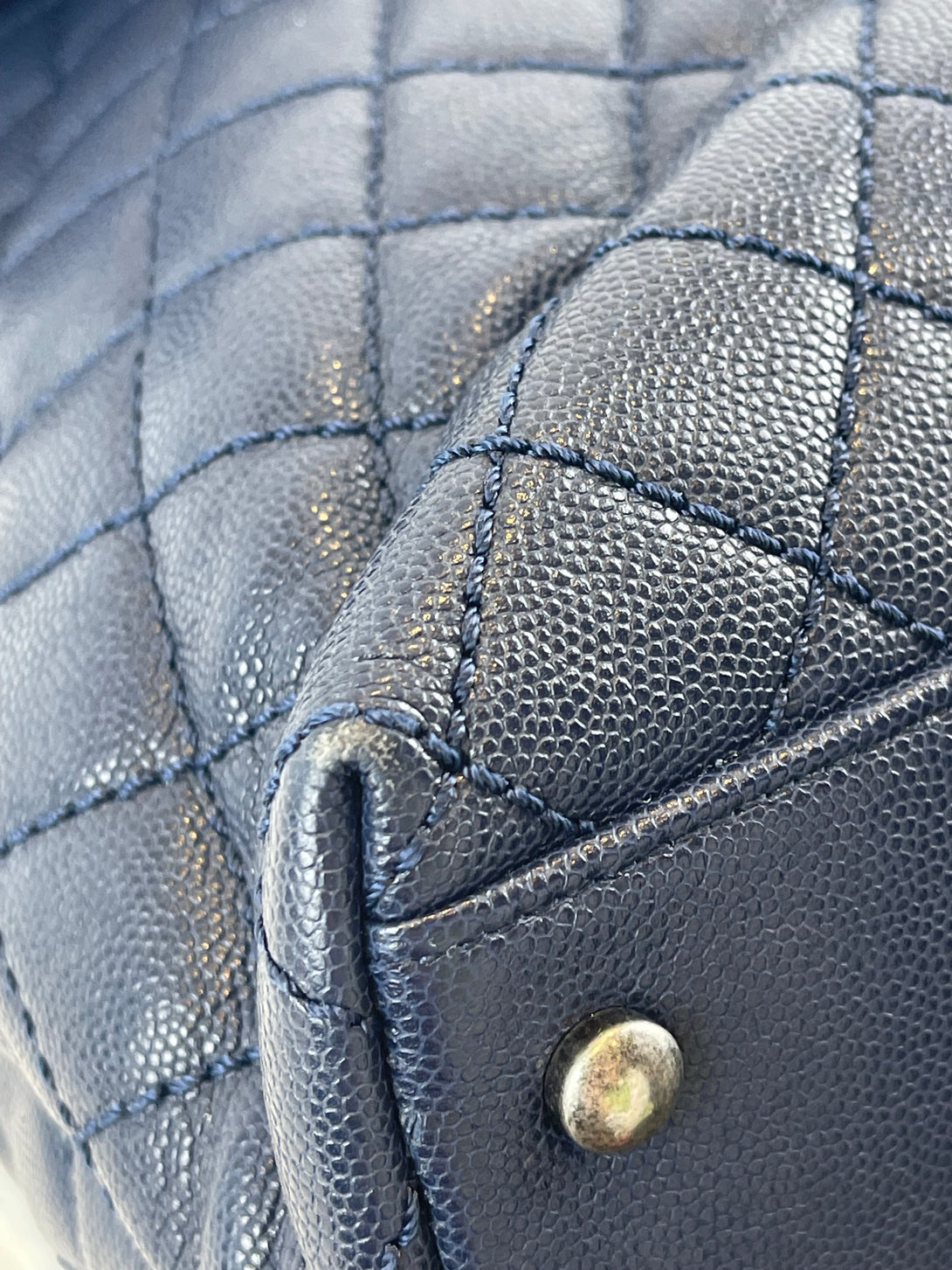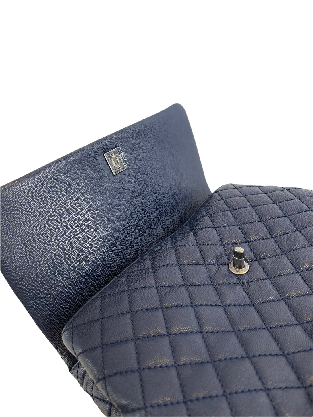 Chanel Navy Quilted Caviar Leather “Coco Top Handle” Shoulder Bag