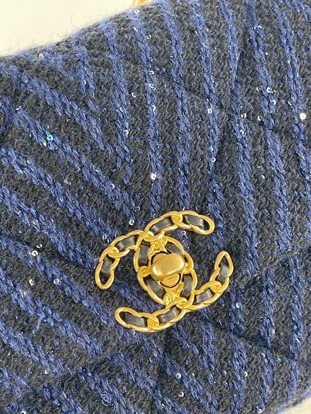 Chanel 19 Navy Sequins & Tweed Handbag