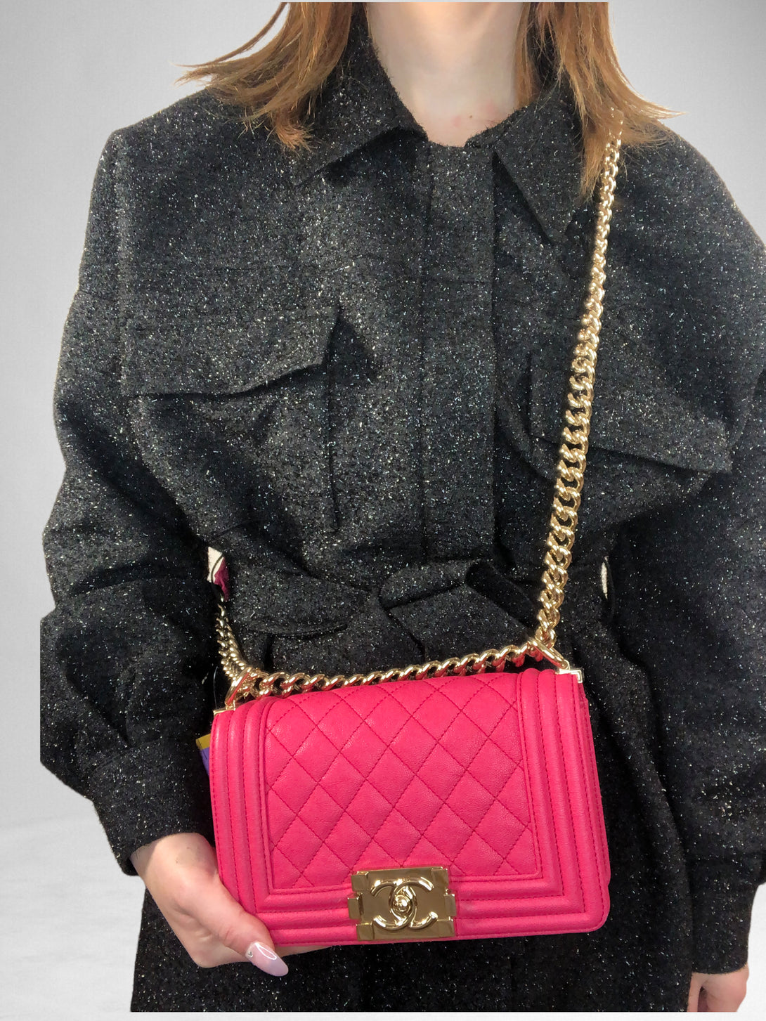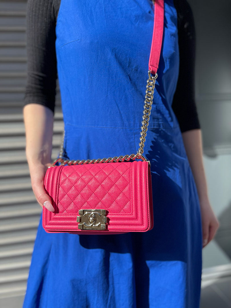 Chanel Small Hot Pink Calfskin Leather "Boy" Crossbody