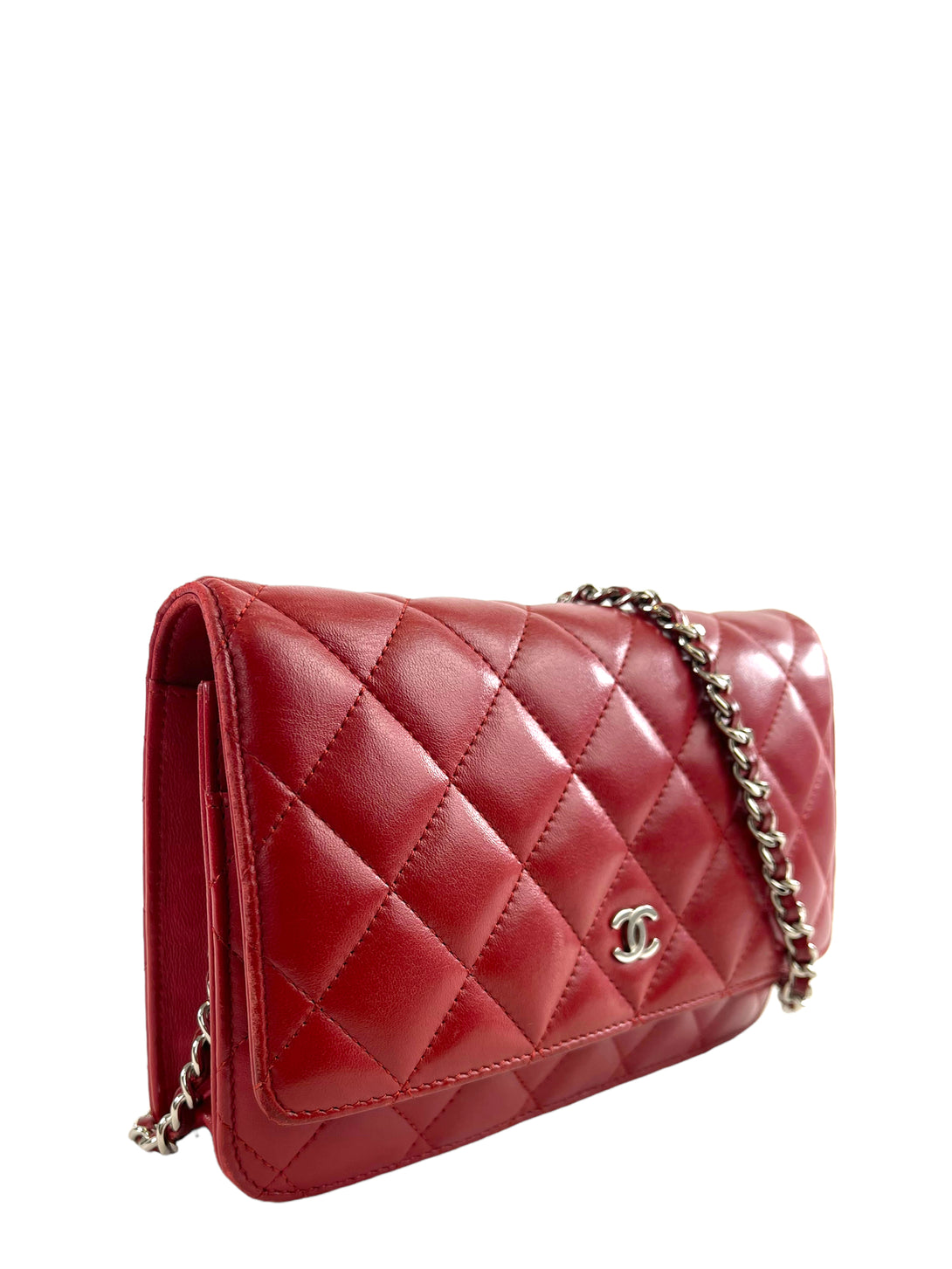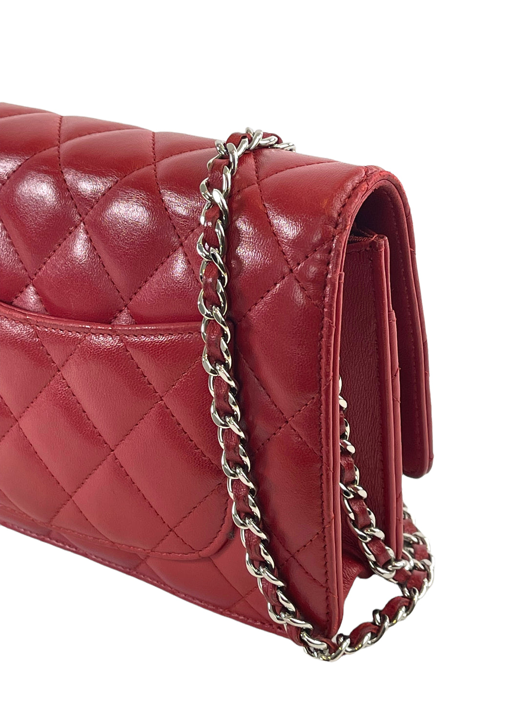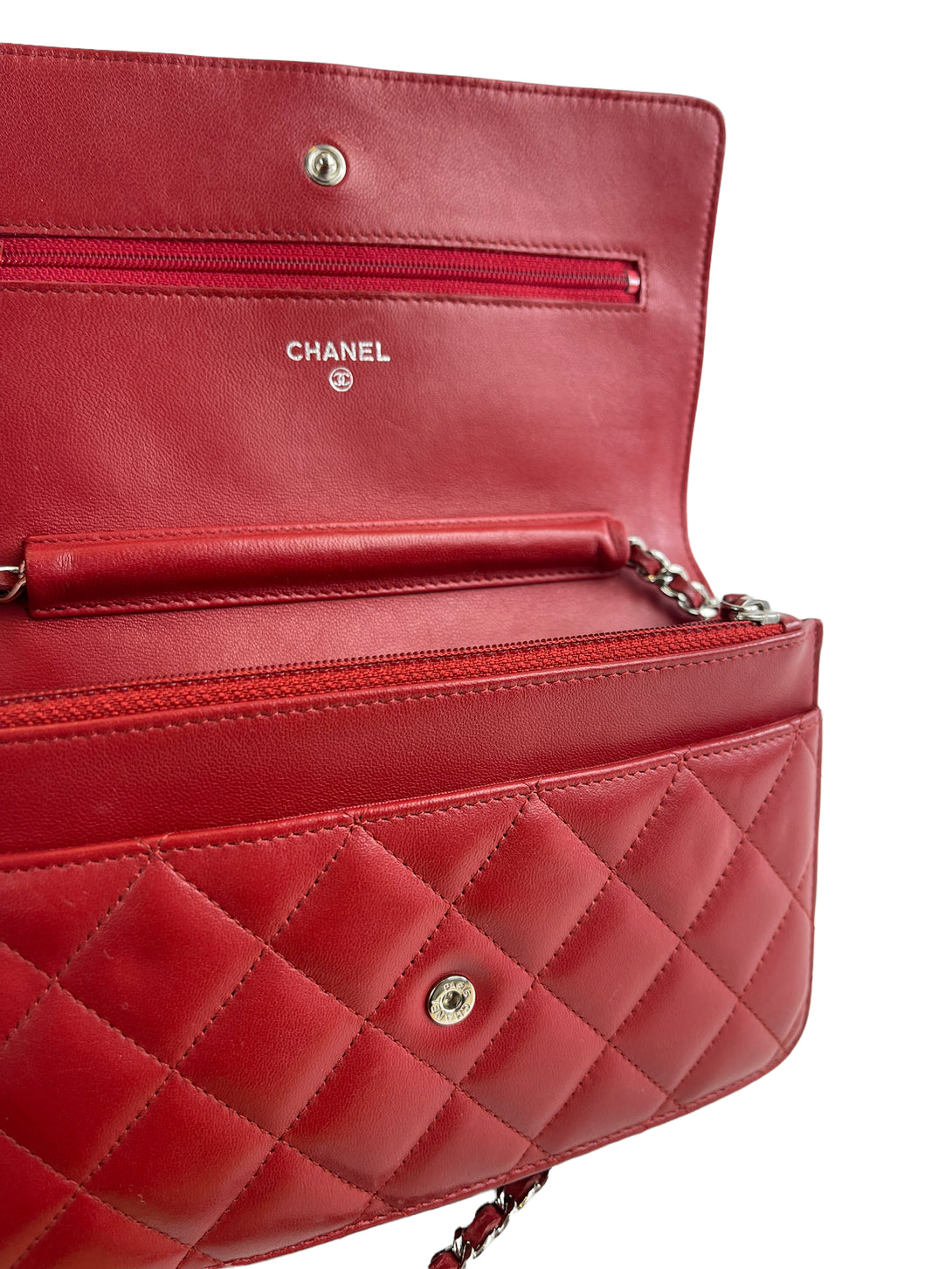 Chanel Red Lambskin Leather Wallet On Chain Crossbody