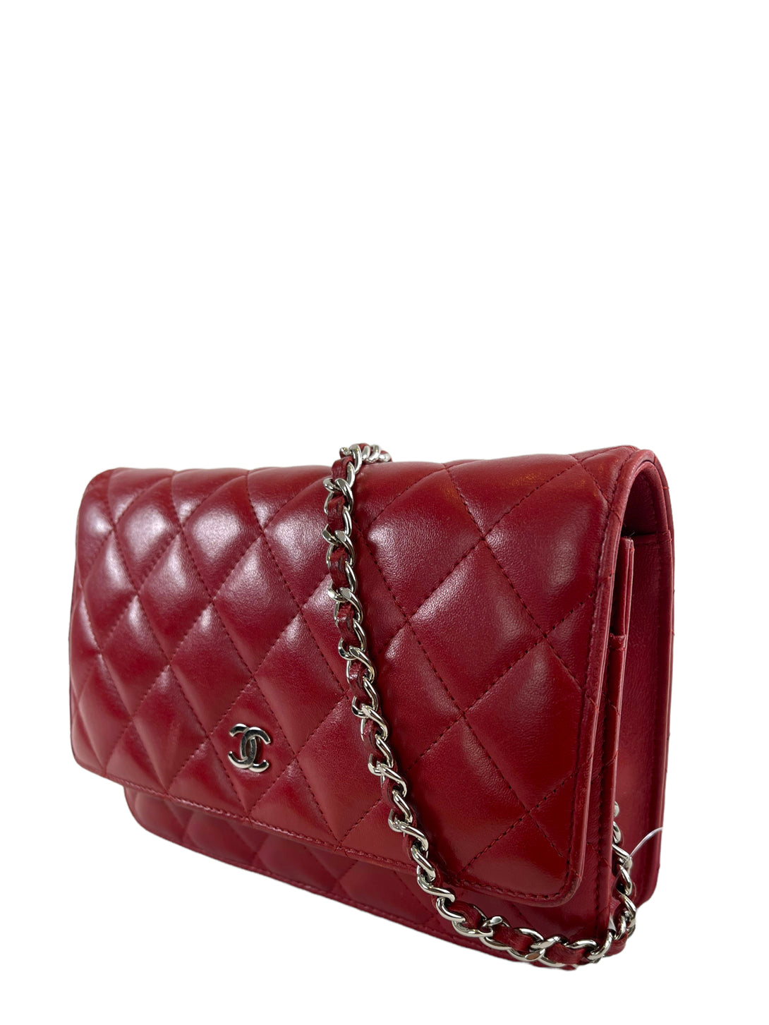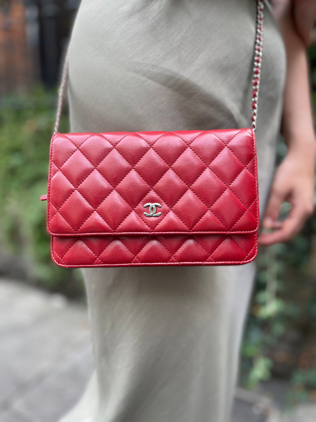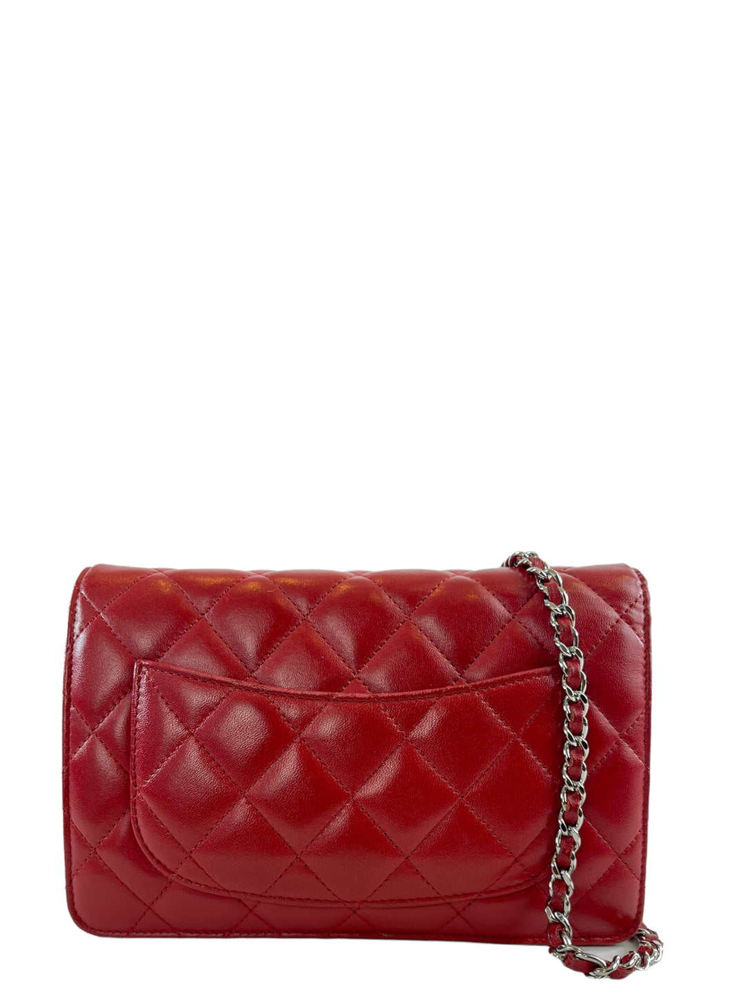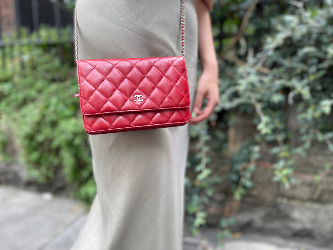 Chanel Red Lambskin Leather Wallet On Chain Crossbody