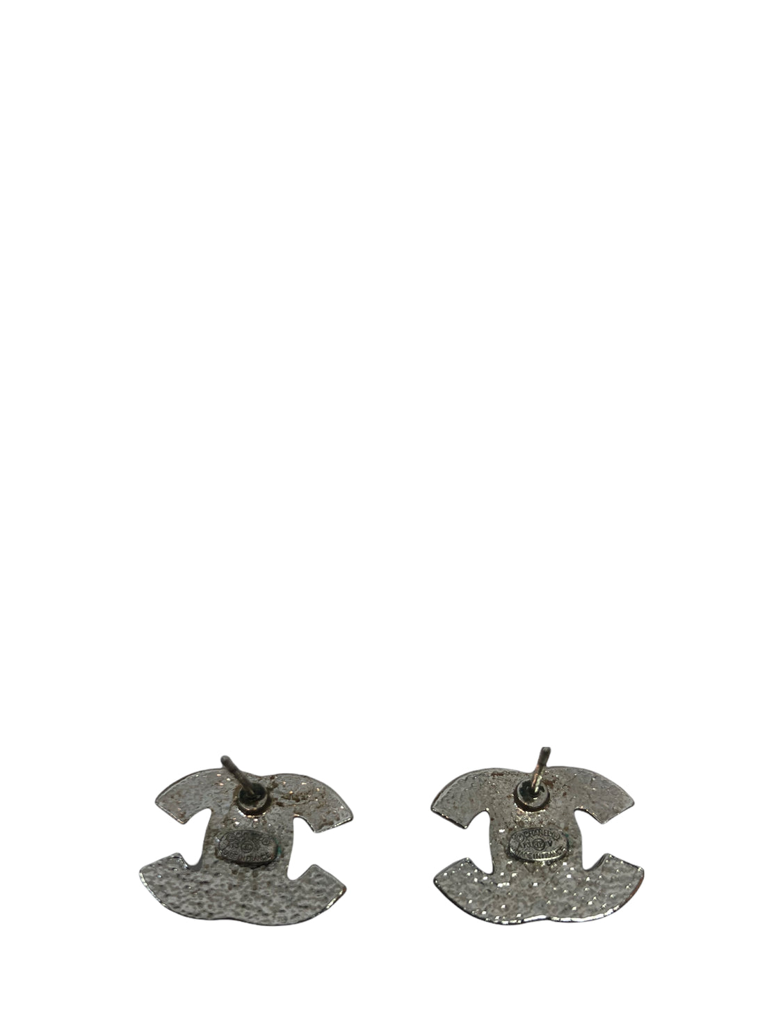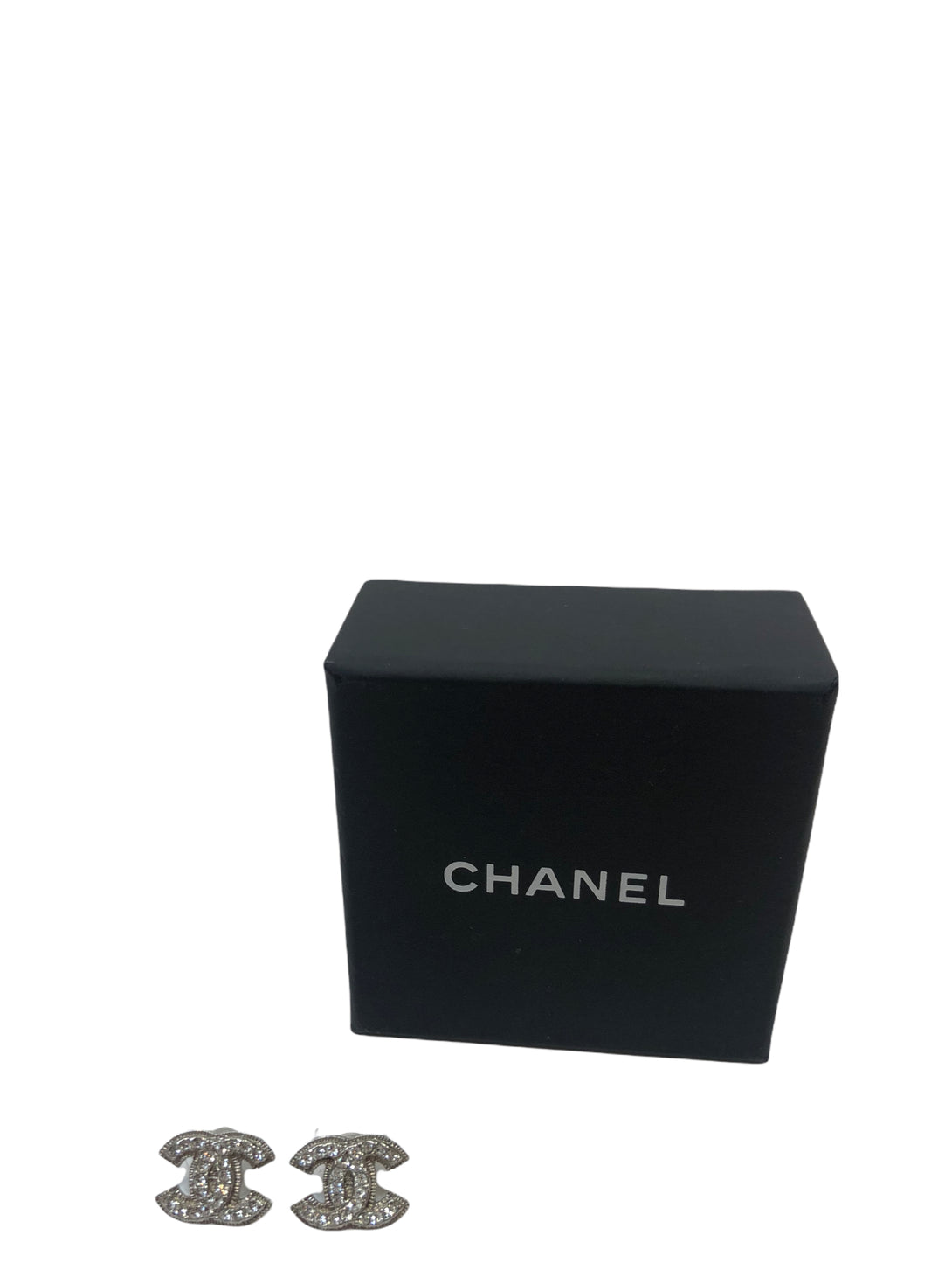 Chanel Silvertone Diamonte CC Earrings (Chunkier Style)