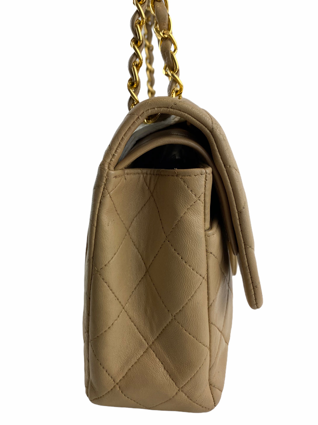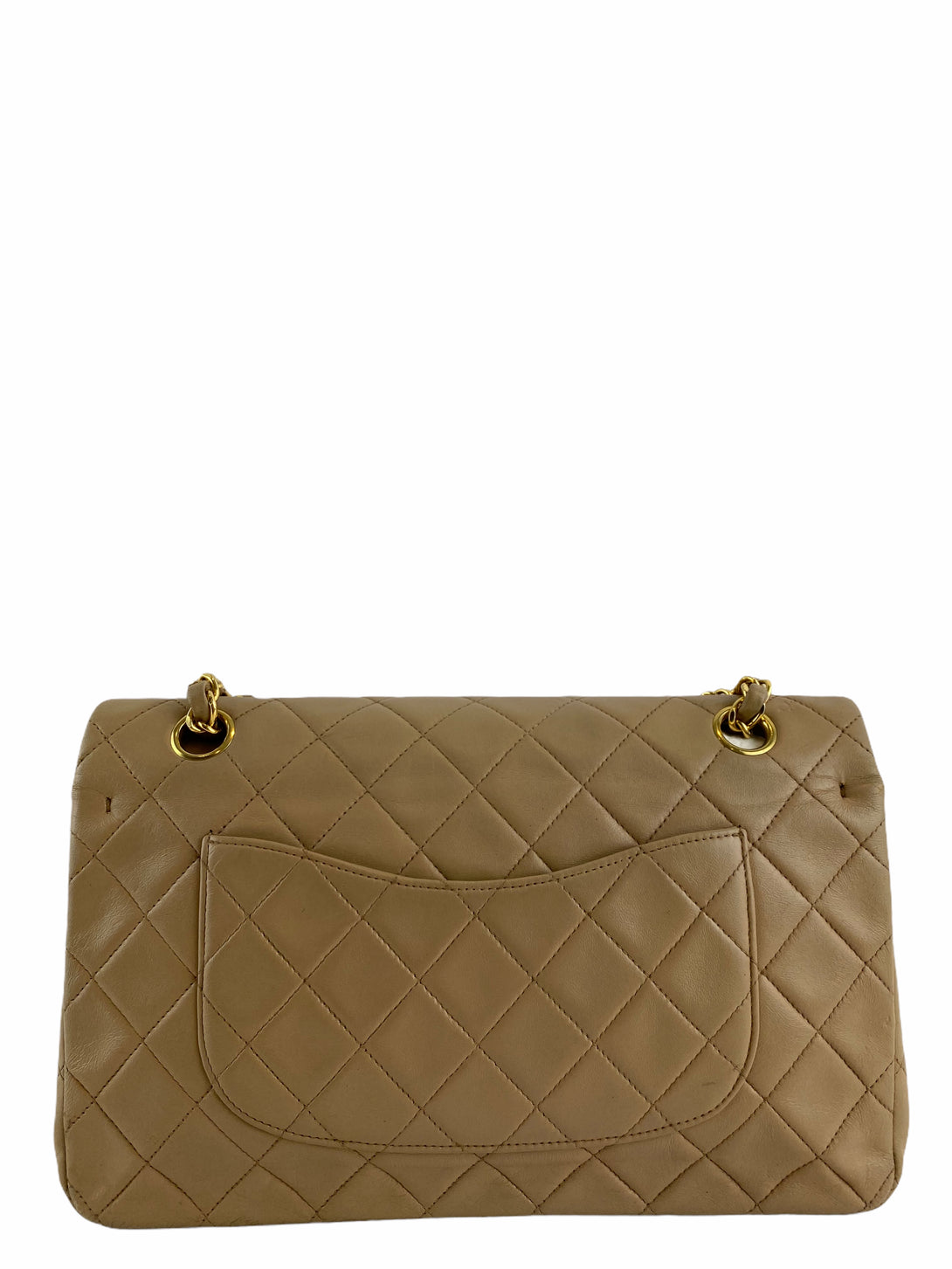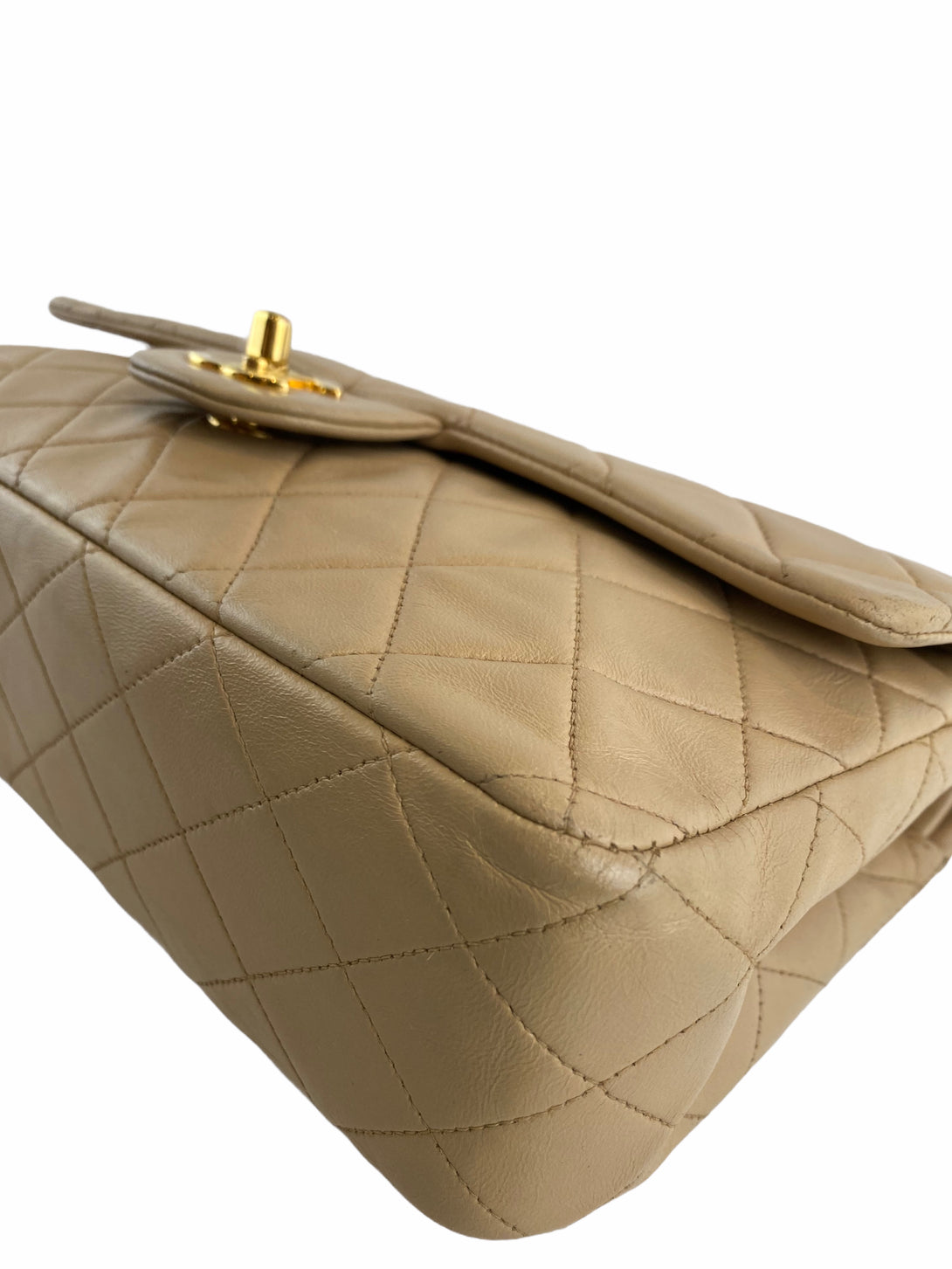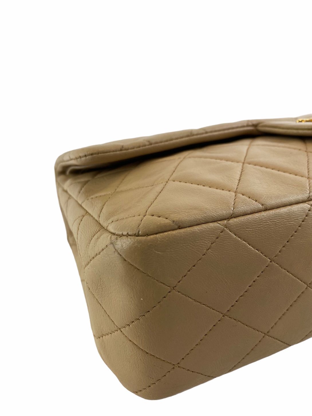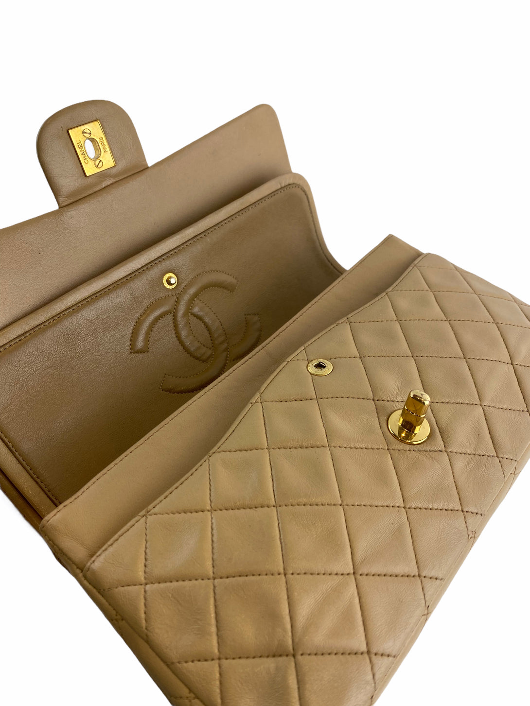 Chanel Medium Tan Quilted Lambskin Leather Double Flap