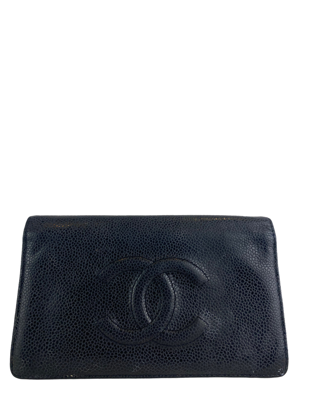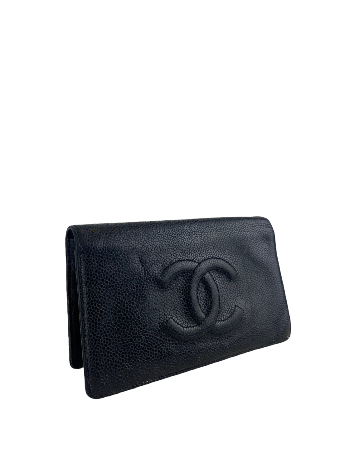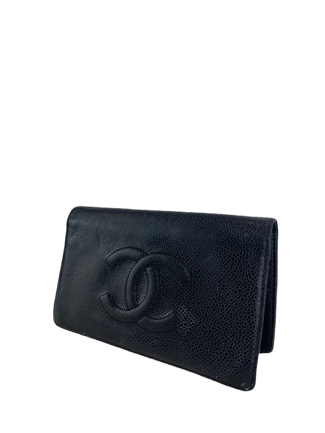 Chanel Vintage Black Caviar Leather "CC" Wallet