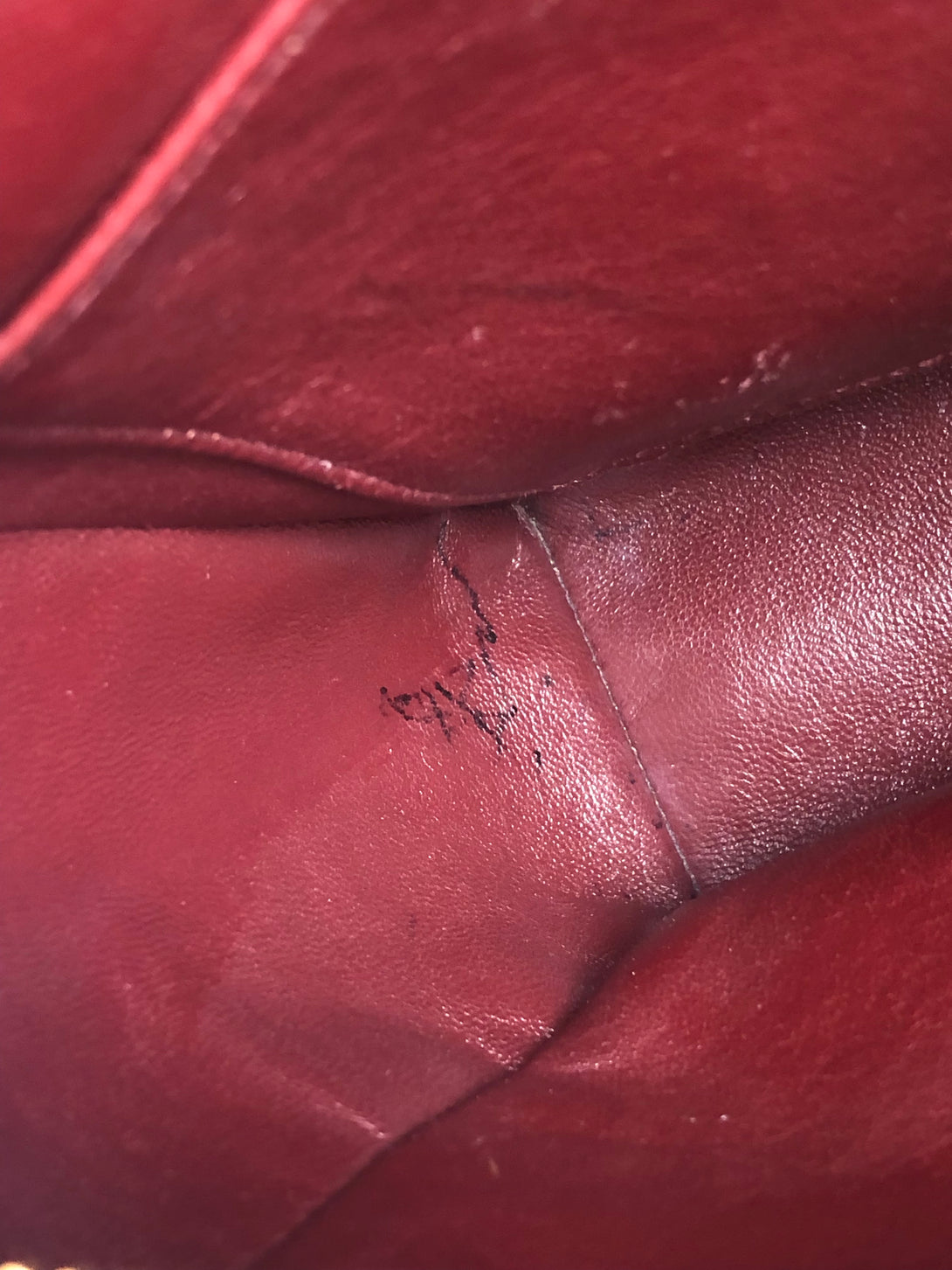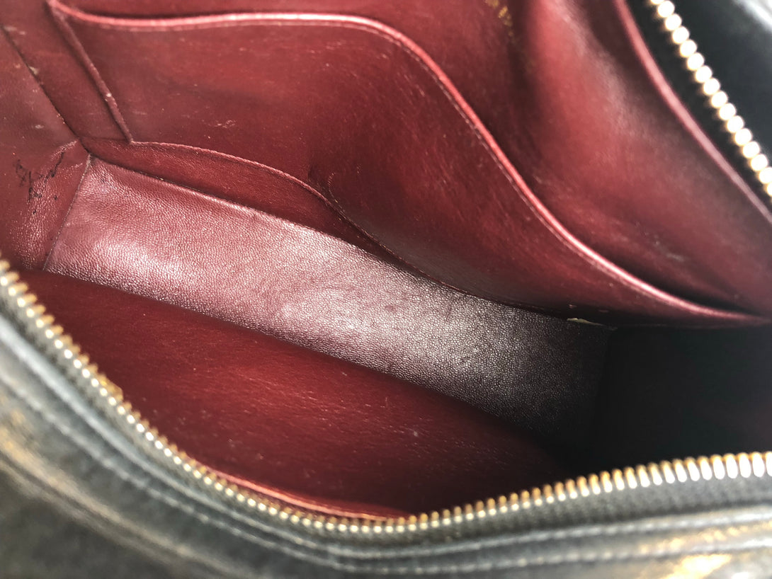 Good: Items show more prominent wear such as noticeable discoloration, stains and snags to fabric. May have worn corners and handles, tarnishing to hardware and creasing to leather. Pen or make up marks may be visible in the interior of the bag.