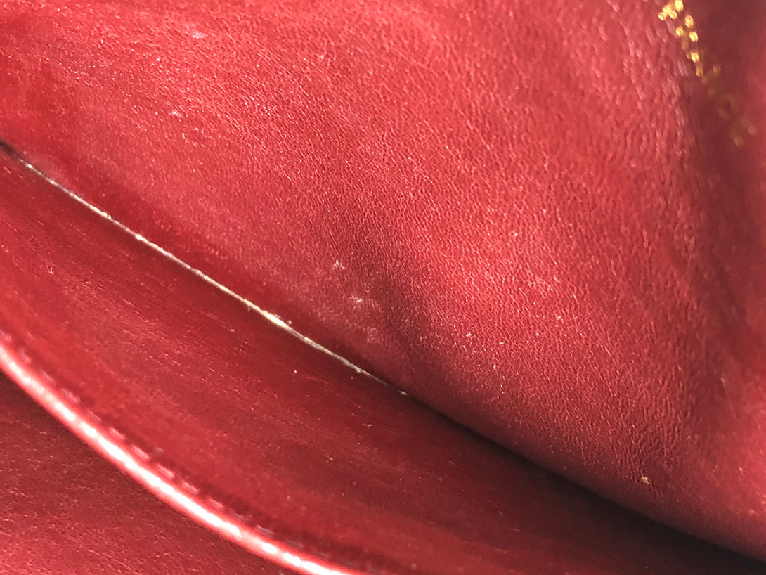 - Overall Condition: Very Good Pre-Loved Condition - some scuffing on leather, white specks and marking on gold hardware as shown