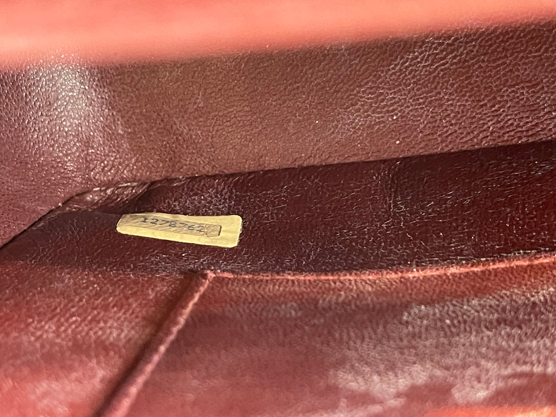 Good: Items show more prominent wear such as noticeable discoloration, stains and snags to fabric. May have worn corners and handles, tarnishing to hardware and creasing to leather. Pen or make up marks may be visible in the interior of the bag.