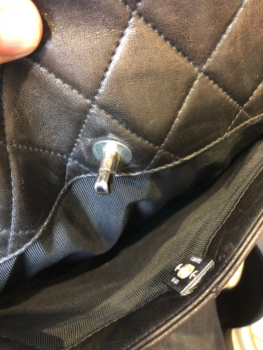 Good: Items show more prominent wear such as noticeable discoloration, stains and snags to fabric. May have worn corners and handles, tarnishing to hardware and creasing to leather. Pen or make up marks may be visible in the interior of the bag.