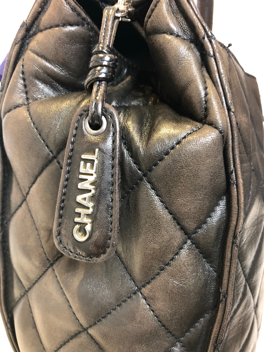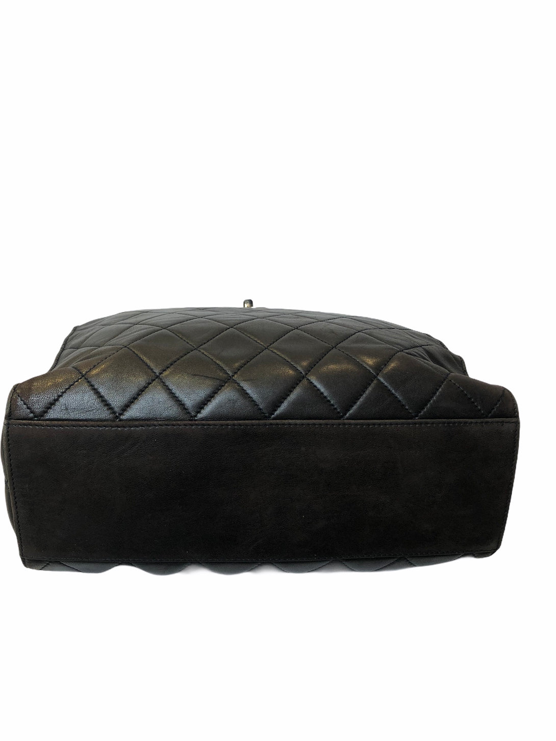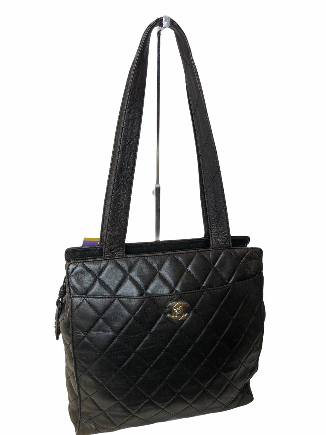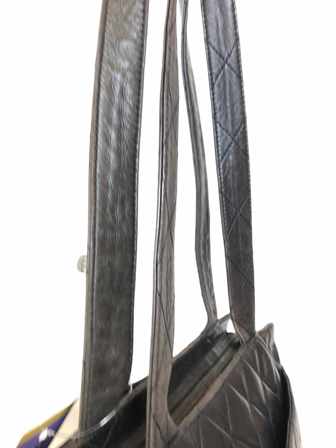 Chanel Vintage Chocolate Brown Lambskin Leather Tote with Silvertone Hardware