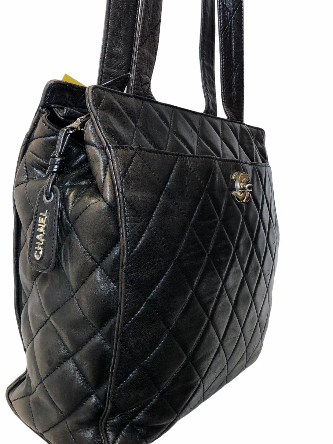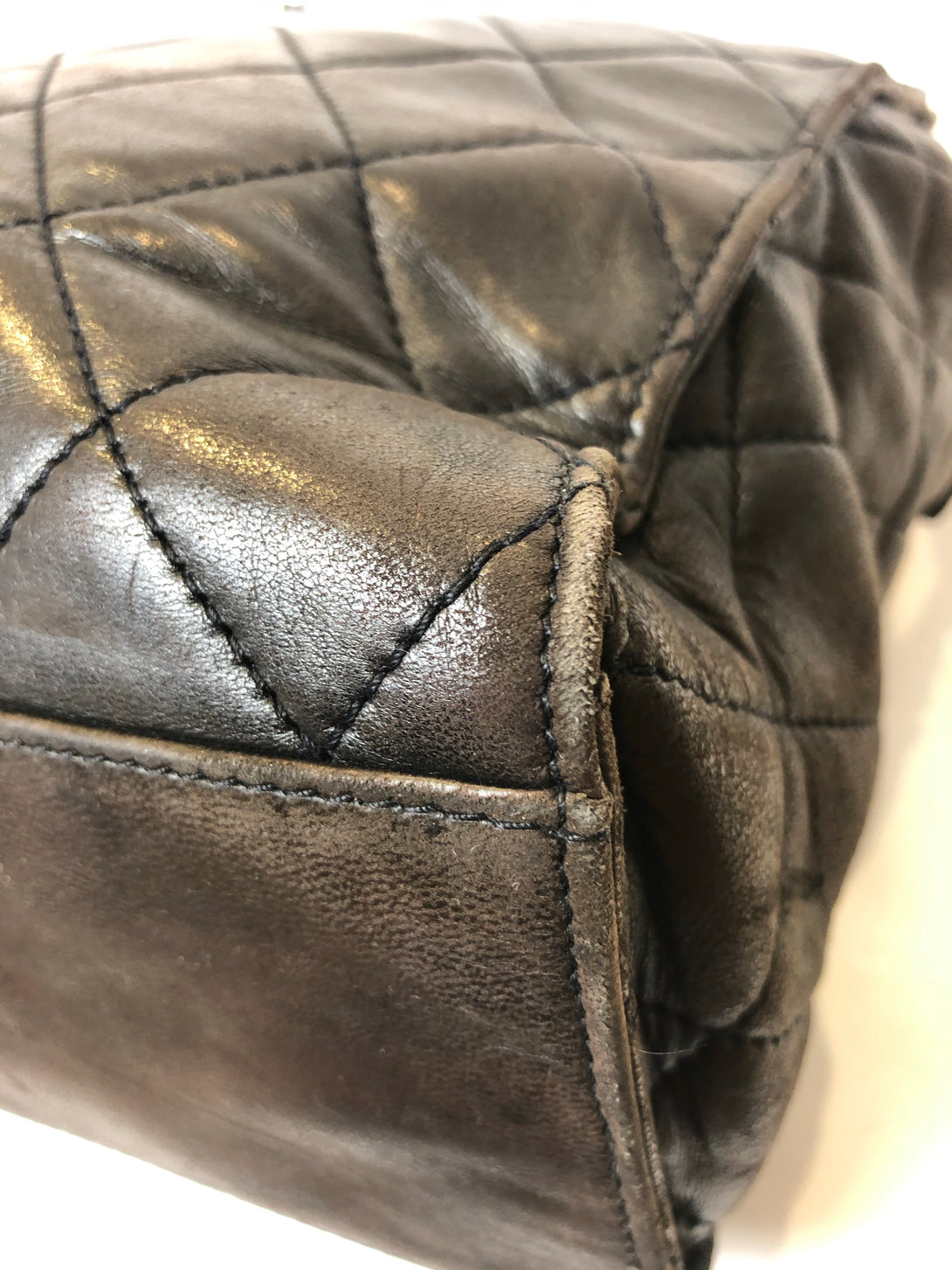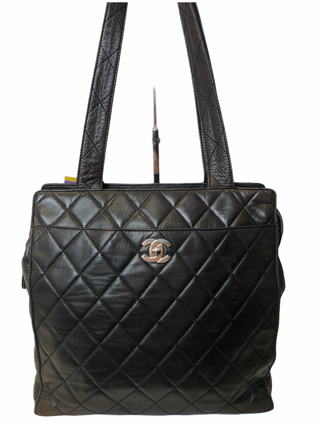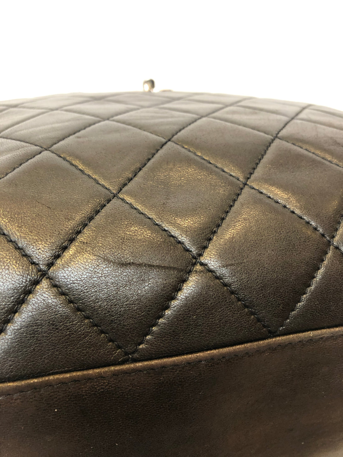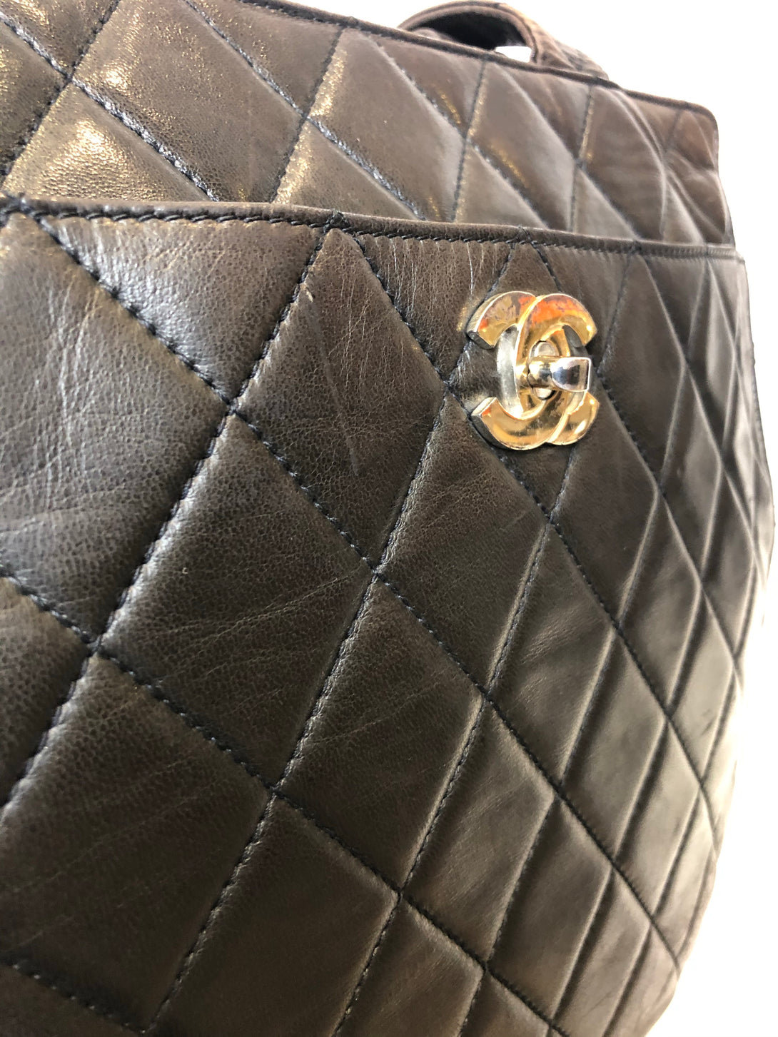 Chanel Vintage Chocolate Brown Lambskin Leather Tote with Silvertone Hardware