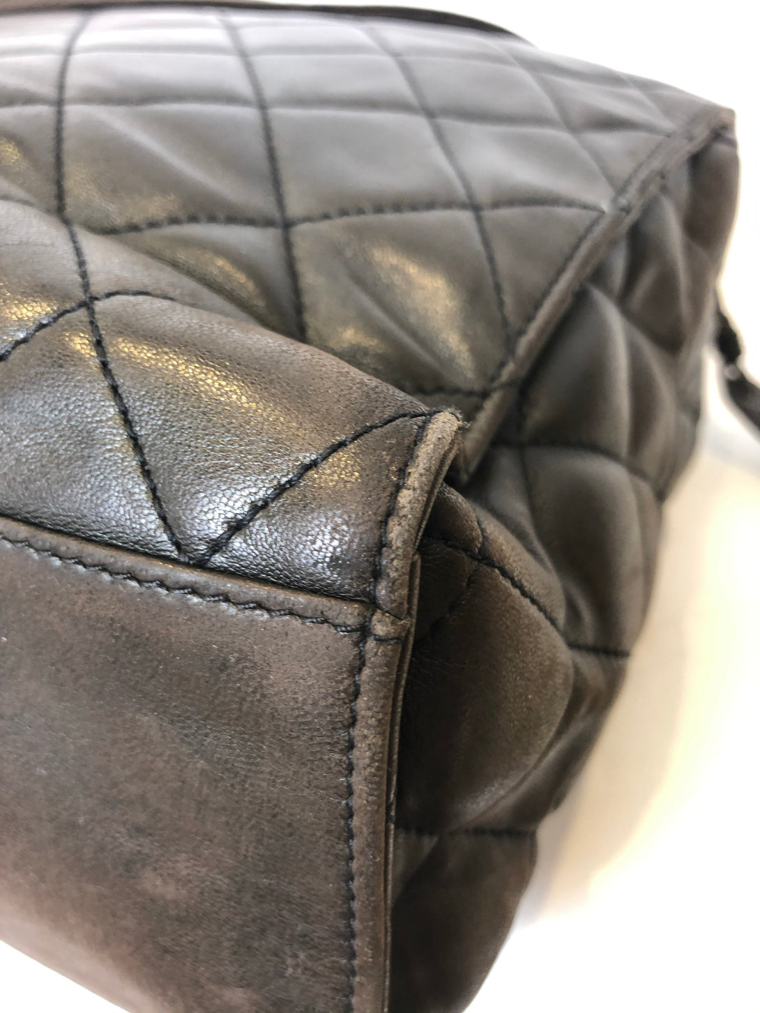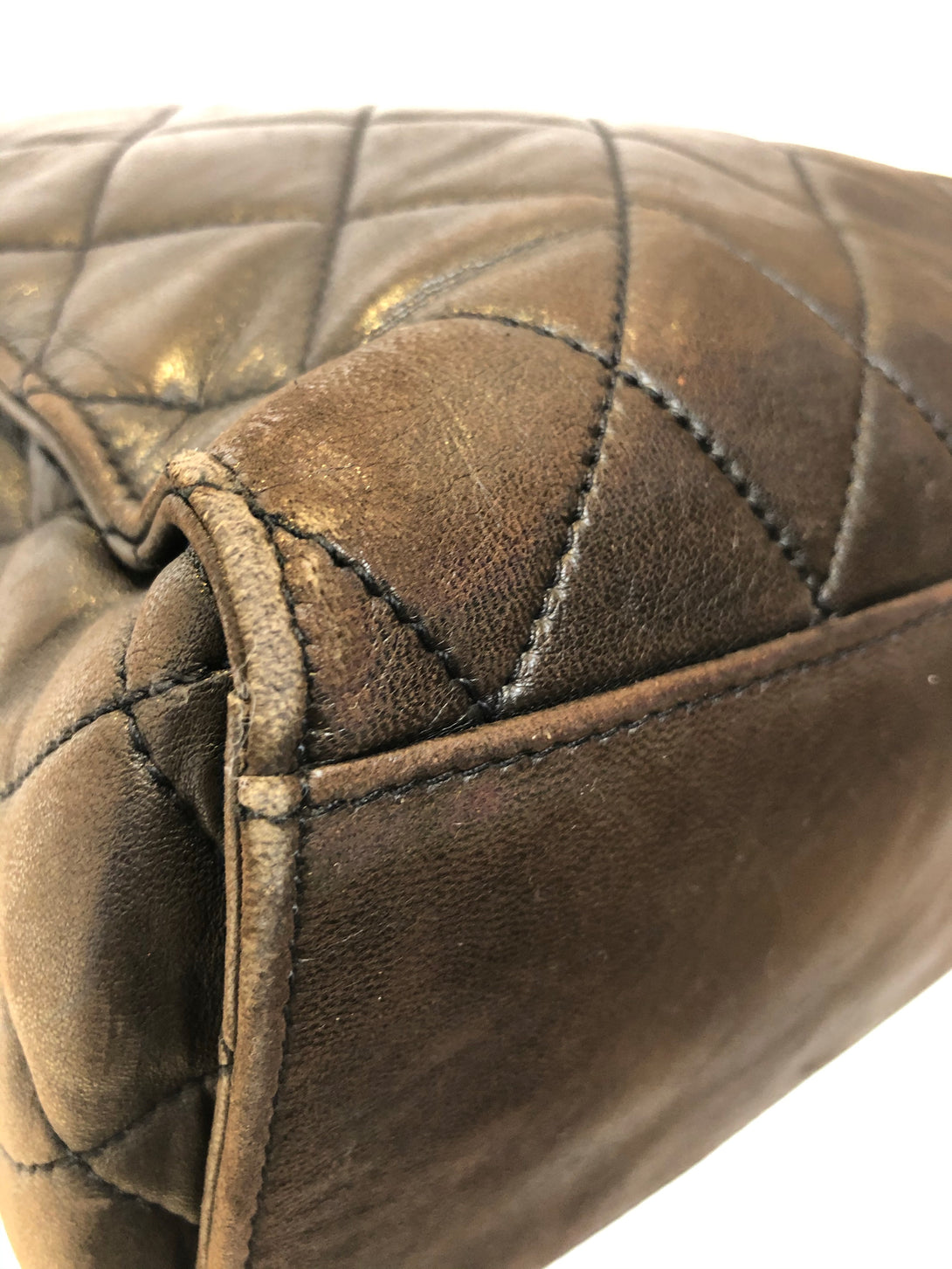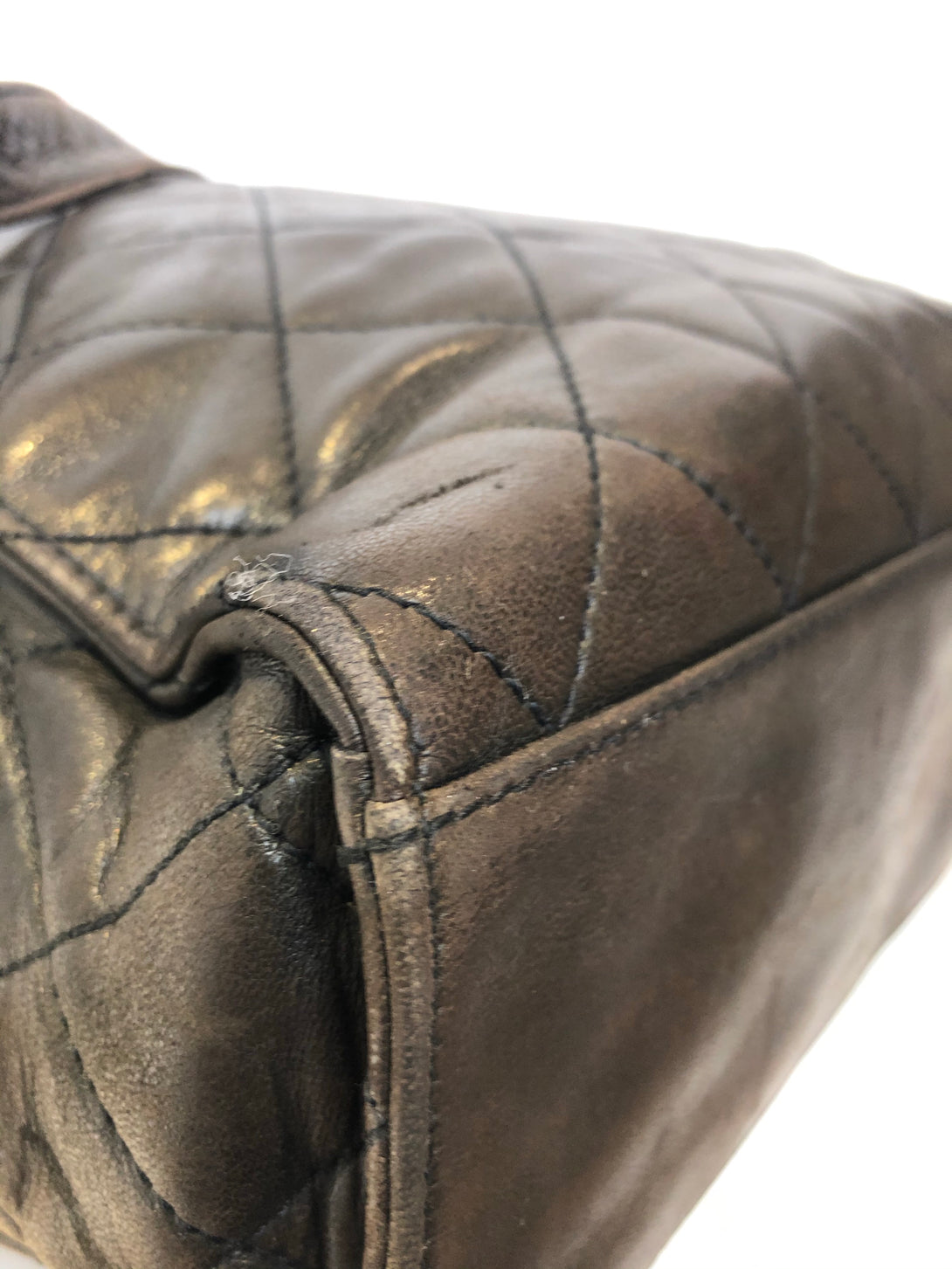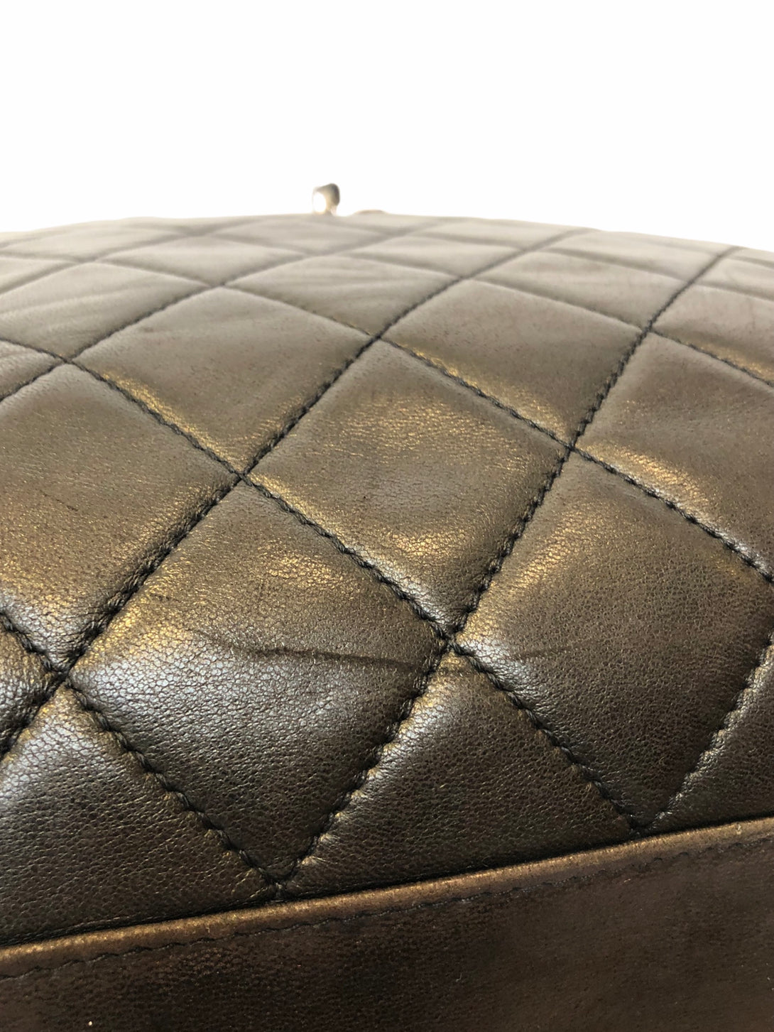 Chanel Vintage Chocolate Brown Lambskin Leather Tote with Silvertone Hardware
