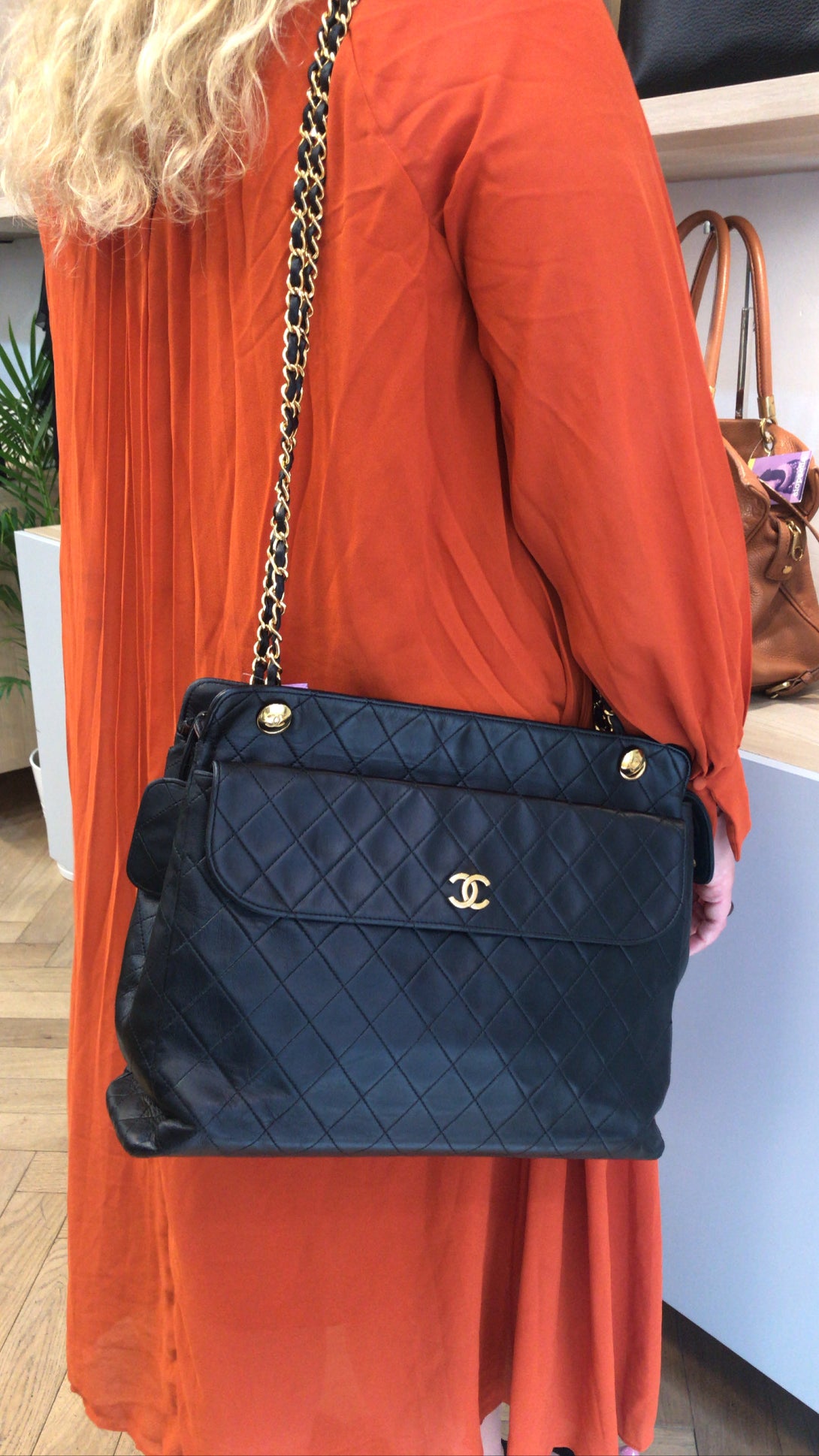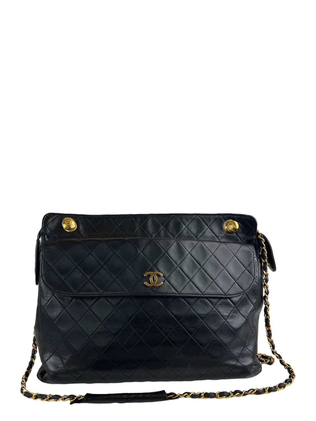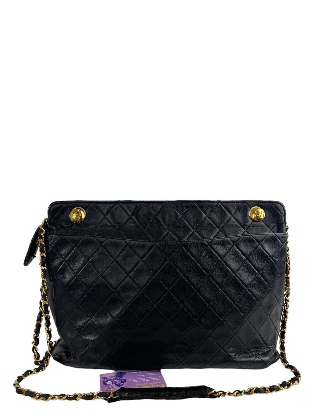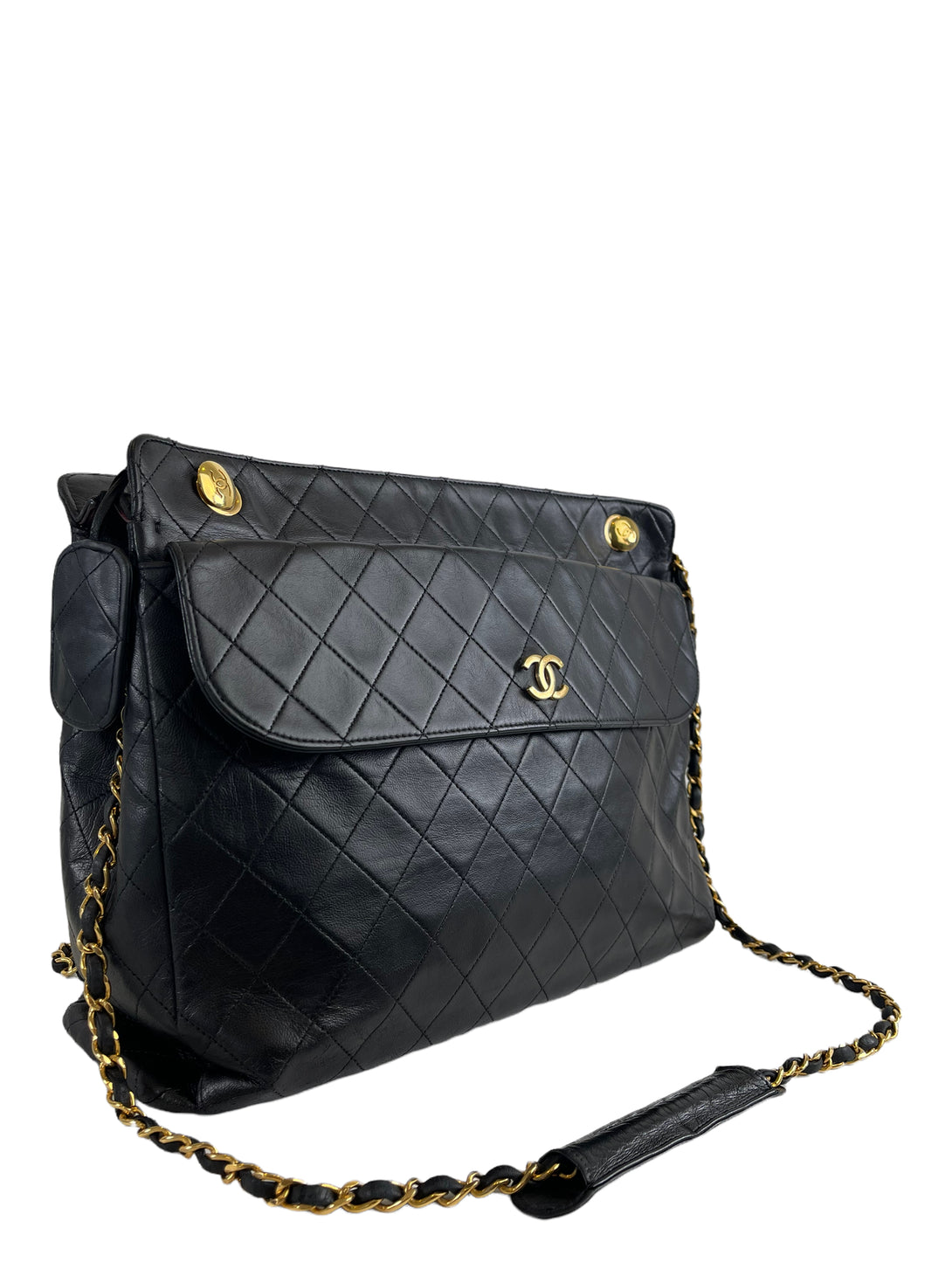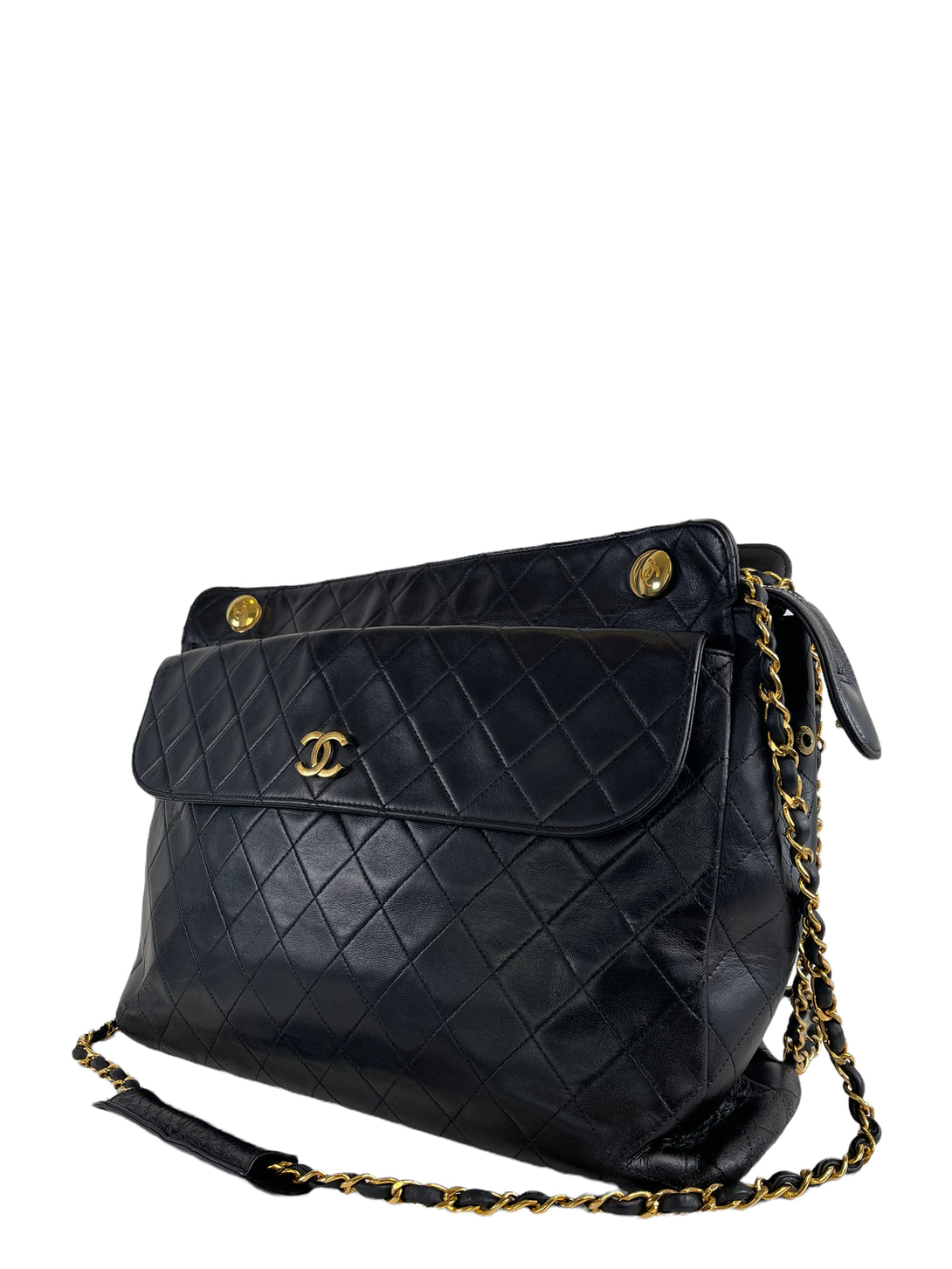 Chanel Vintage Front Pocket Quilted Lambskin Tote