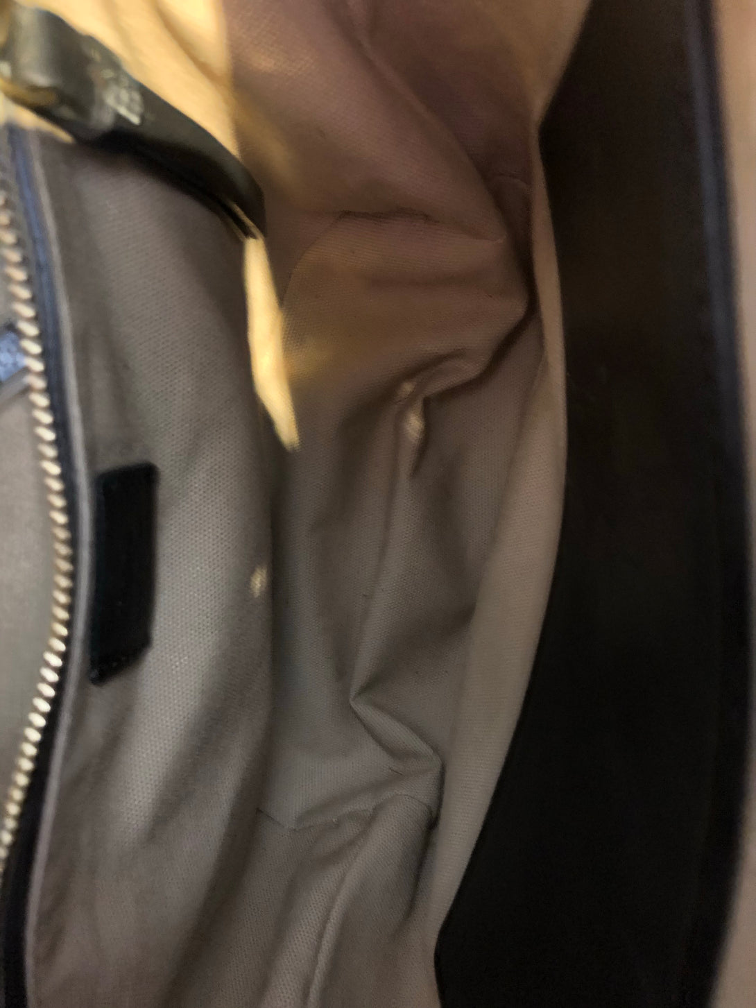 Good: Items show more prominent wear such as noticeable discoloration, stains and snags to fabric. May have worn corners and handles, tarnishing to hardware and creasing to leather. Pen or make up marks may be visible in the interior of the bag.