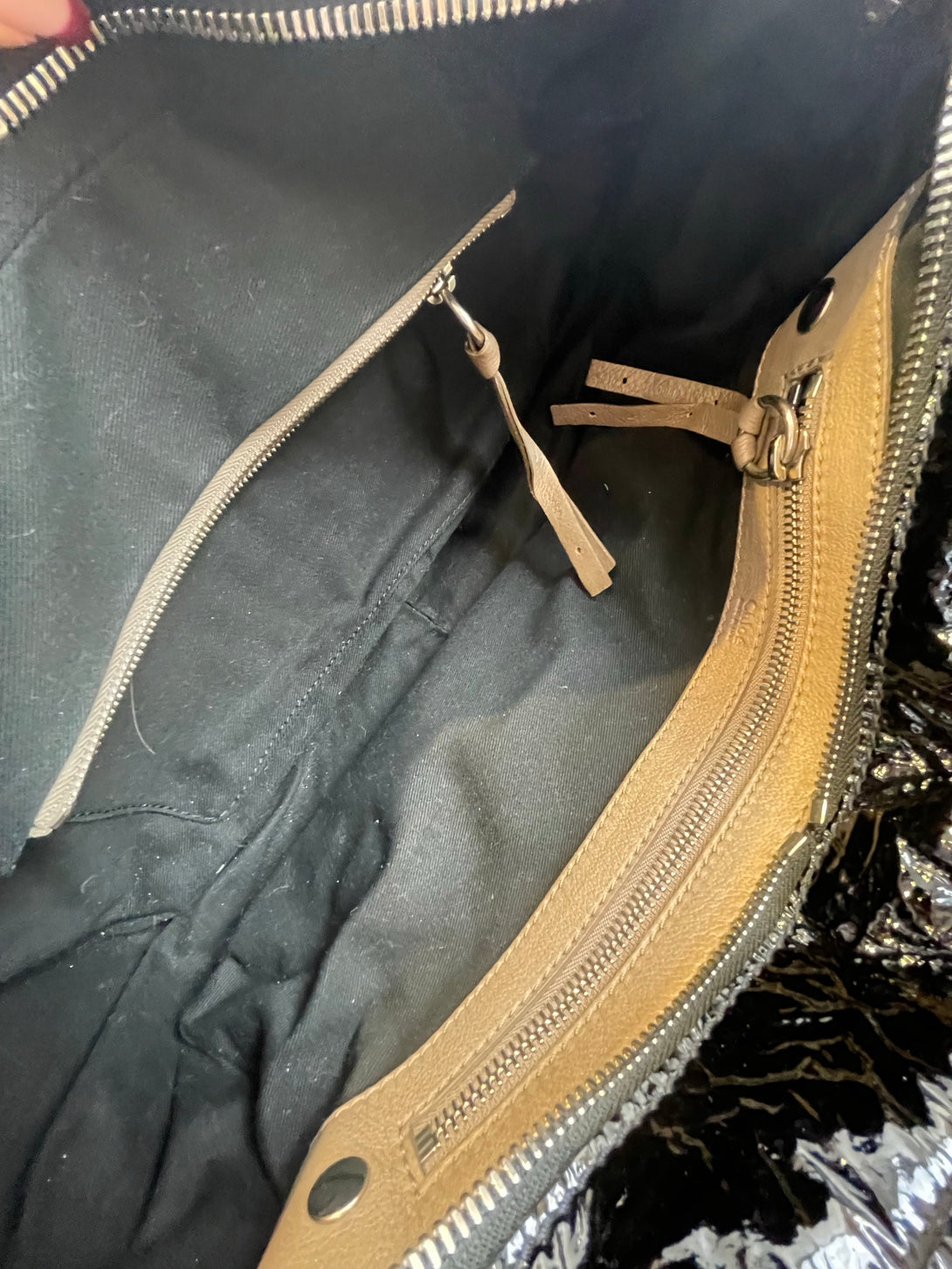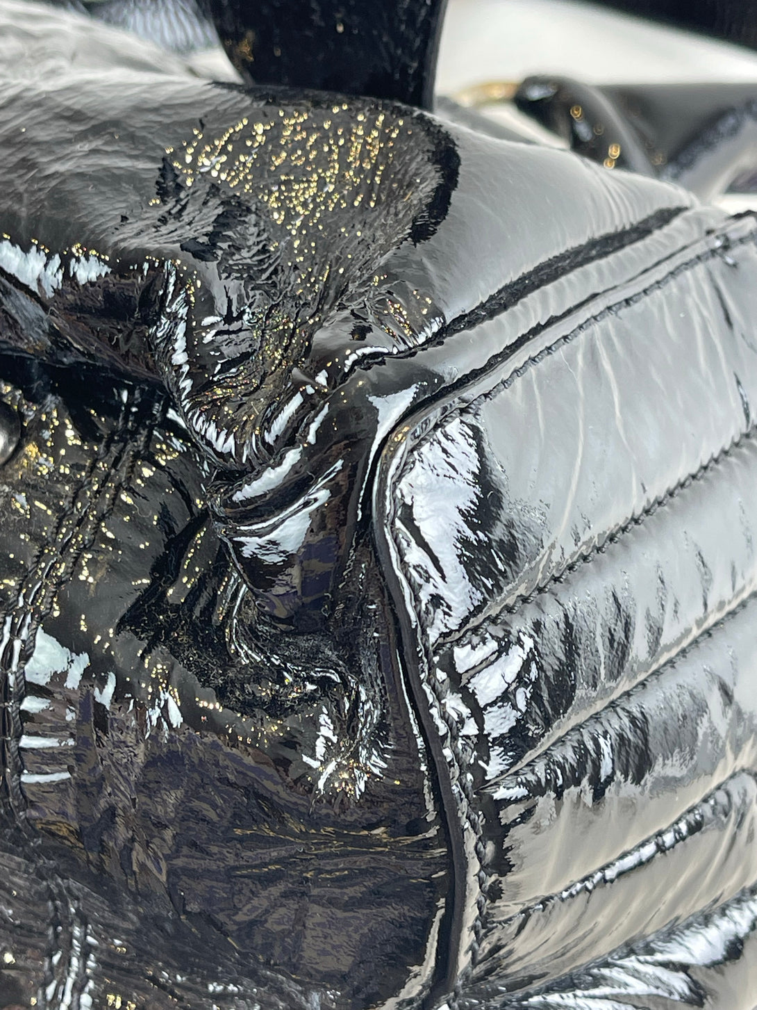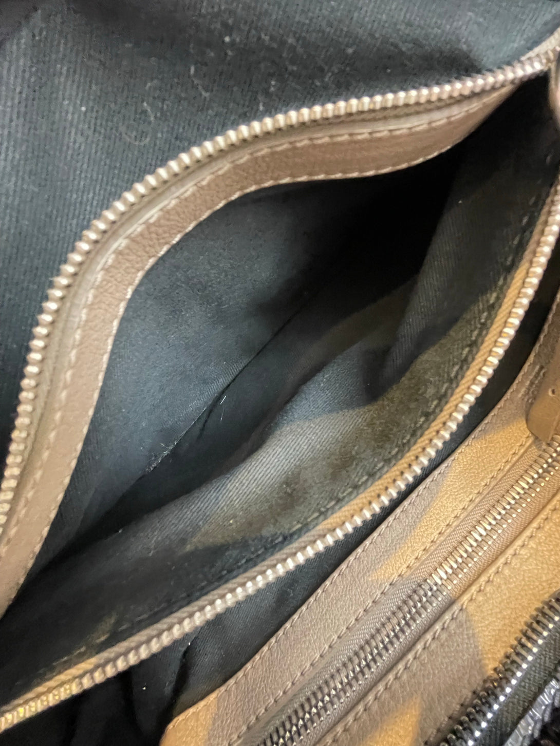 Good: Items show more prominent wear such as noticeable discoloration, stains and snags to fabric. May have worn corners and handles, tarnishing to hardware and creasing to leather. Pen or make up marks may be visible in the interior of the bag.
