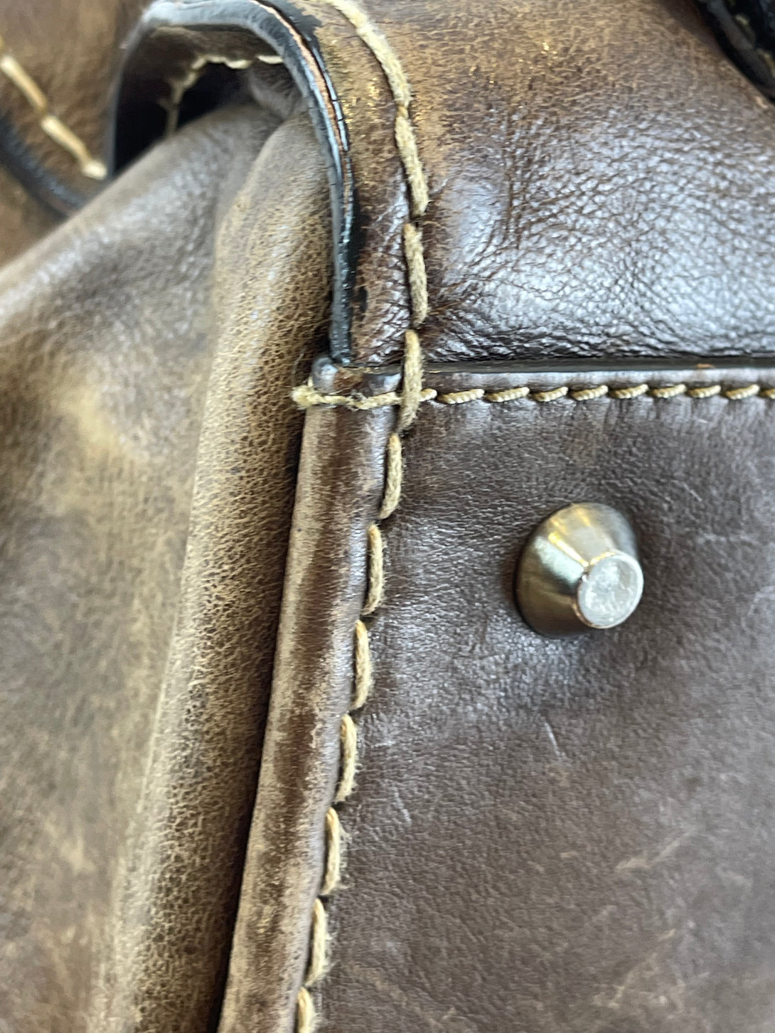 Fair: Very prominent wear, may have holes on corners, severe scuffs, piping of bag showing and pen marks to exterior. Interior may have pen or make up marks.