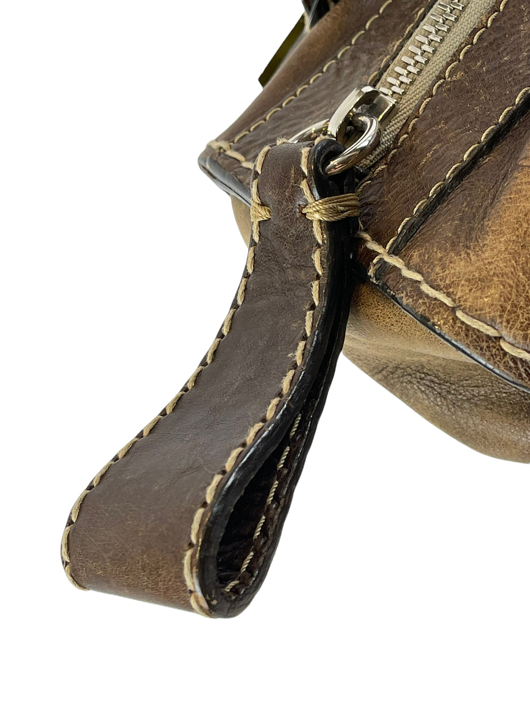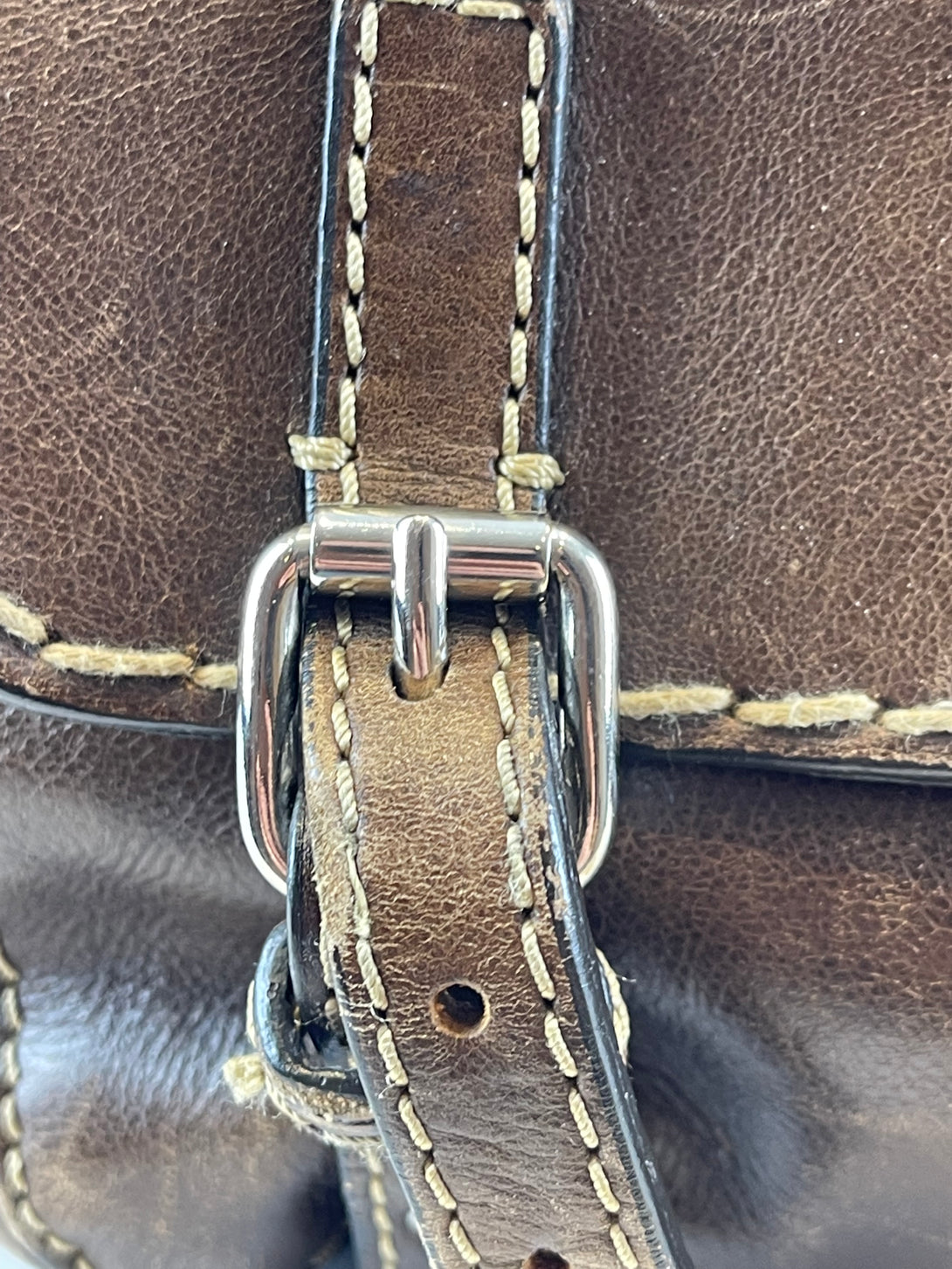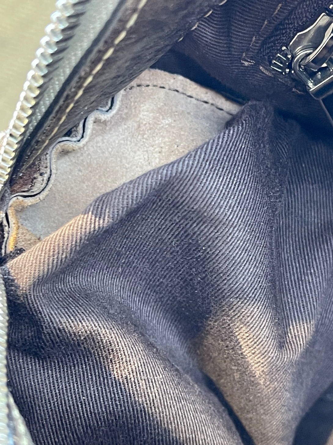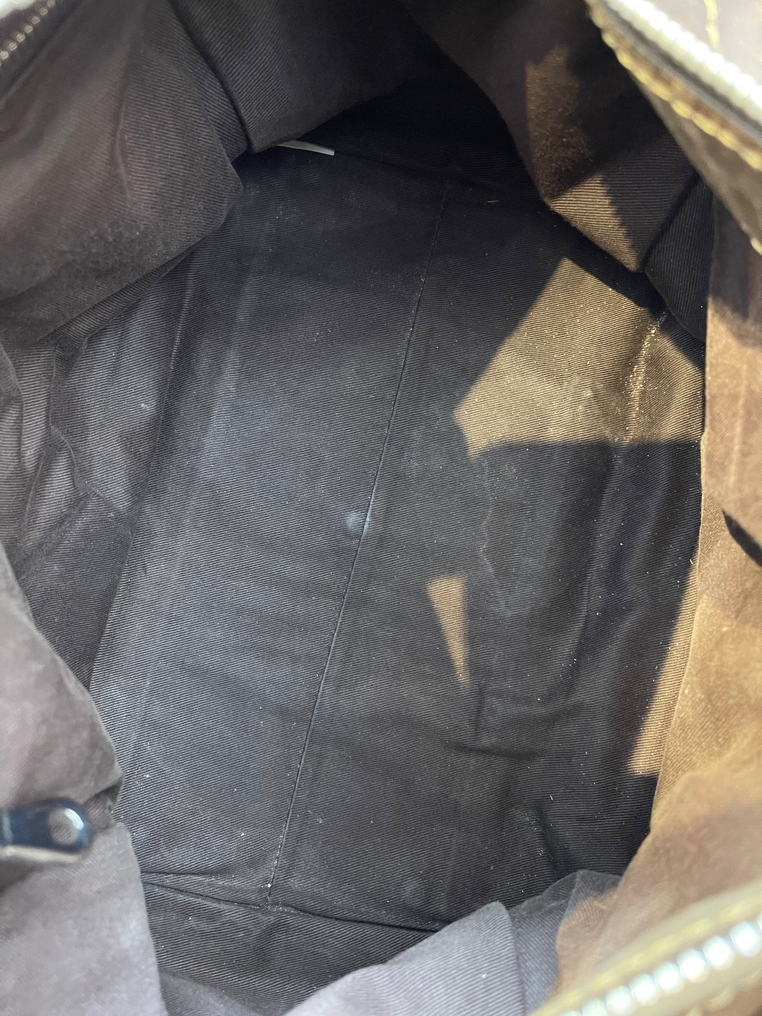 Good: Items show more prominent wear such as noticeable discoloration, stains and snags to fabric. May have worn corners and handles, tarnishing to hardware and creasing to leather. Pen or make up marks may be visible in the interior of the bag.