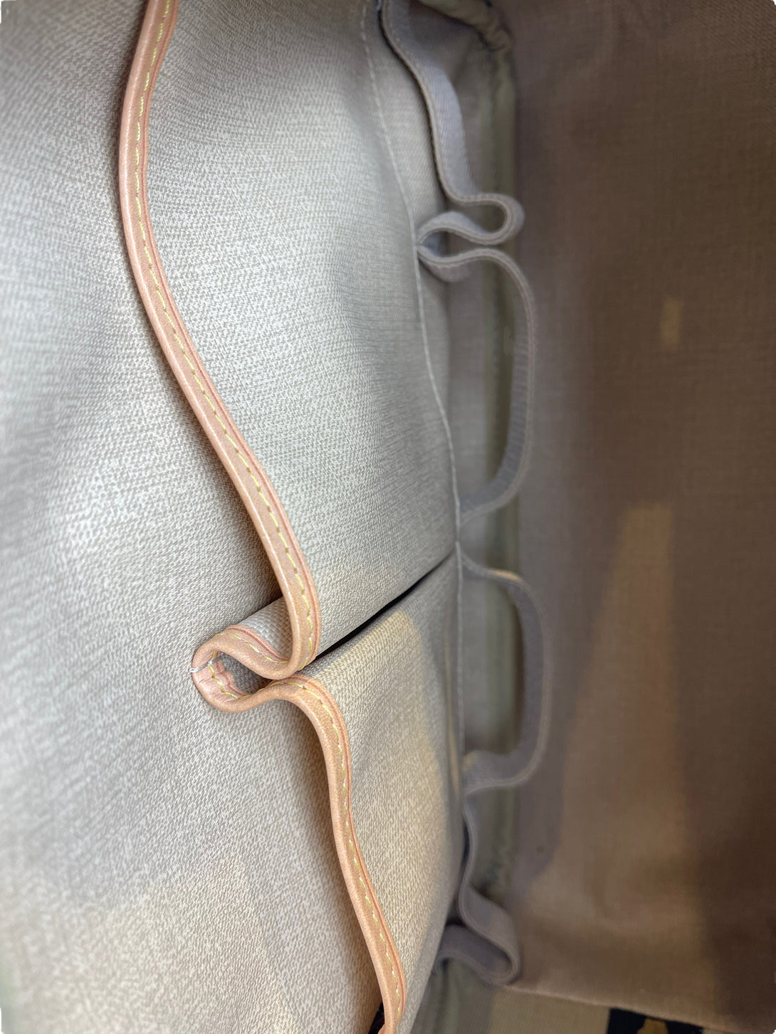Fair: Very prominent wear, may have holes on corners, severe scuffs, piping of bag showing and pen marks to exterior. Interior may have pen or make up marks.