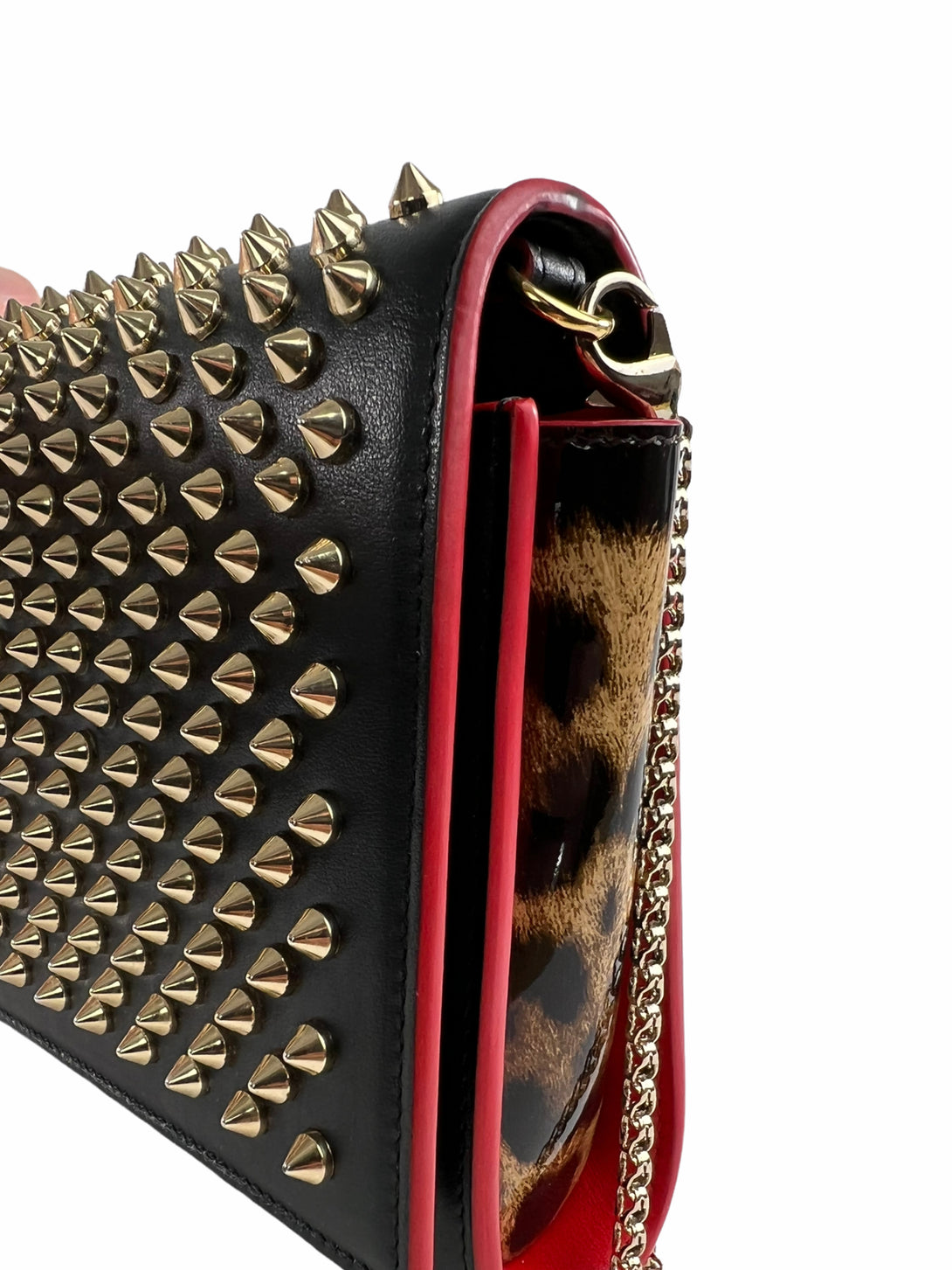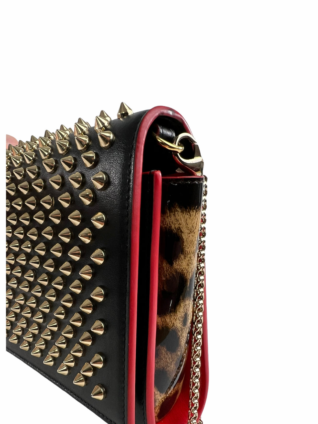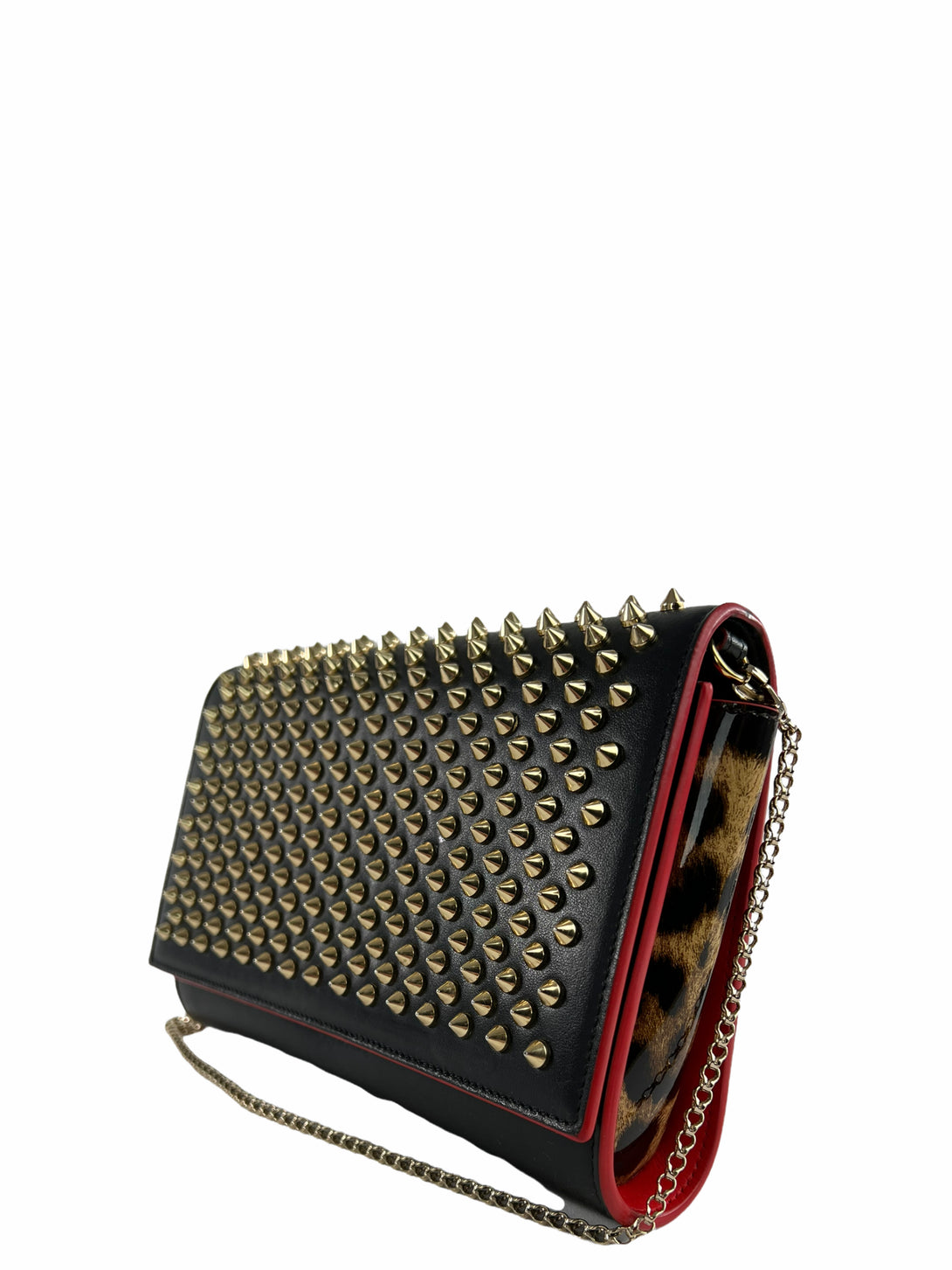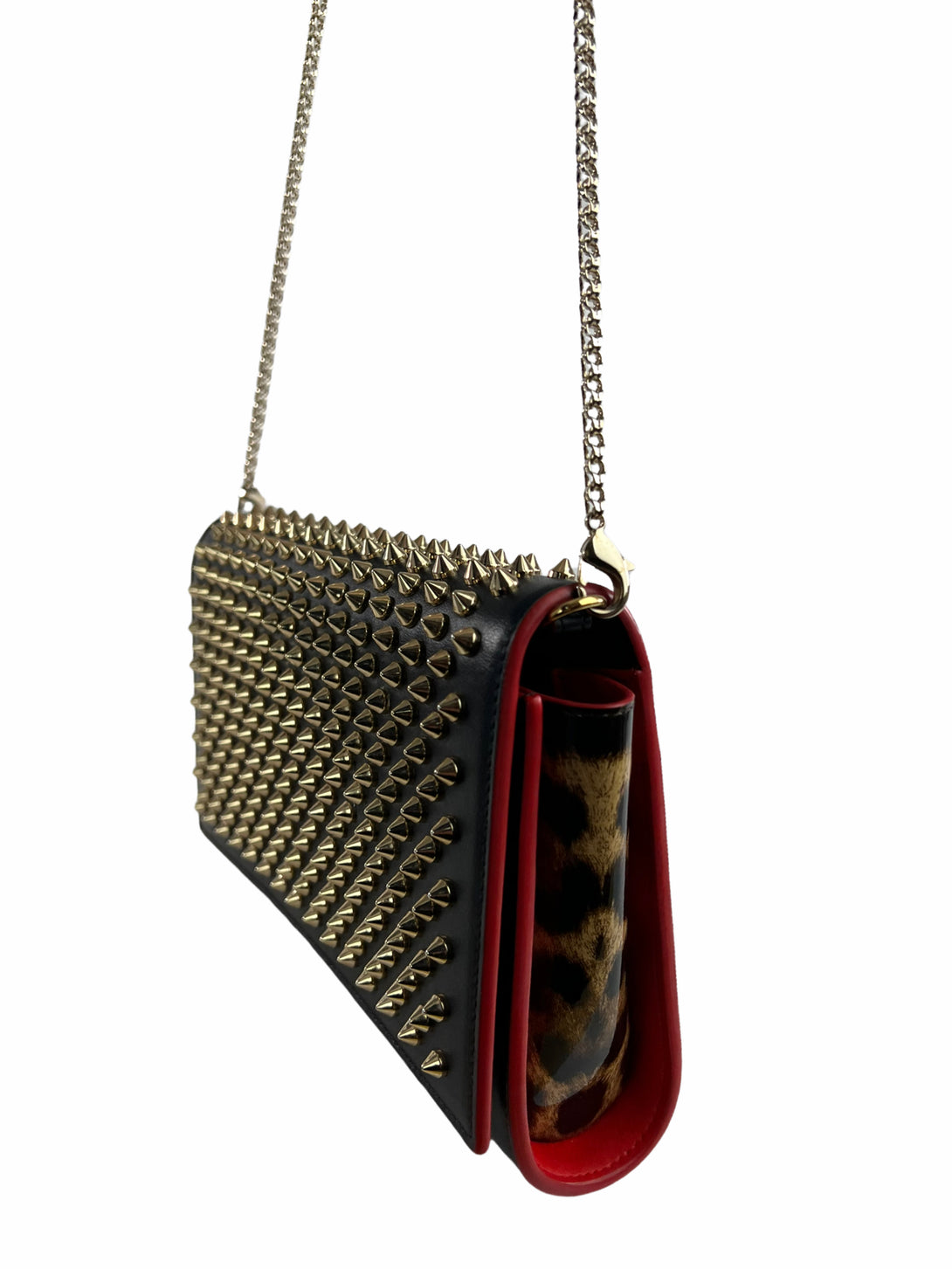 Christian Louboutin Black Leather & Leopard Vinyl Studded Crossbody