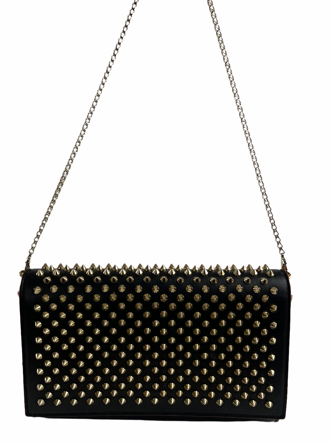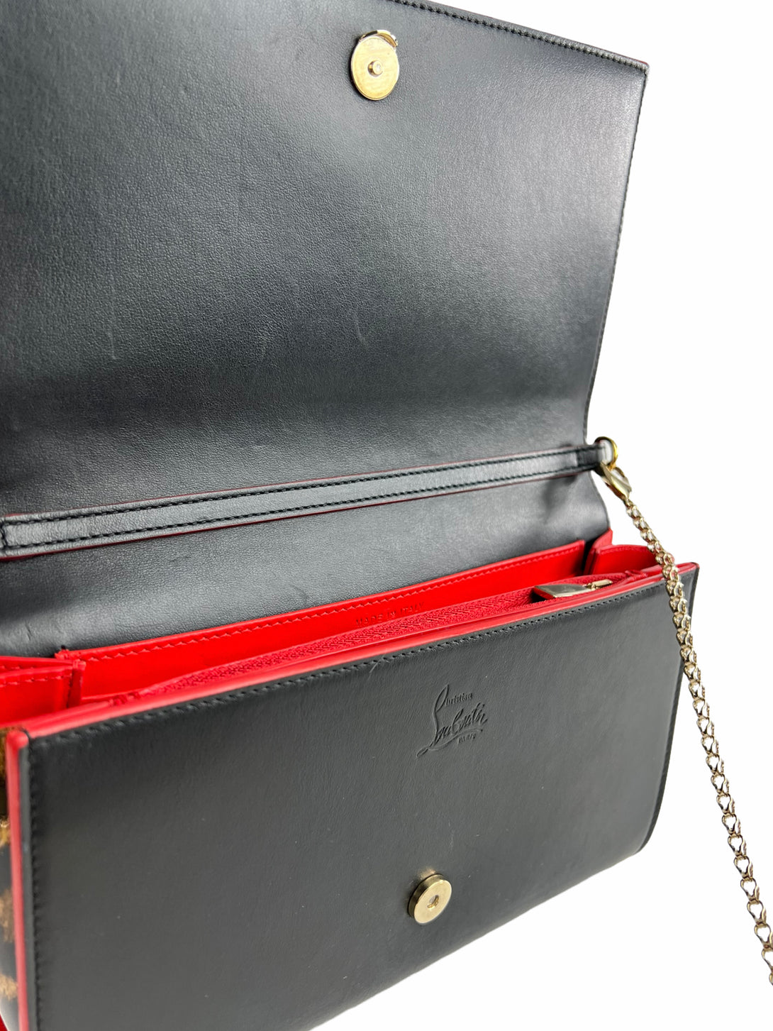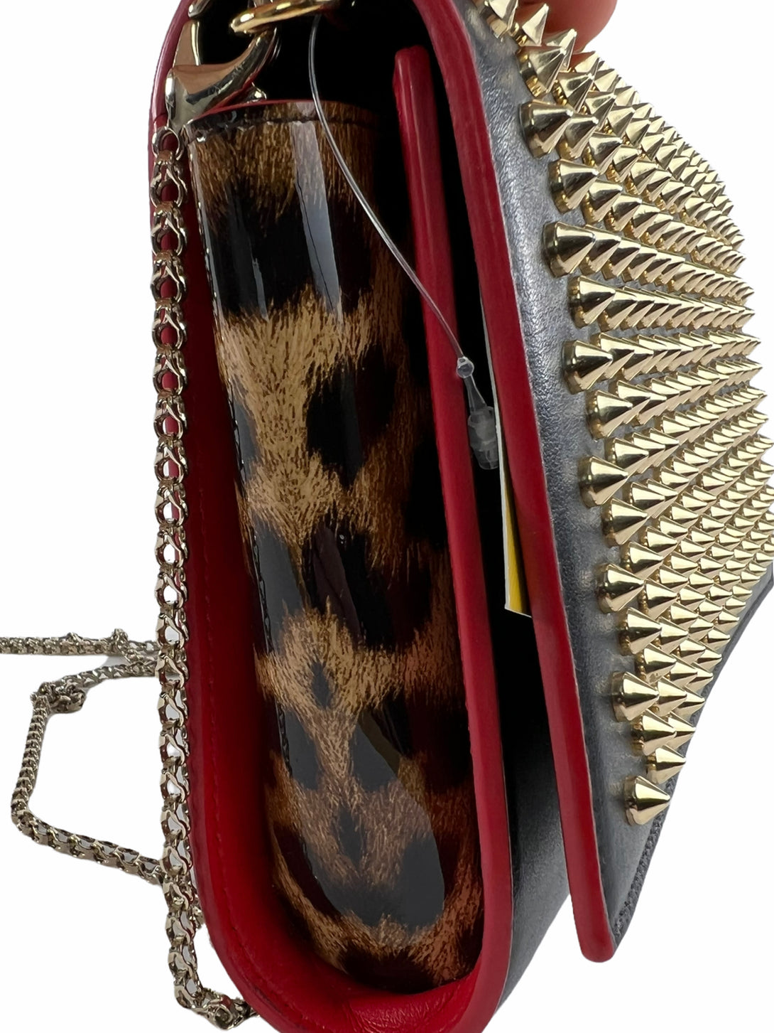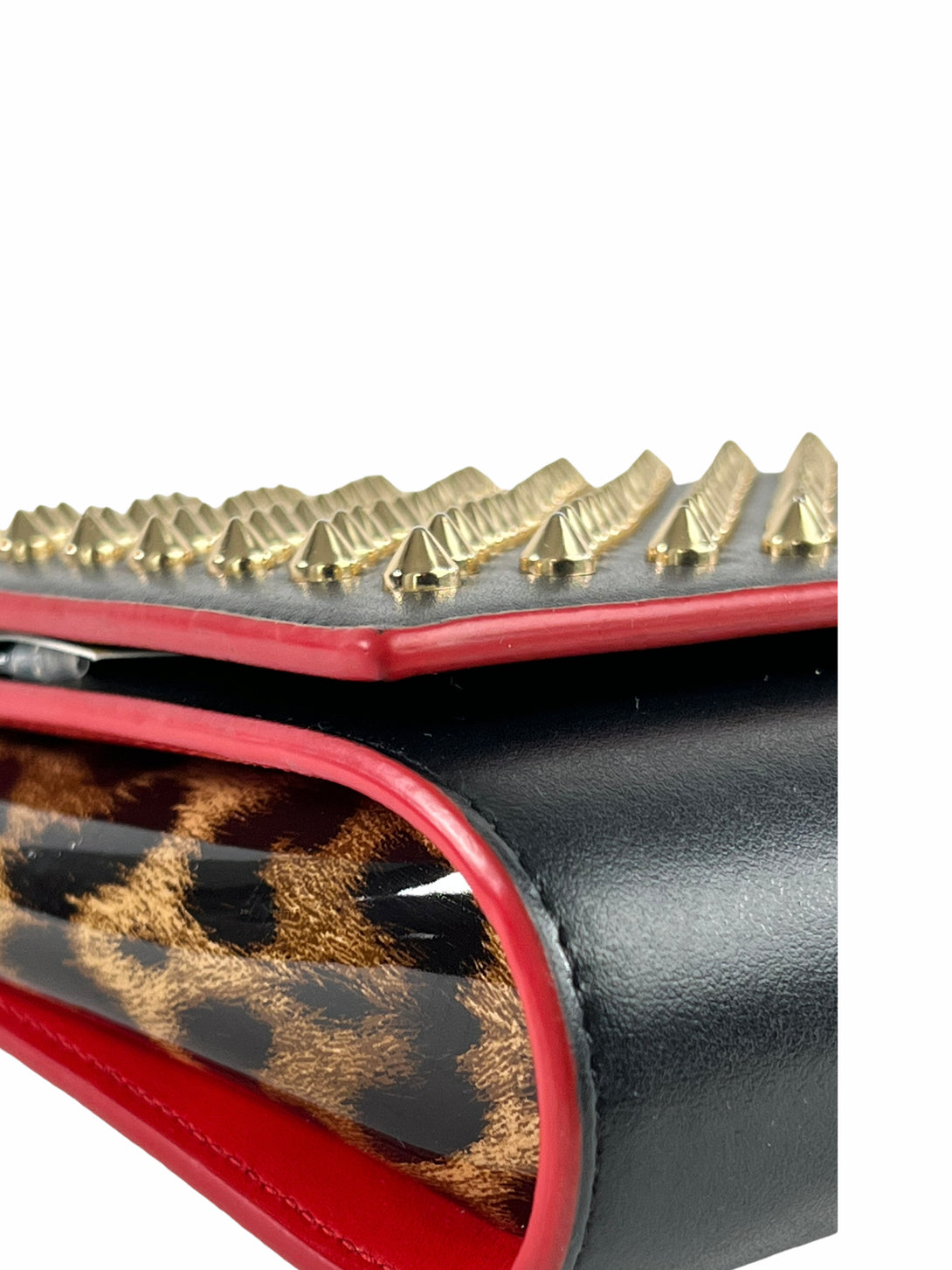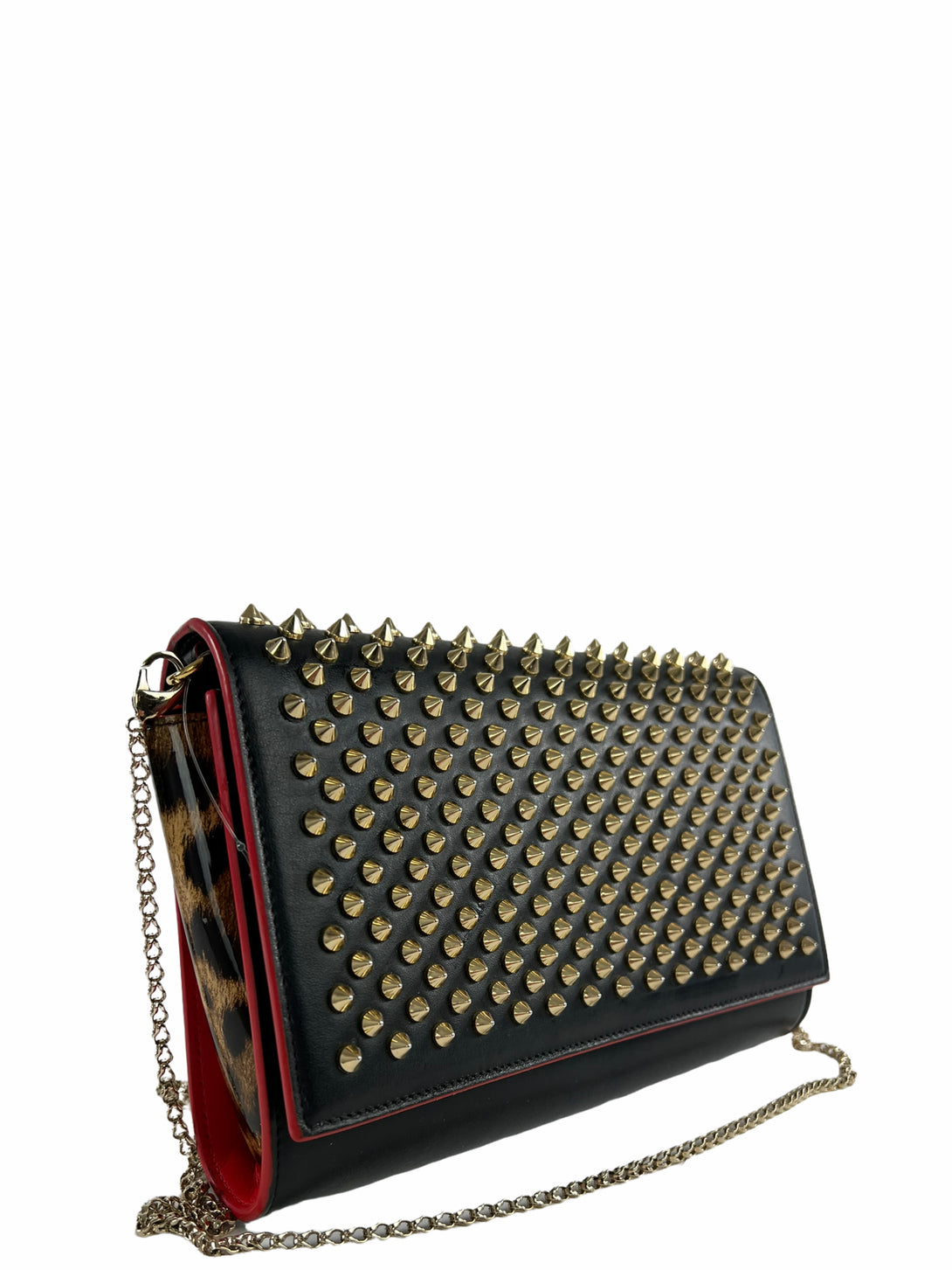 Christian Louboutin Black Leather & Leopard Vinyl Studded Crossbody