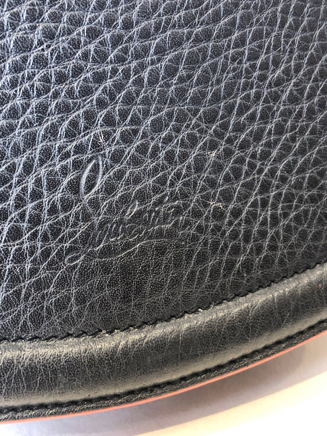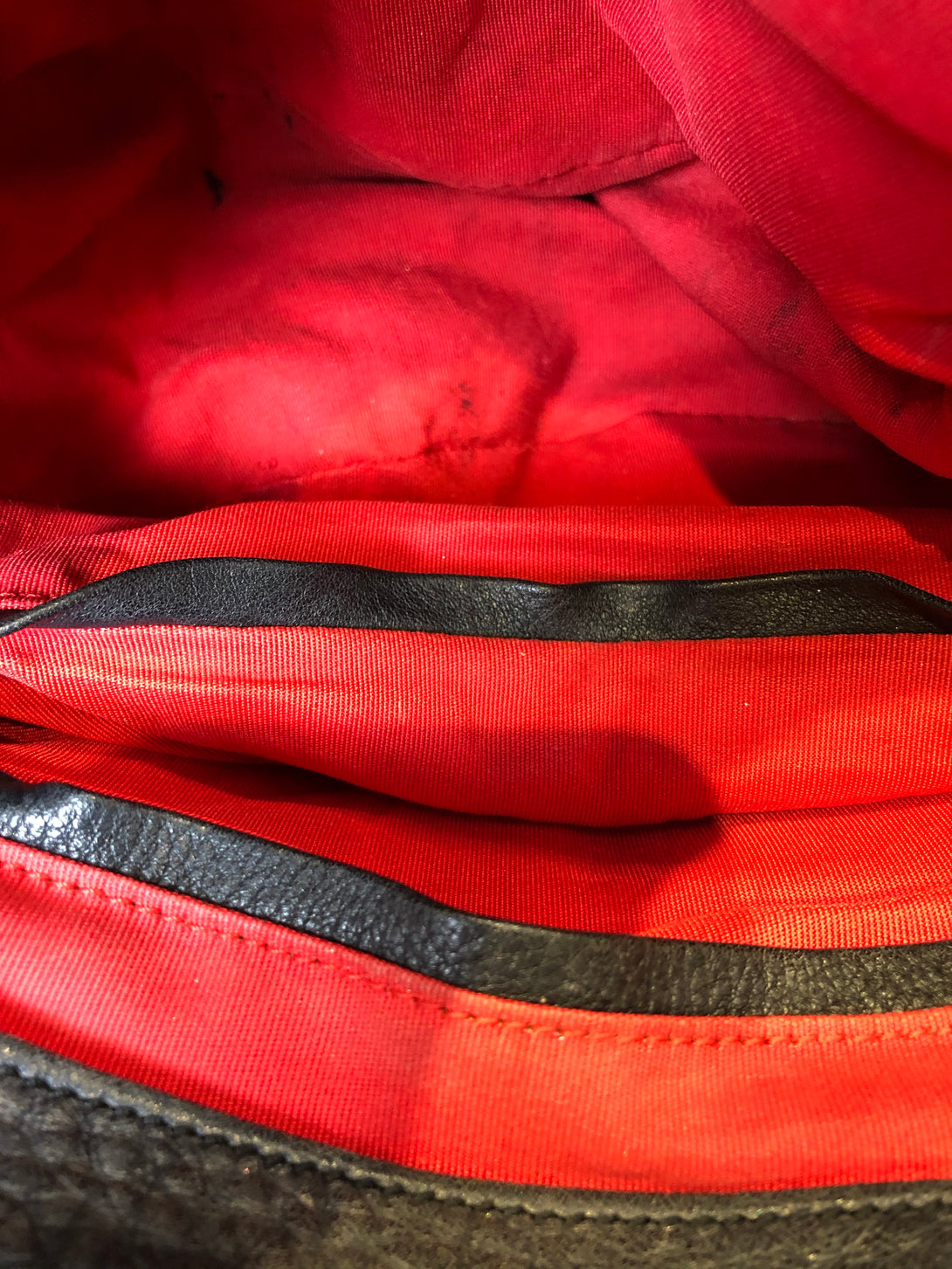 Good: Items show more prominent wear such as noticeable discoloration, stains and snags to fabric. May have worn corners and handles, tarnishing to hardware and creasing to leather. Pen or make up marks may be visible in the interior of the bag.