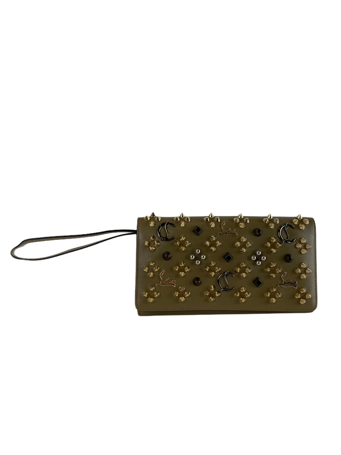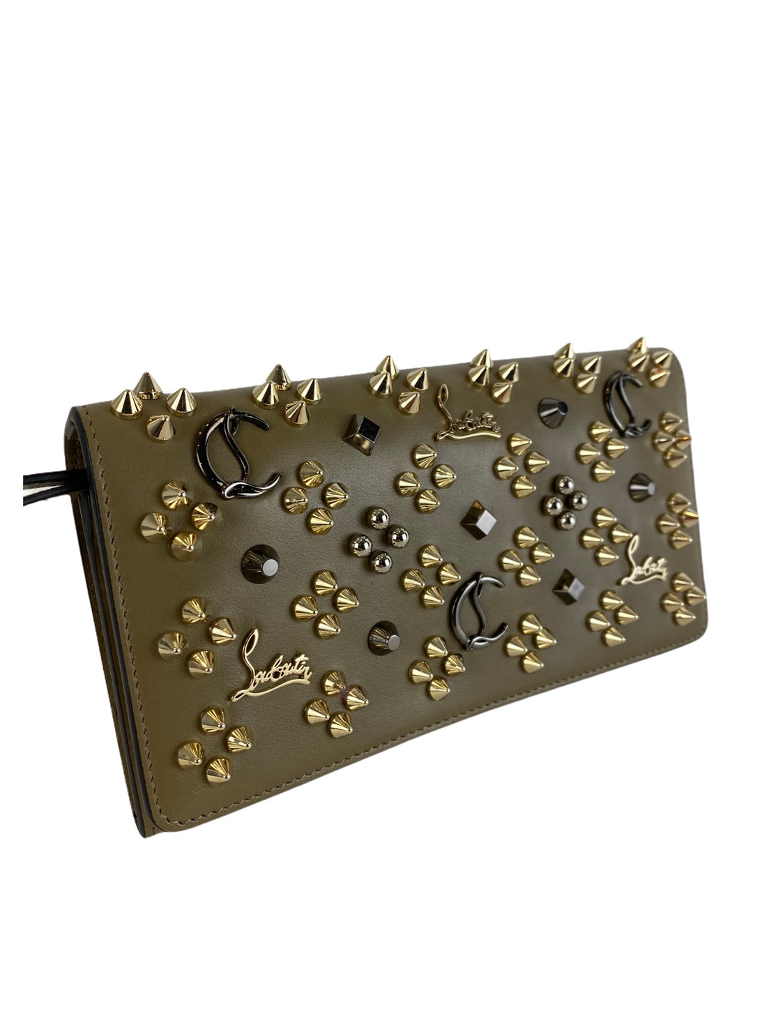 Christian Louboutin Khaki Leather Studded Wallet - As Seen on Instagram 21/10/2020