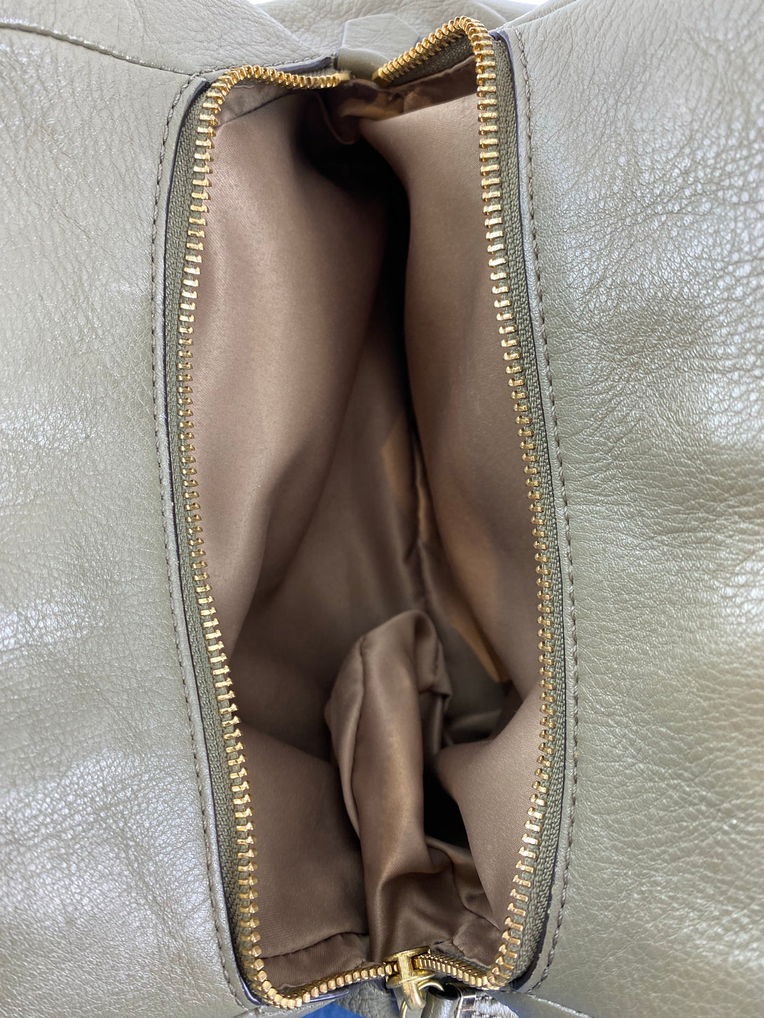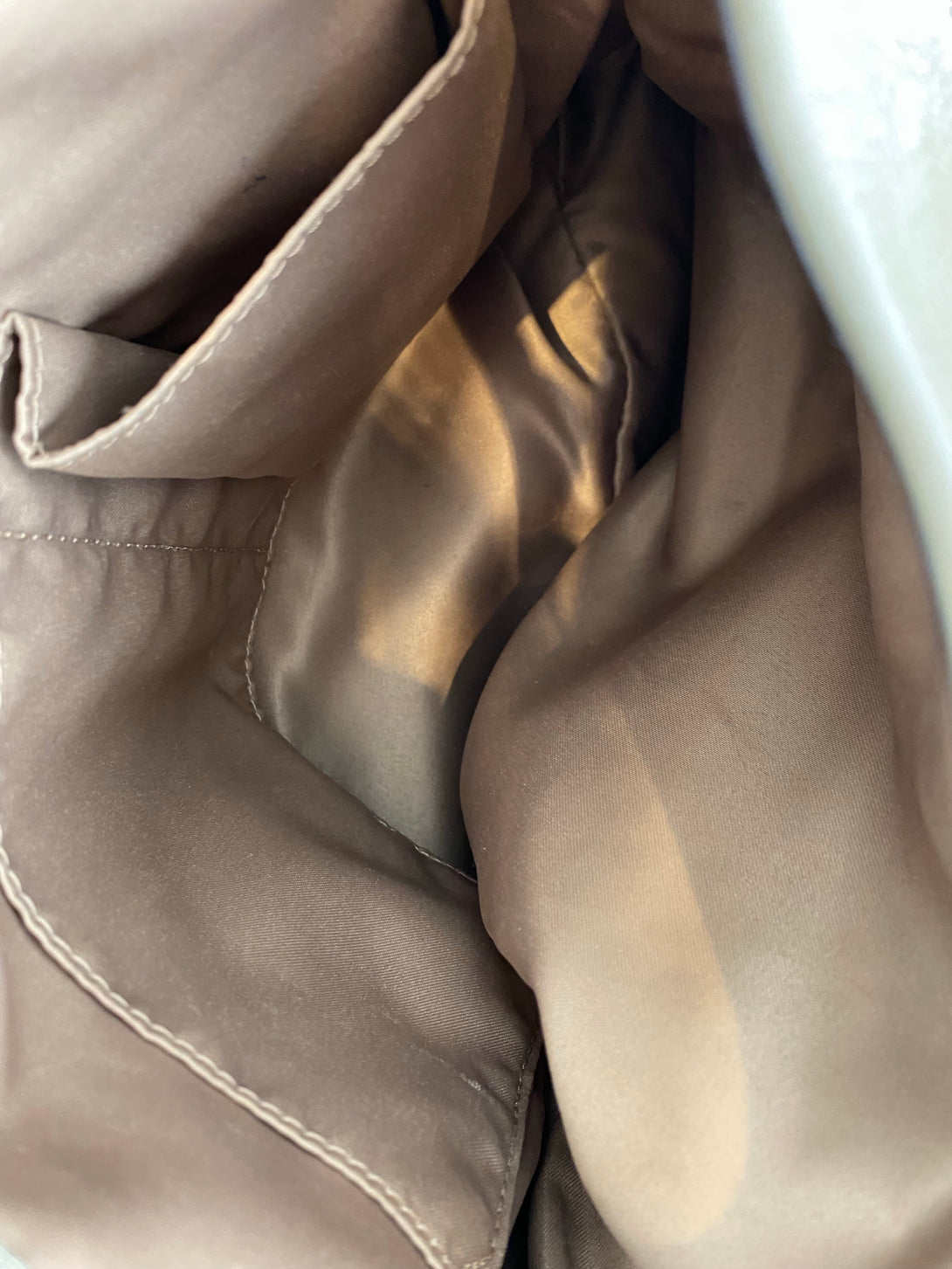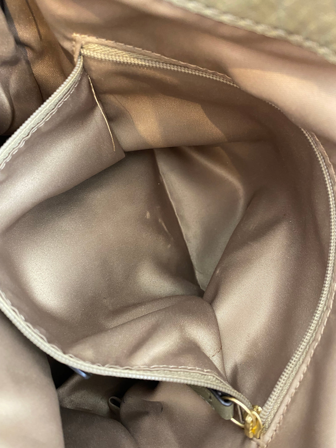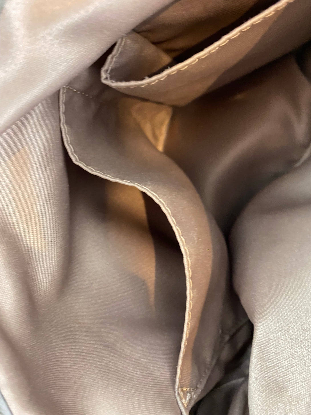 Good: Items show more prominent wear such as noticeable discoloration, stains and snags to fabric. May have worn corners and handles, tarnishing to hardware and creasing to leather. Pen or make up marks may be visible in the interior of the bag.