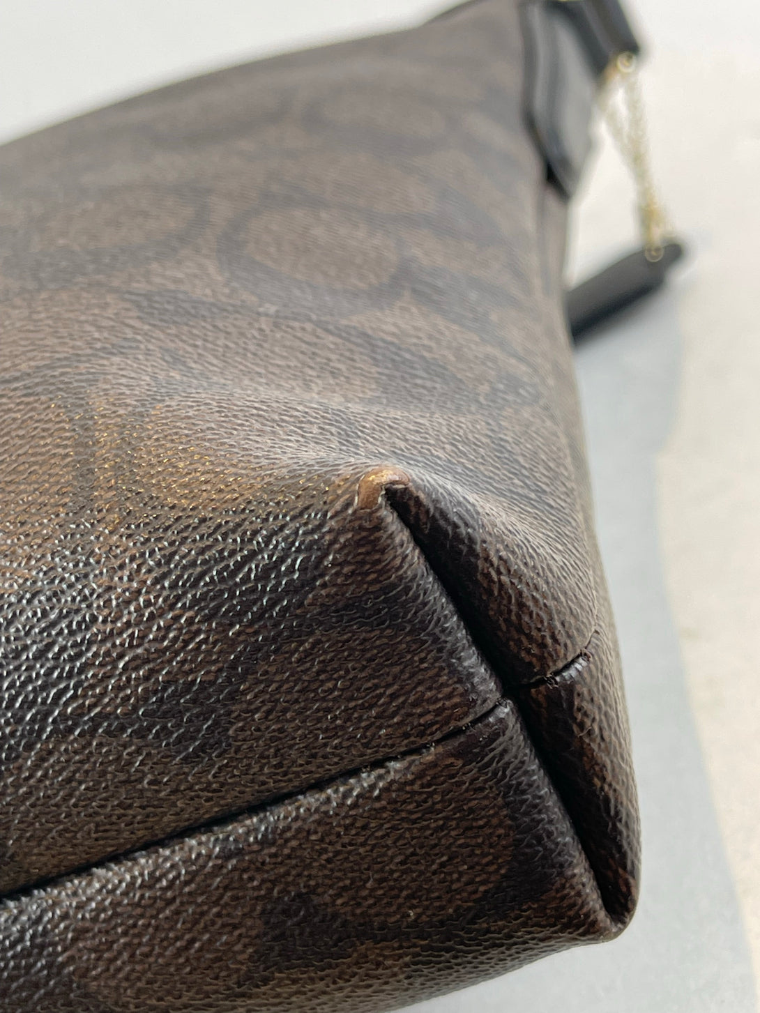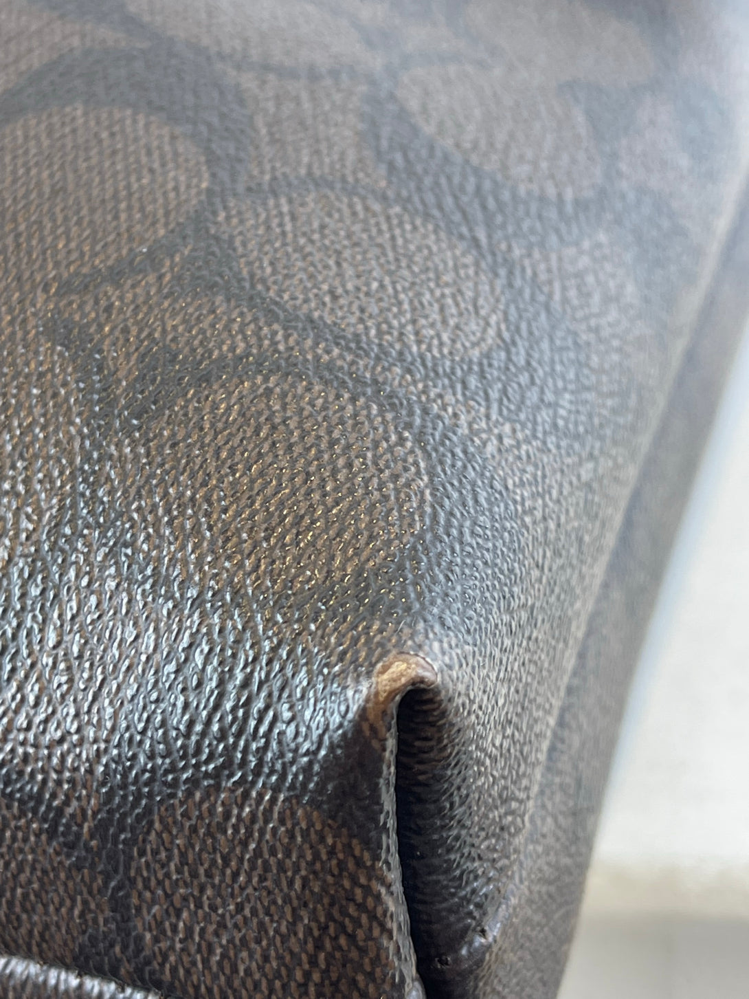 Fair: Very prominent wear, may have holes on corners, severe scuffs, piping of bag showing and pen marks to exterior. Interior may have pen or make up marks.