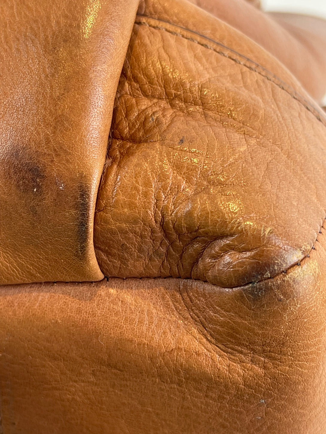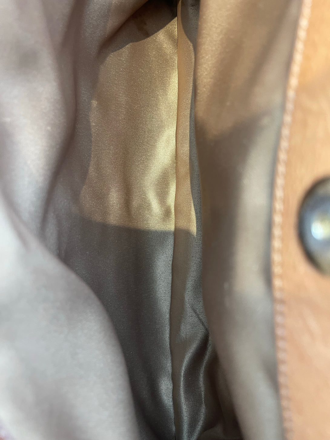 Good: Items show more prominent wear such as noticeable discoloration, stains and snags to fabric. May have worn corners and handles, tarnishing to hardware and creasing to leather. Pen or make up marks may be visible in the interior of the bag.