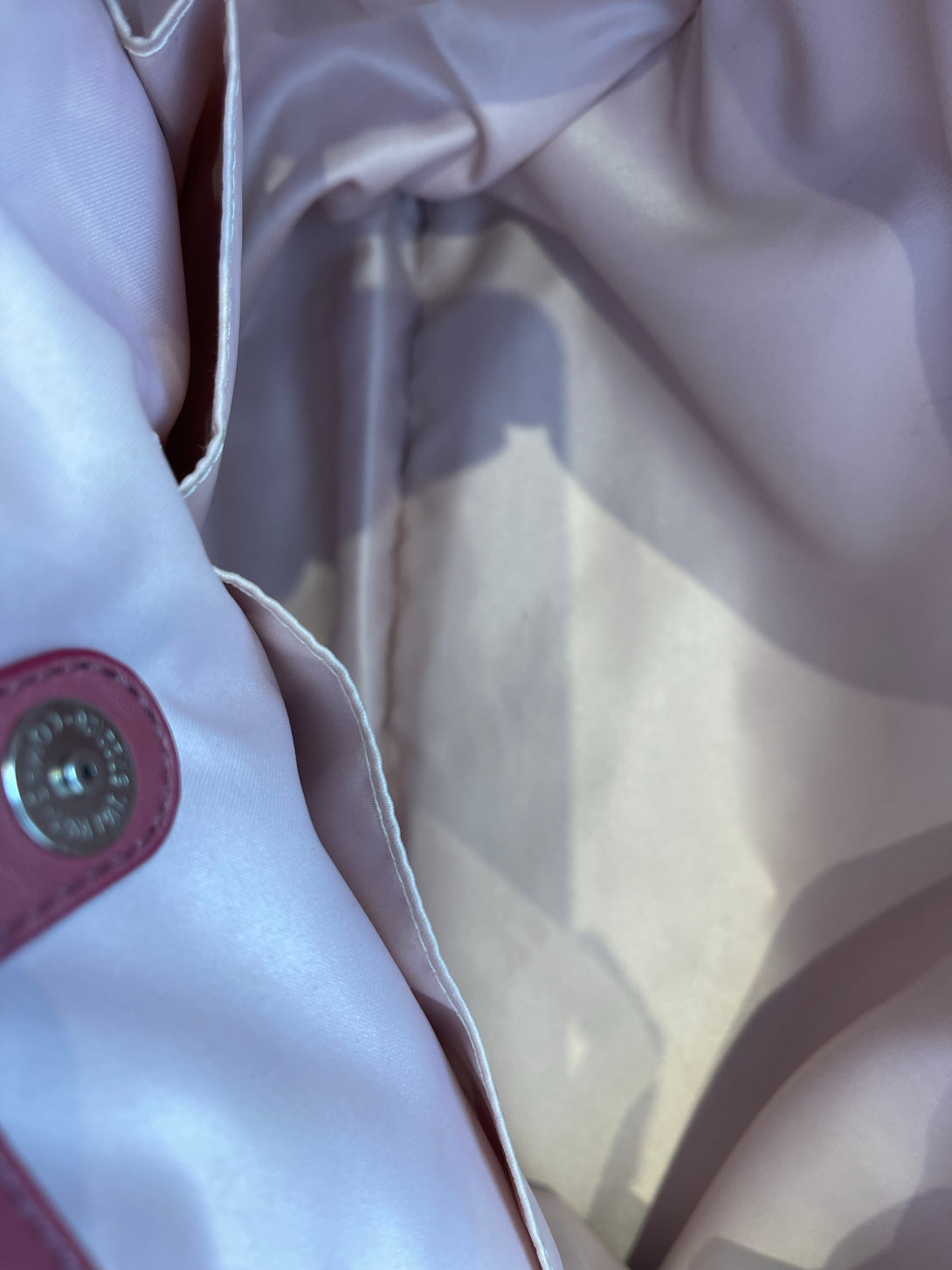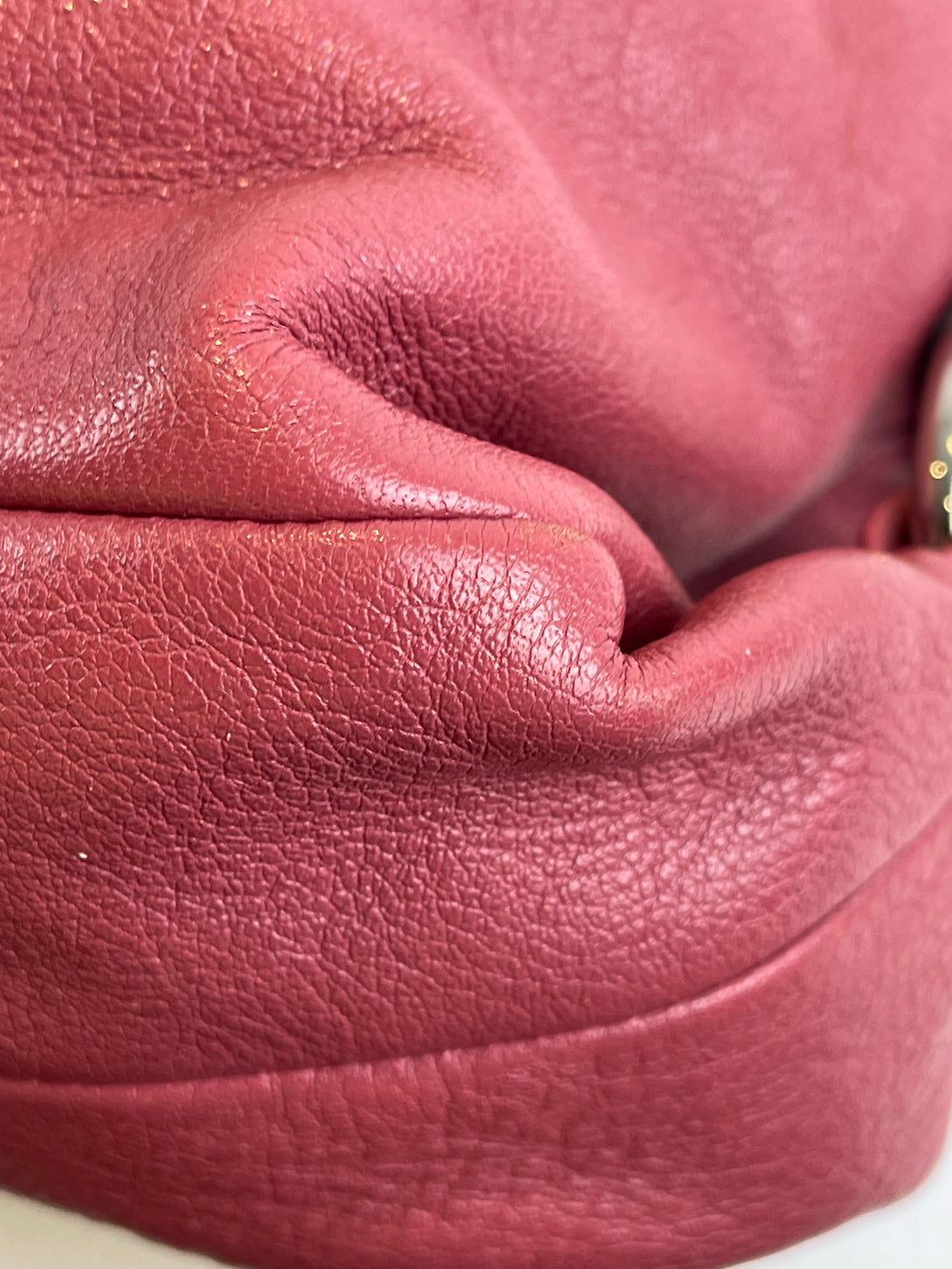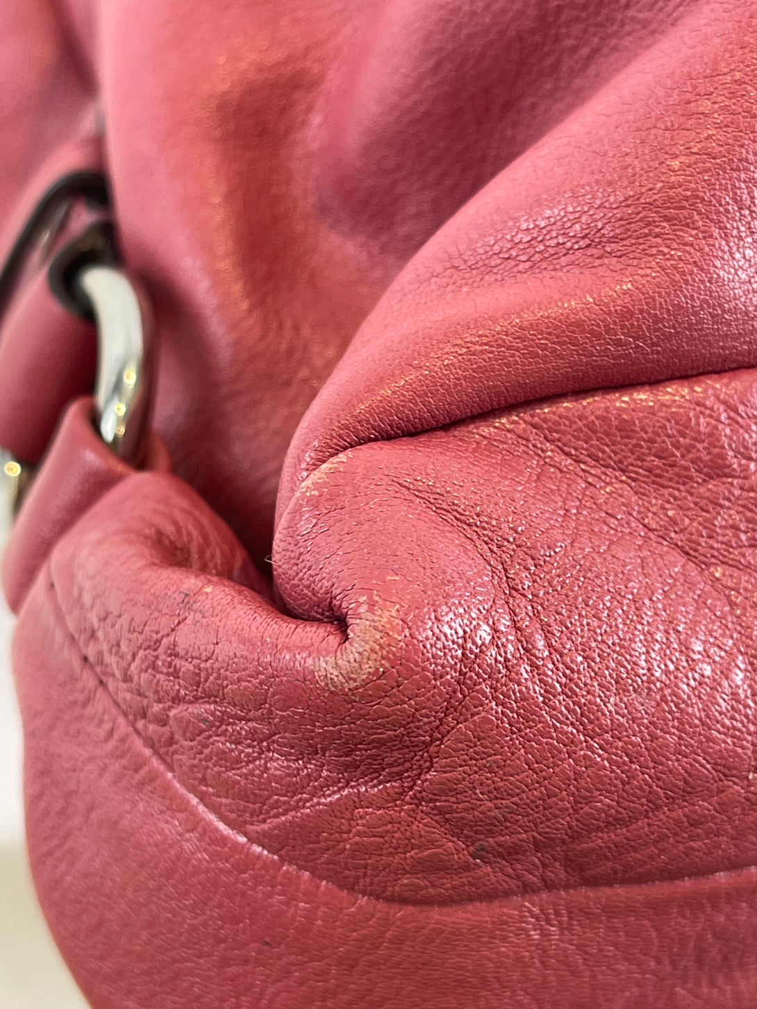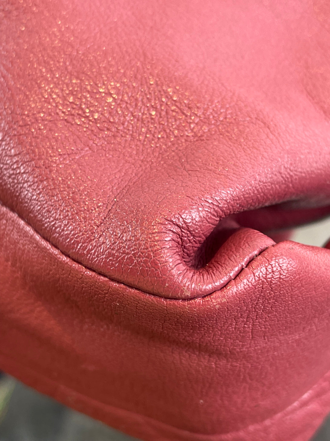 Good: Items show more prominent wear such as noticeable discoloration, stains and snags to fabric. May have worn corners and handles, tarnishing to hardware and creasing to leather. Pen or make up marks may be visible in the interior of the bag.