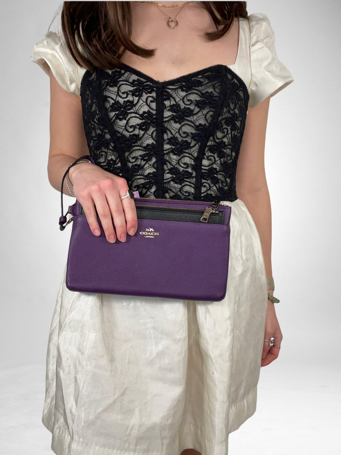 Coach Purple Grained Leather Clutch