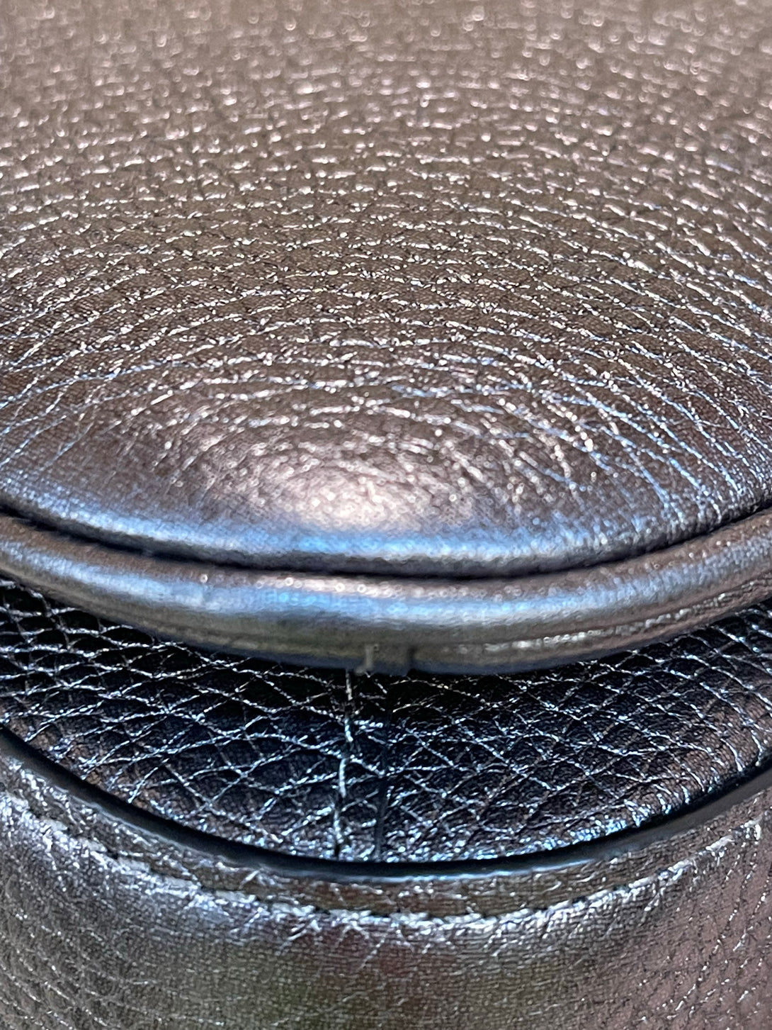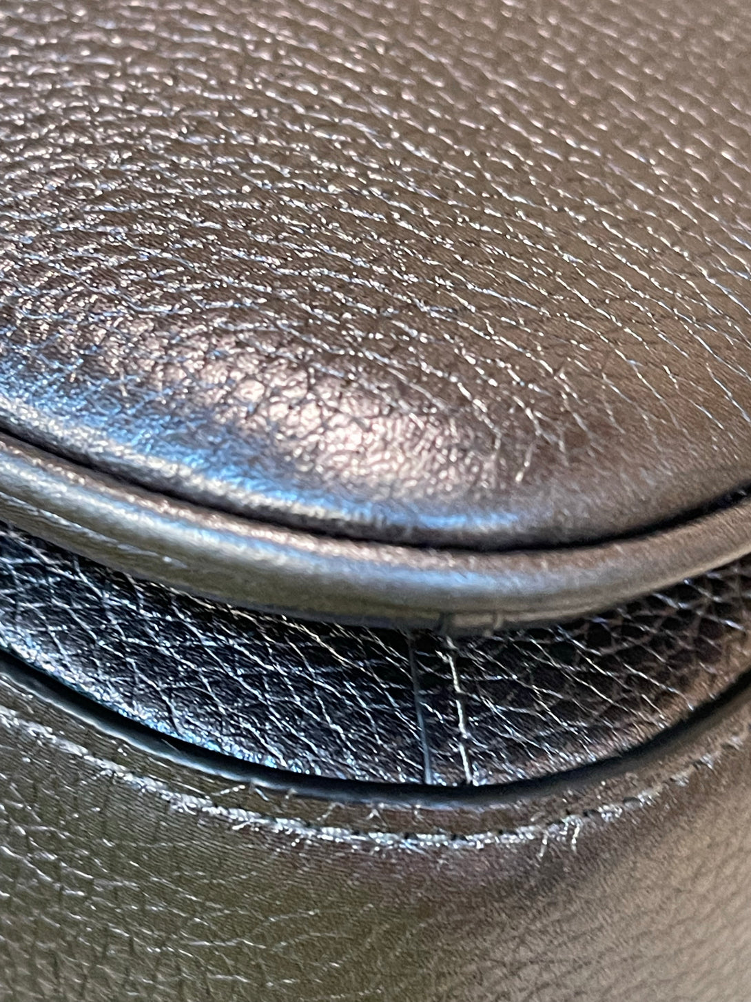 Good: Items show more prominent wear such as noticeable discoloration, stains and snags to fabric. May have worn corners and handles, tarnishing to hardware and creasing to leather. Pen or make up marks may be visible in the interior of the bag.