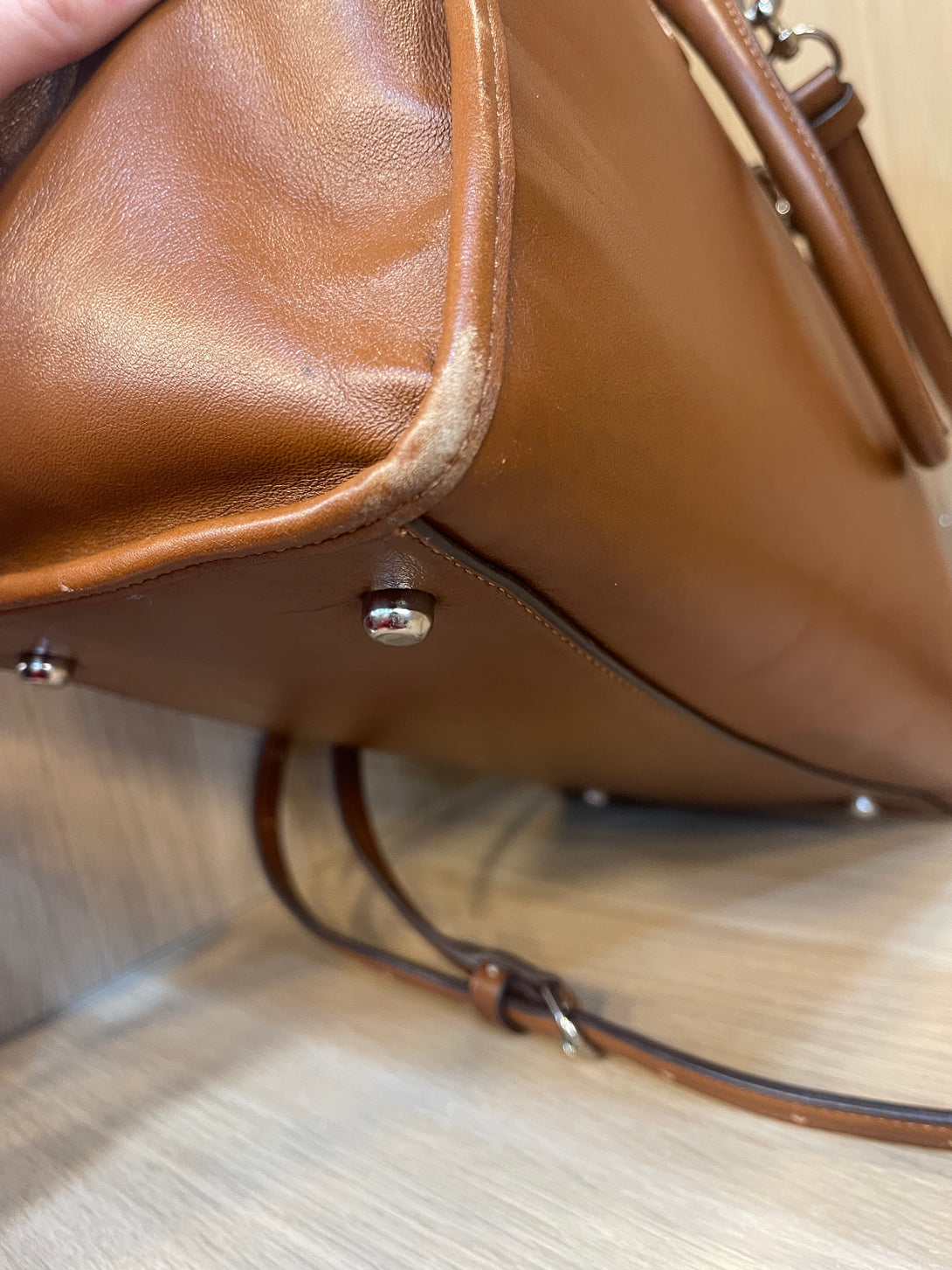 Fair: Very prominent wear, may have holes on corners, severe scuffs, piping of bag showing and pen marks to exterior. Interior may have pen or make up marks.
