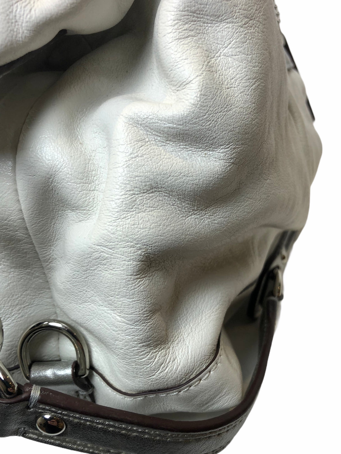 Good: Items show more prominent wear such as noticeable discoloration, stains and snags to fabric. May have worn corners and handles, tarnishing to hardware and creasing to leather. Pen or make up marks may be visible in the interior of the bag.