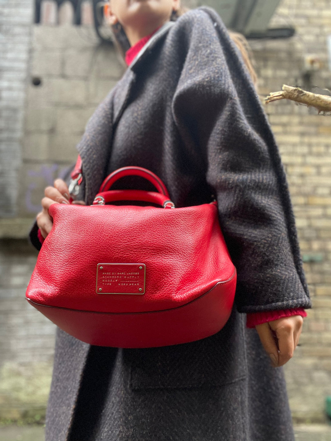 Marc Jacobs Red Textured Leather Crossbody Tote
