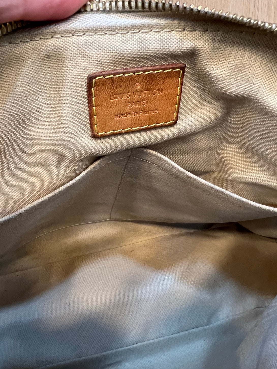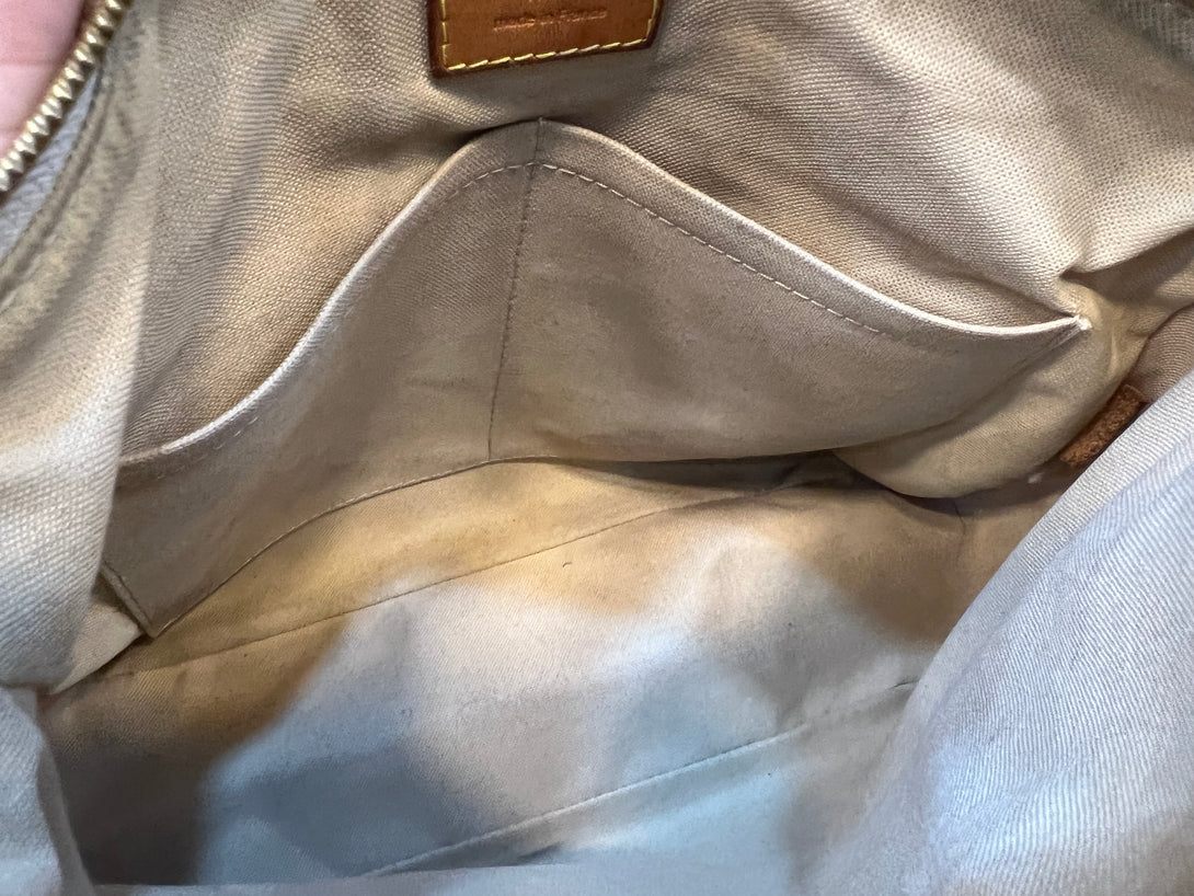 Good: Items show more prominent wear such as noticeable discoloration, stains and snags to fabric. May have worn corners and handles, tarnishing to hardware and creasing to leather. Pen or make up marks may be visible in the interior of the bag.