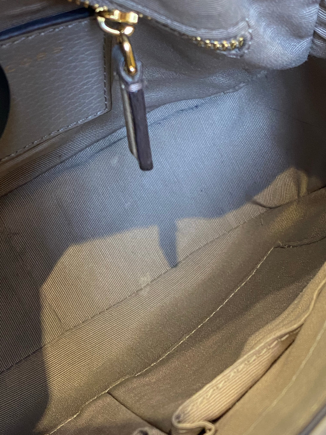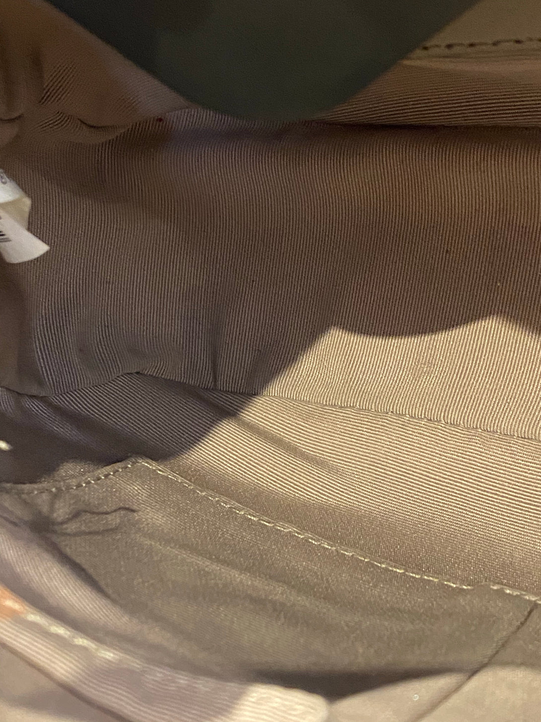 Good: Items show more prominent wear such as noticeable discoloration, stains and snags to fabric. May have worn corners and handles, tarnishing to hardware and creasing to leather. Pen or make up marks may be visible in the interior of the bag.