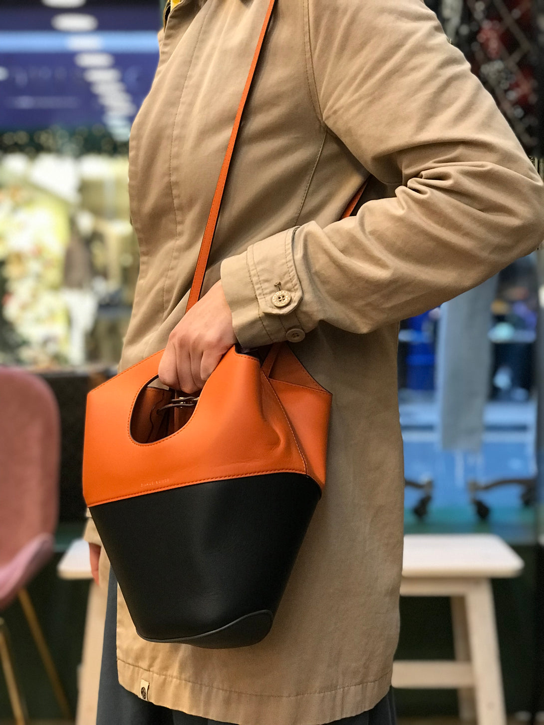 Danse Lente Orange & Black Leather Structured Bucket Bag
